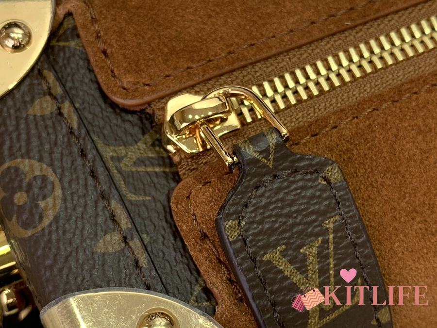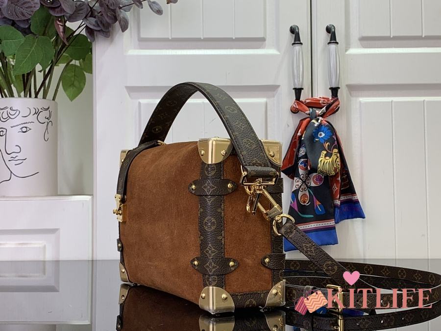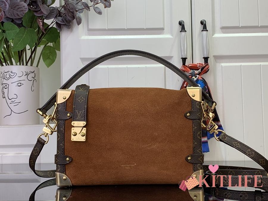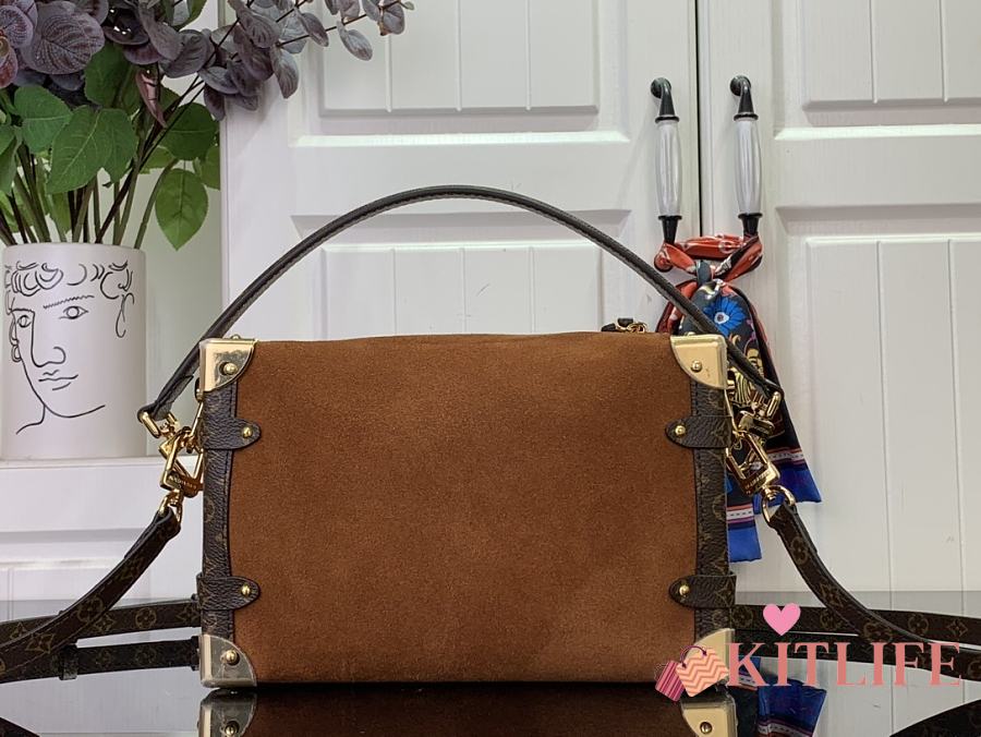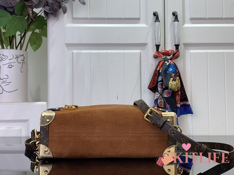 Kitlife Louis Vuitton Side Trunk MM Bag Brown Suede M15072 16x8.5x23.5cm