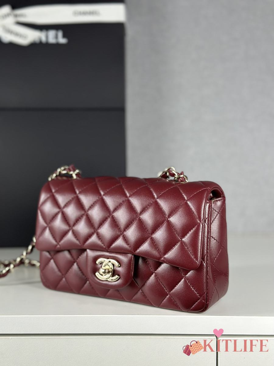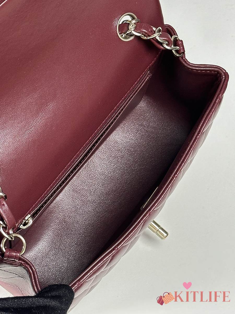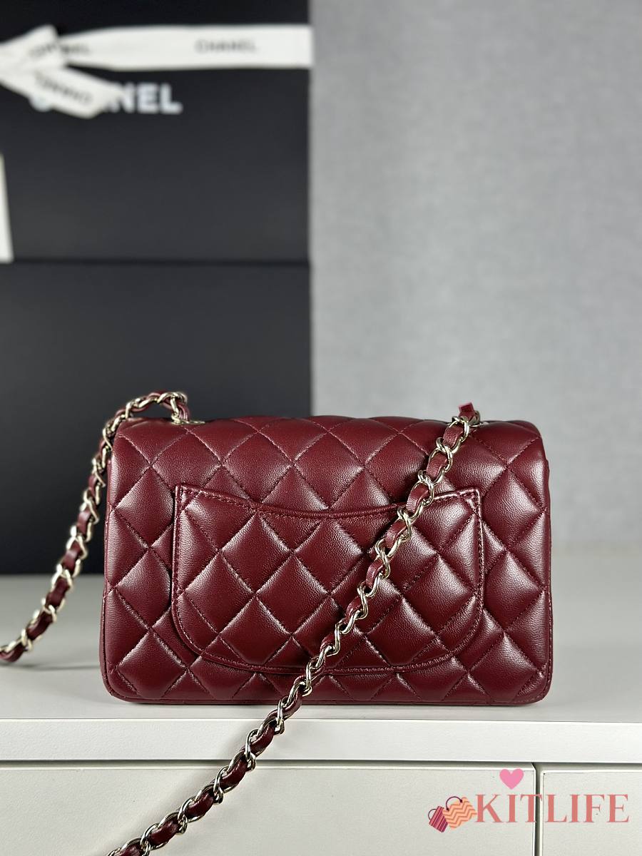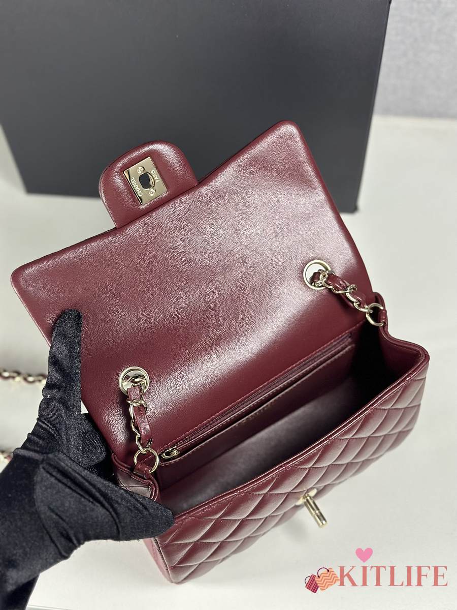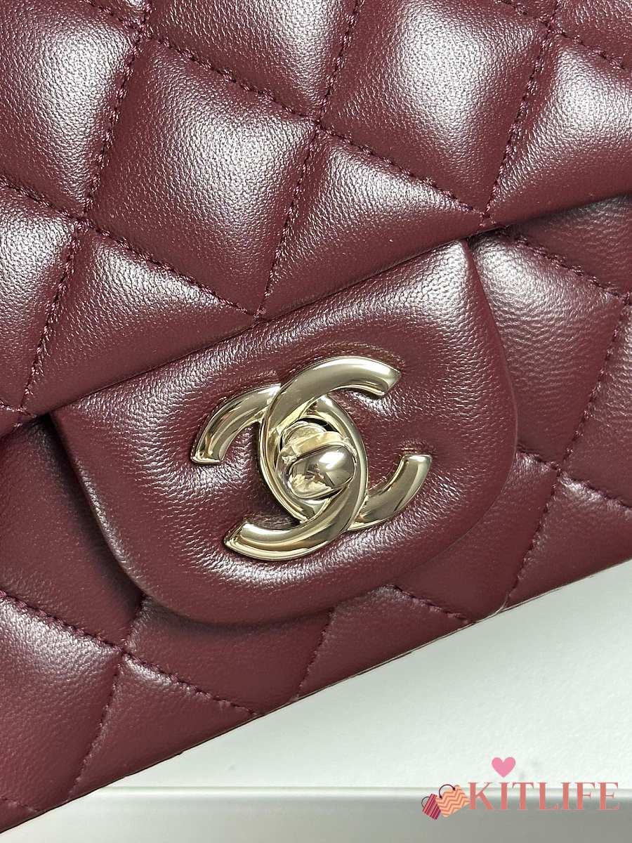 Chanel Classic Flap Bag Burgundy Smooth Leather Gold Buckle Bag 20cm
