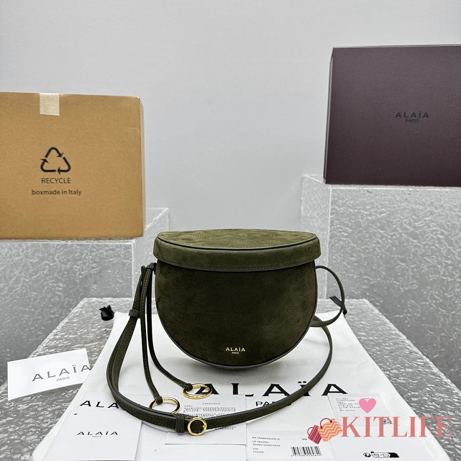 Kitlife Alaia 25SS Waist Bag Green Nubuck Calfskin Leather 20x11x17cm