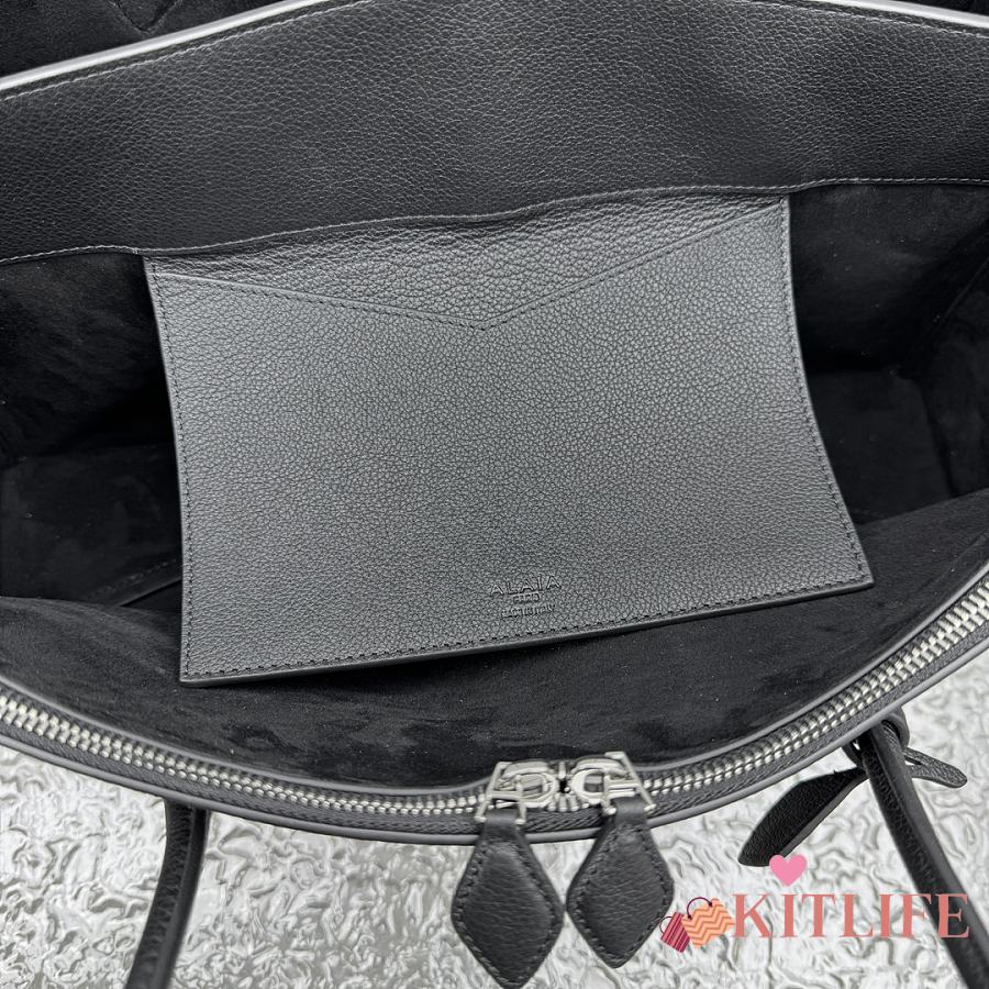 Kitlife Alaia Le Teckel Tote Bag in Black Grained Leather 42x19x21cm