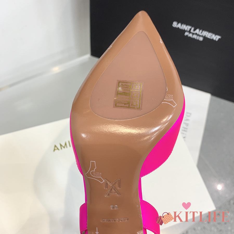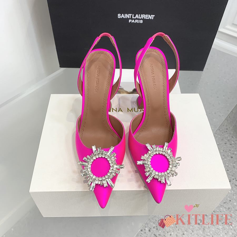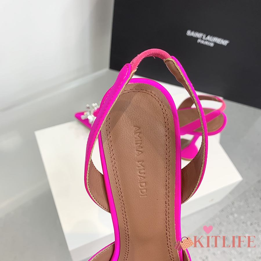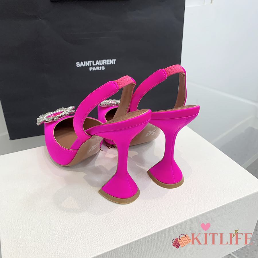 Kitlife Amina Muaddi Satin Pink Slingback Pumps