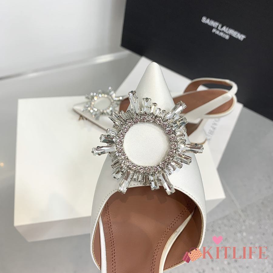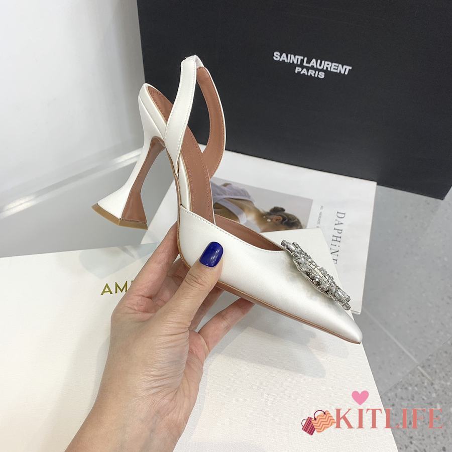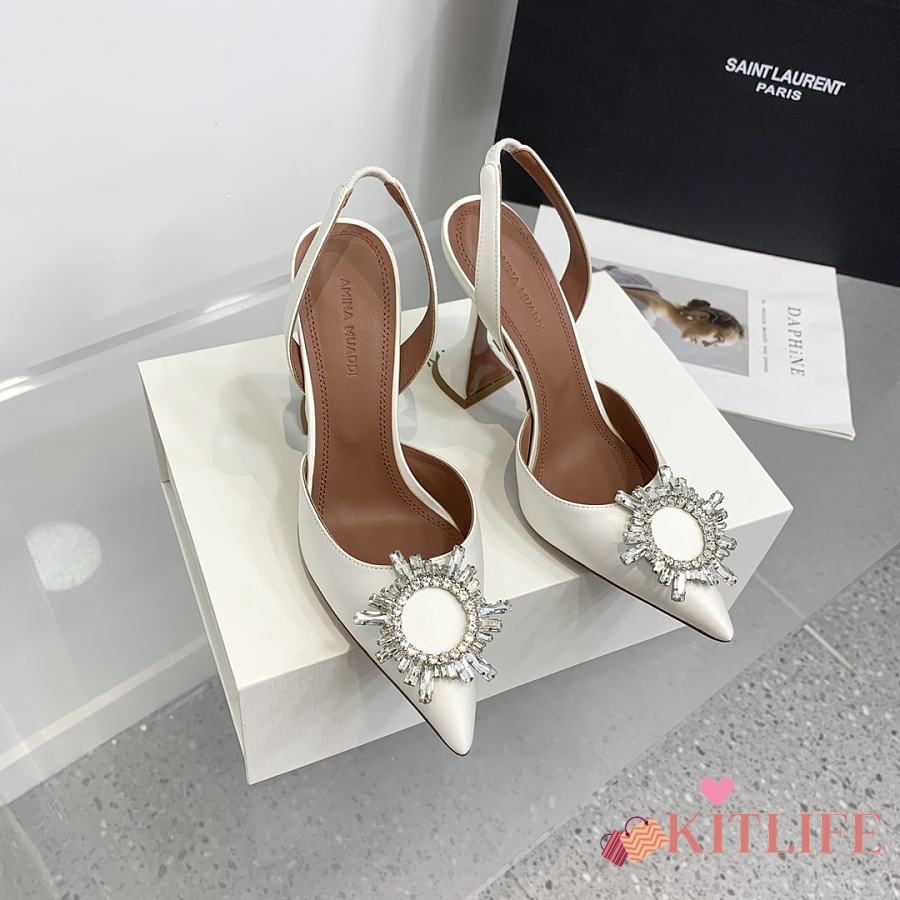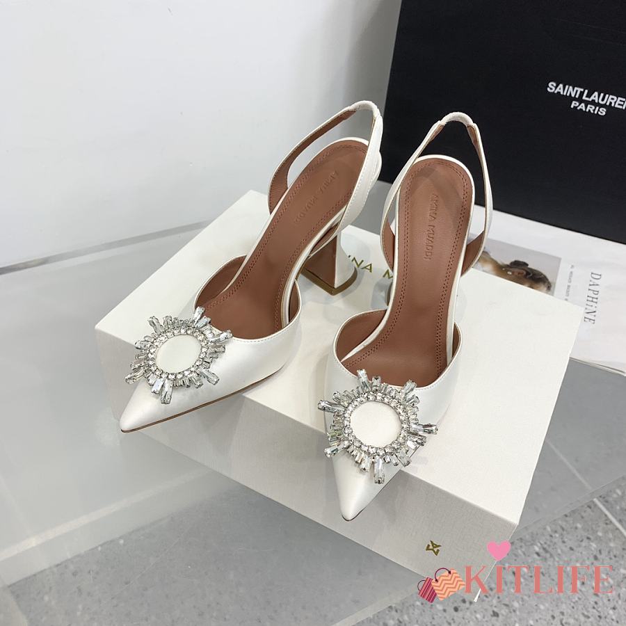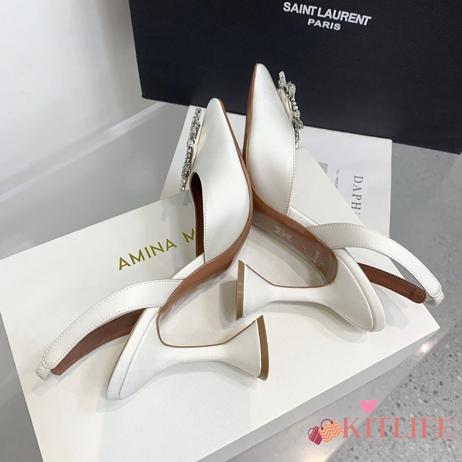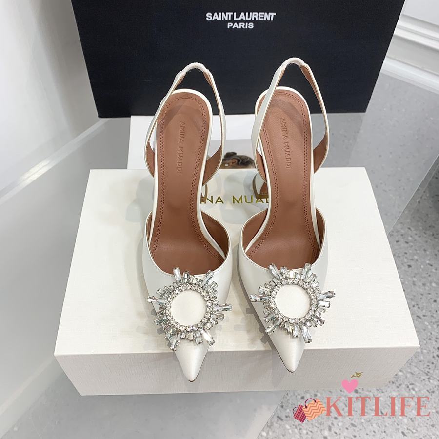 Kitlife Amina Muaddi Satin White Slingback Pumps