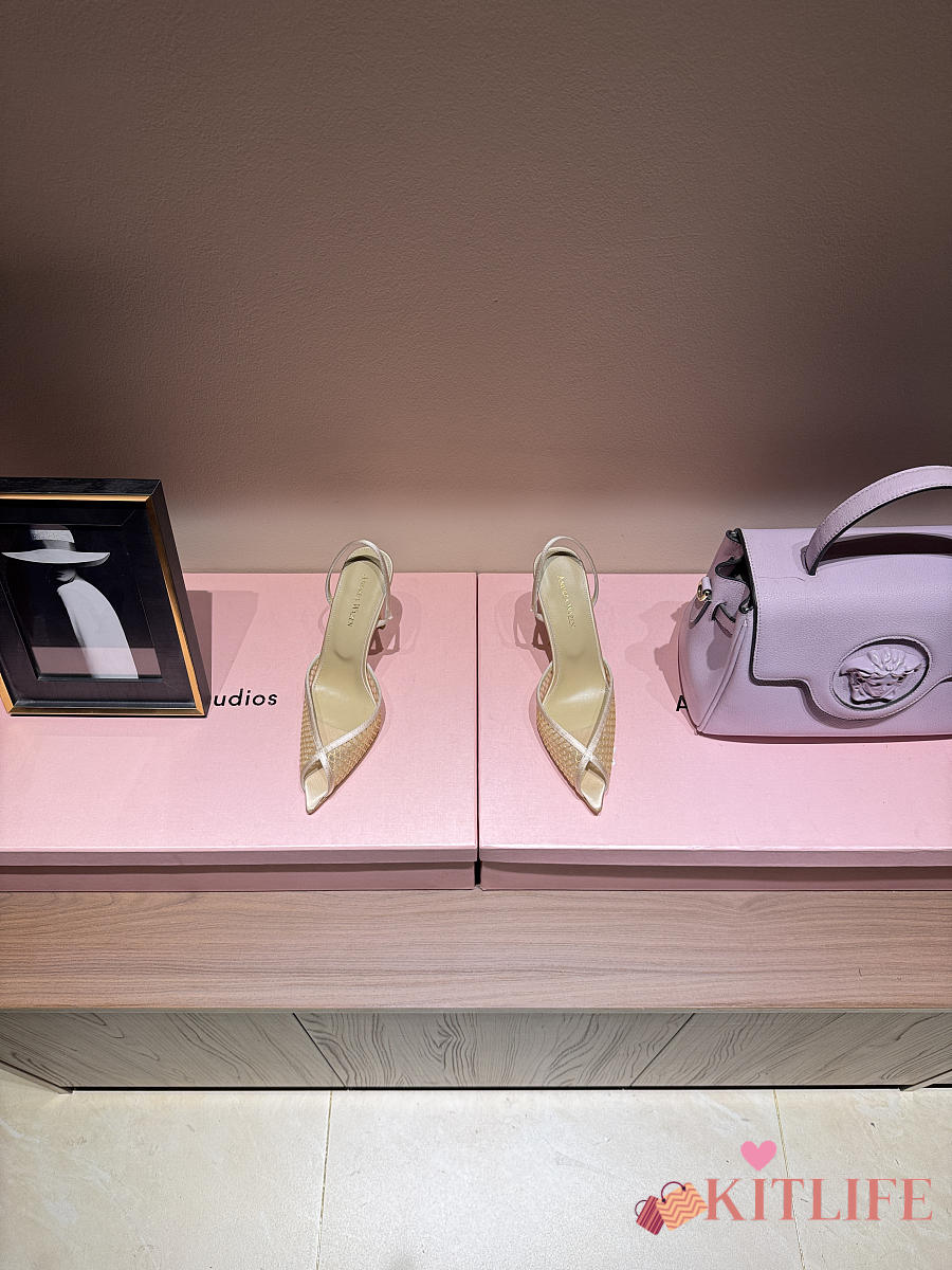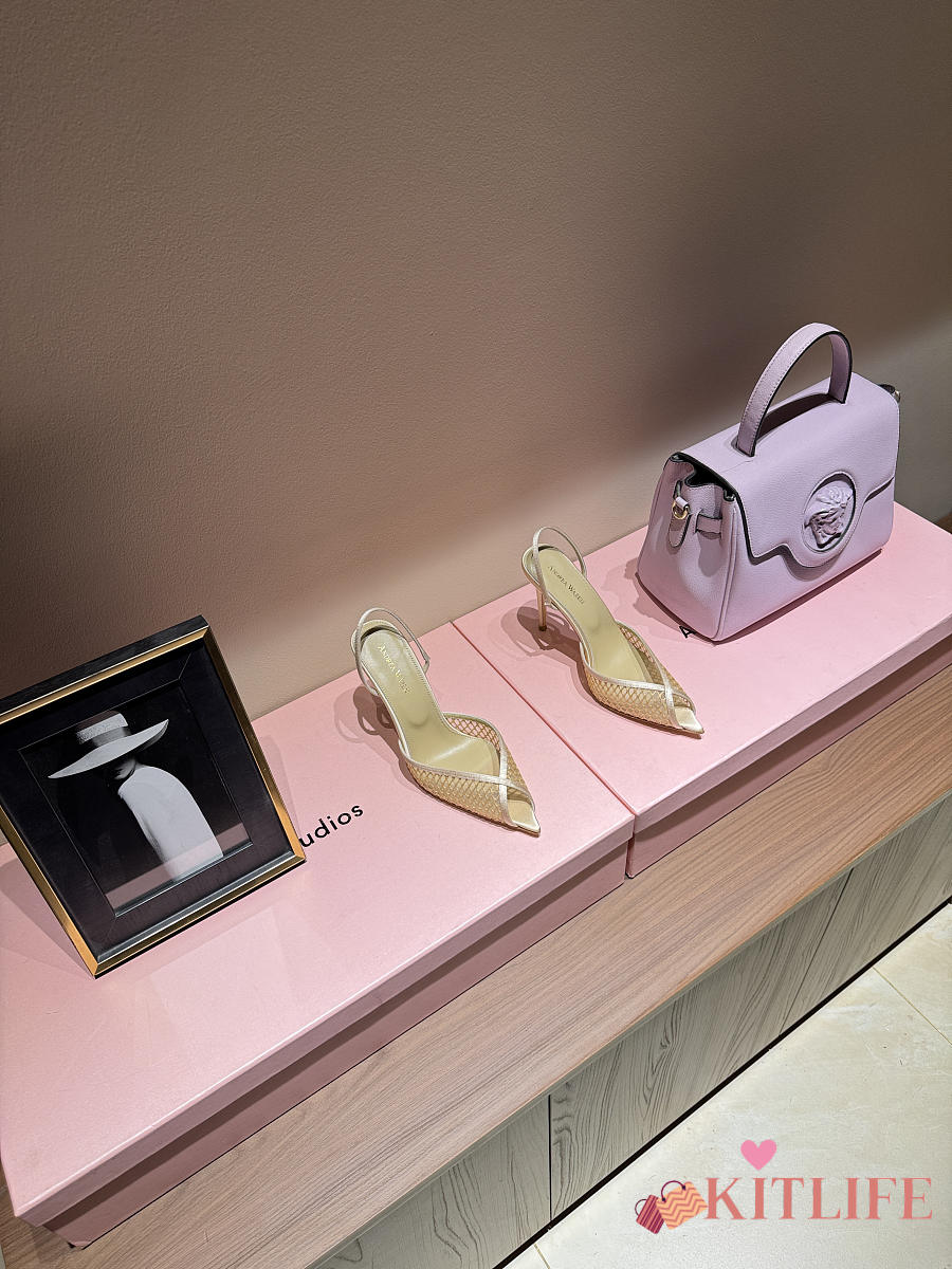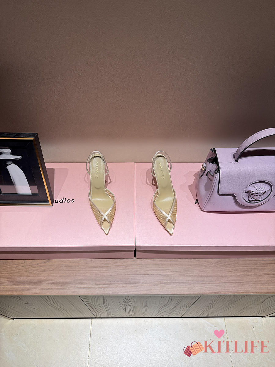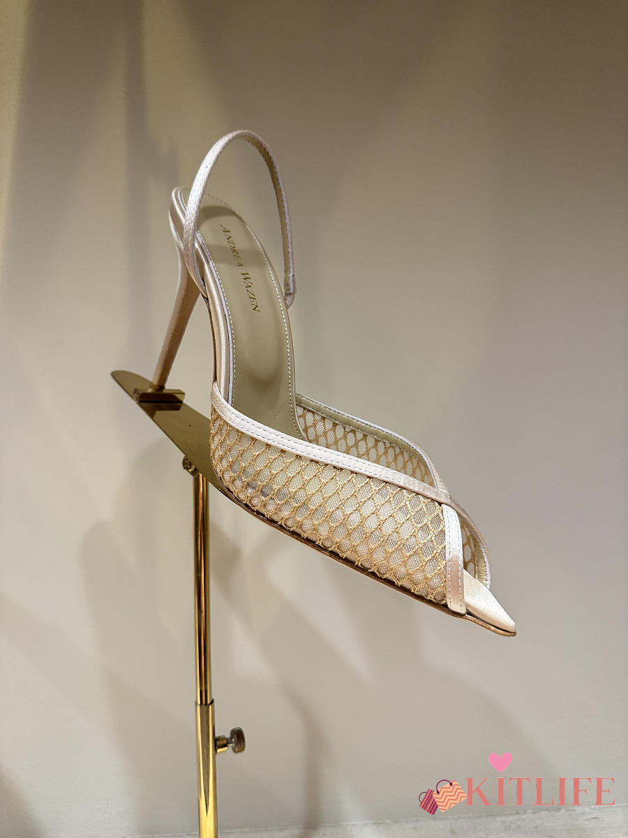 Kitlife Andrea Wazen 25FW Katy Net Sling Pumps Beige 95mm