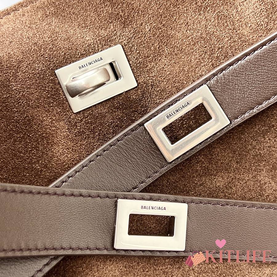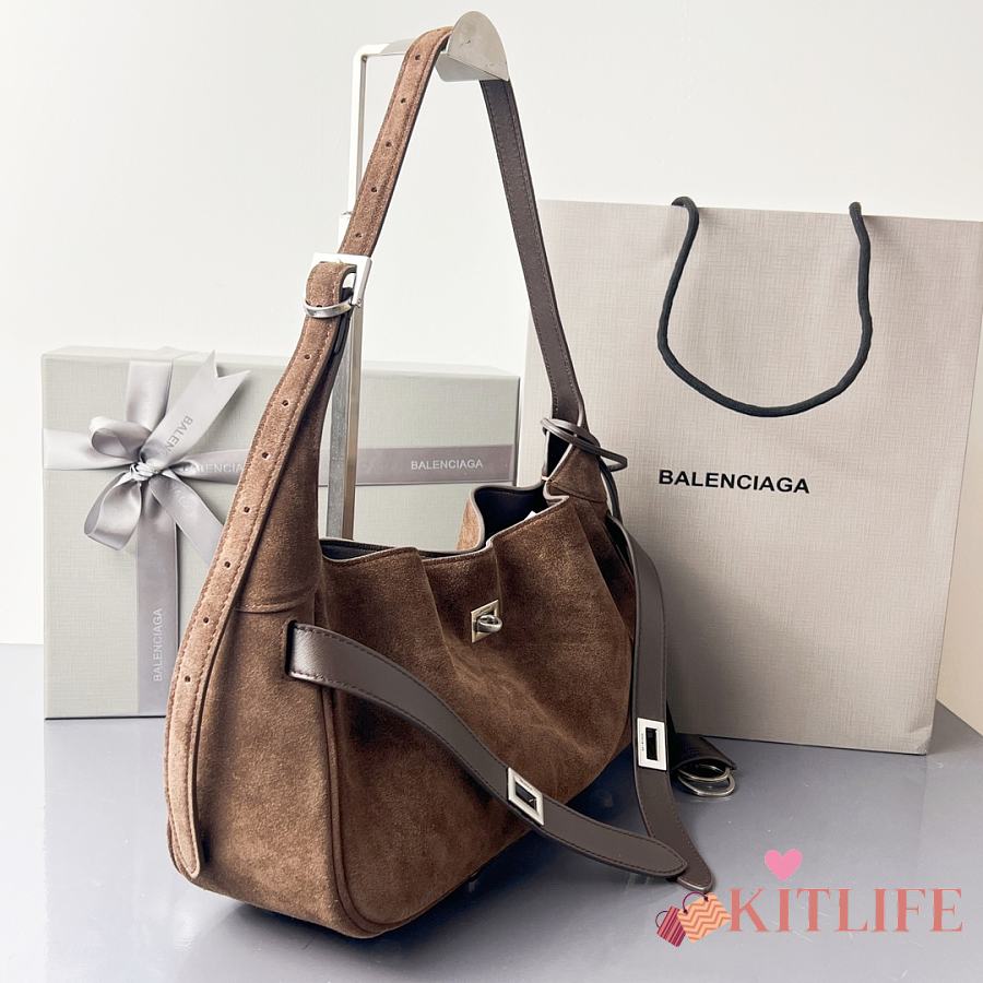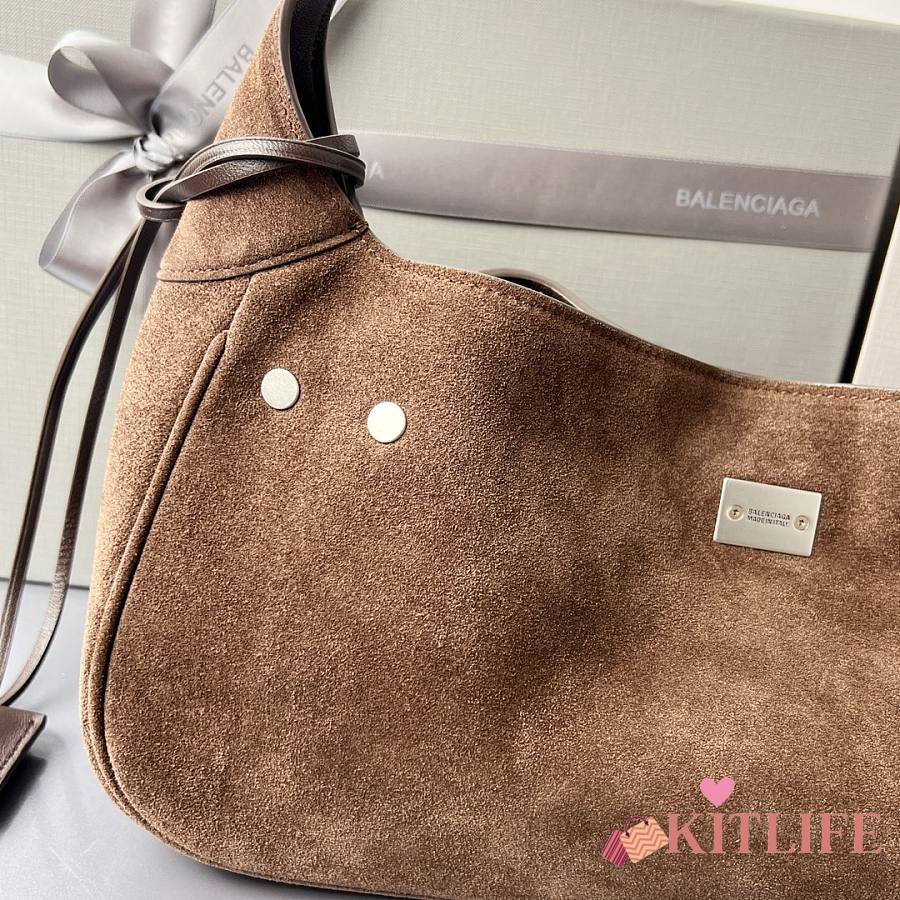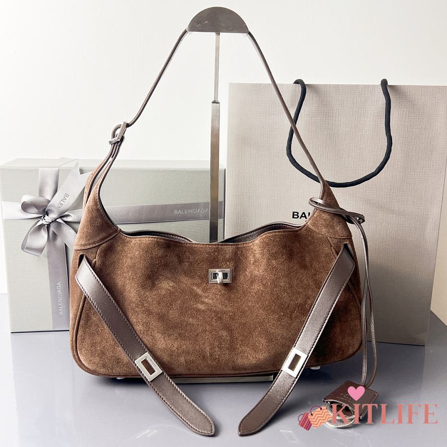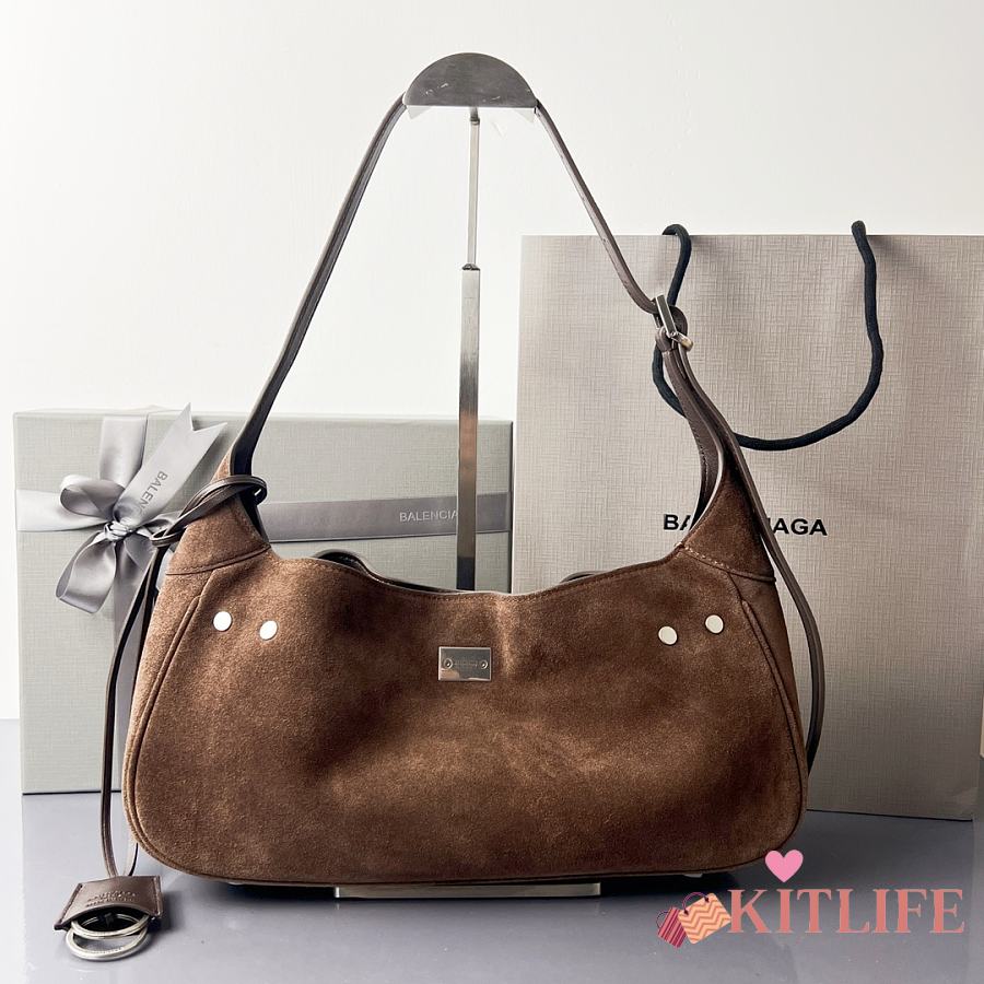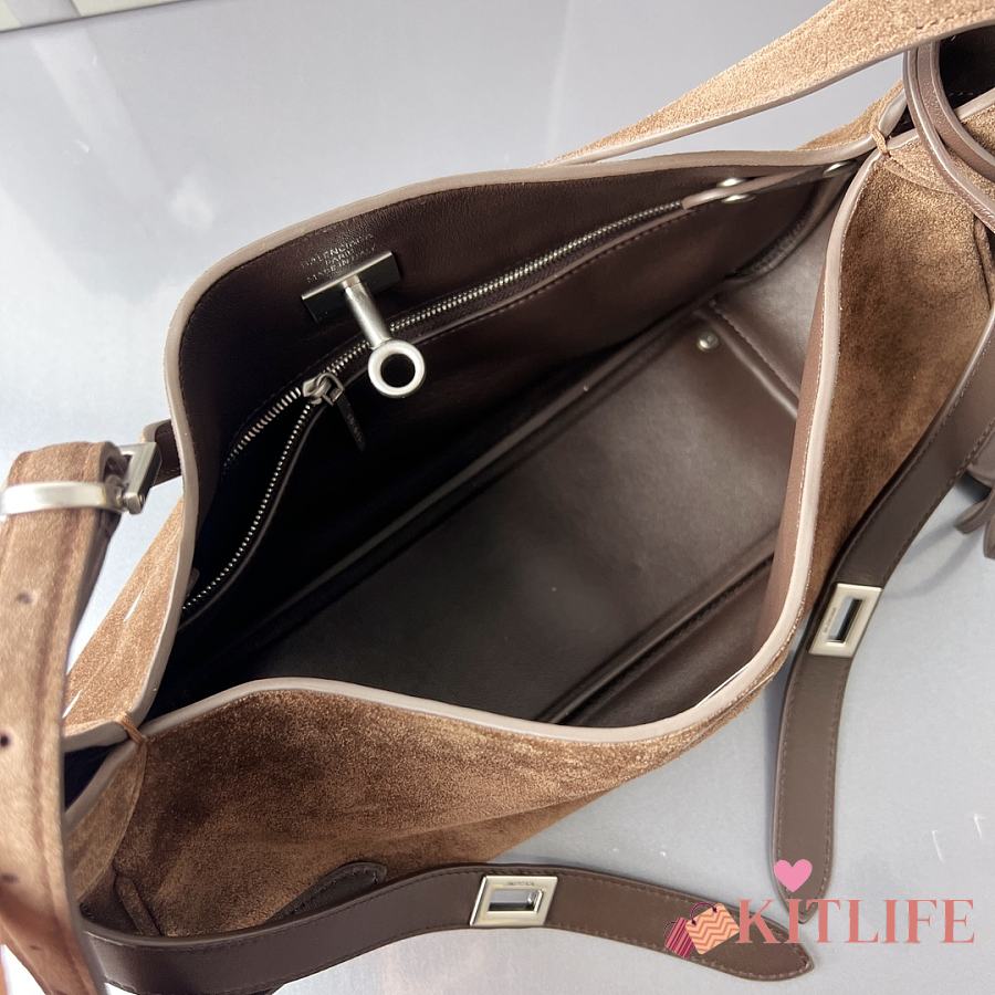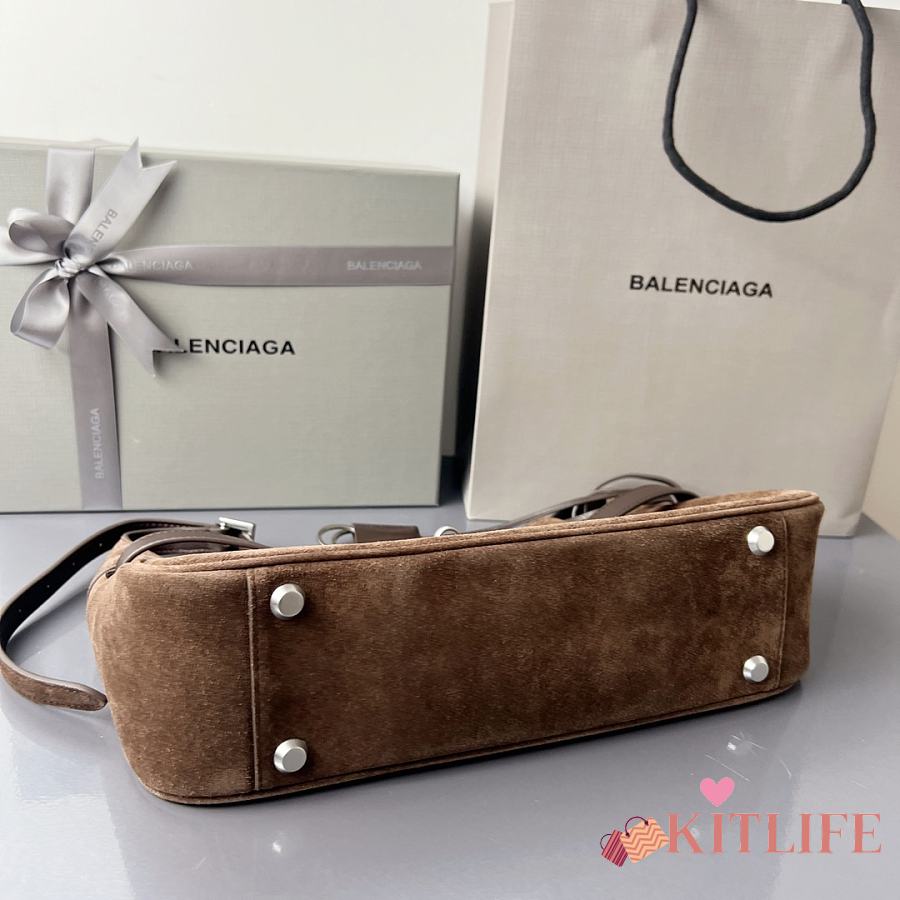 Kitlife Balenciaga Bel Air Small Dark Brown Suede Shoulder Bag 35x10x17cm