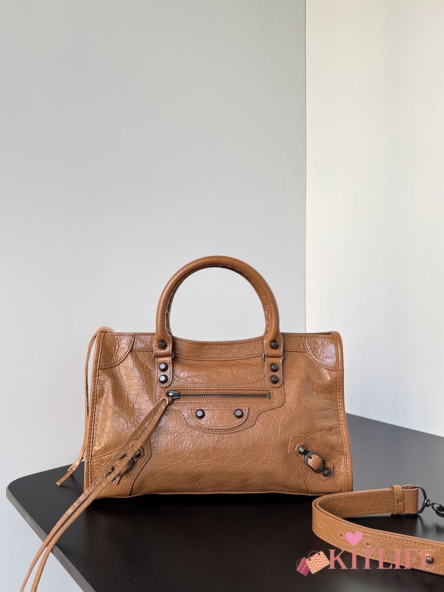 Kitlife Balenciaga Le City Bag in Brown Lambskin 30x20x10cm