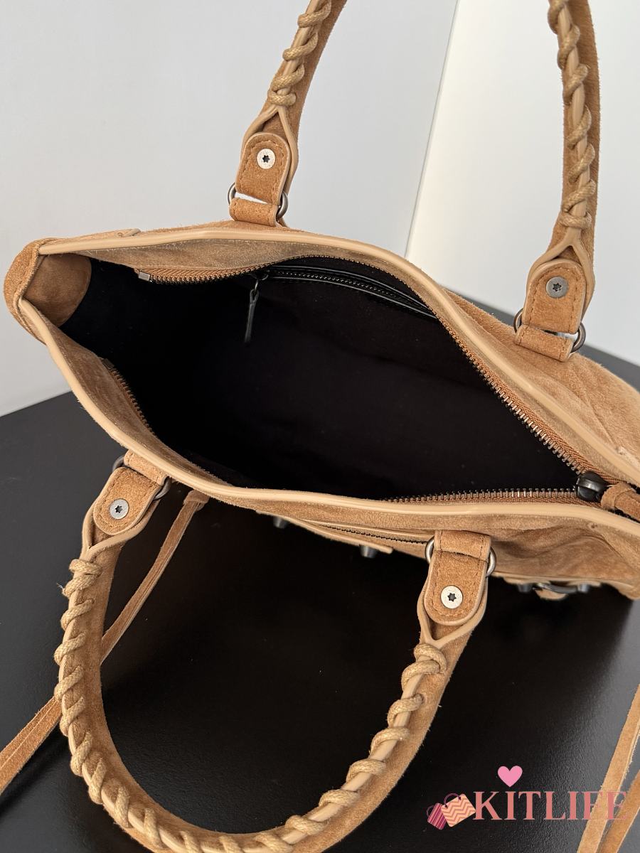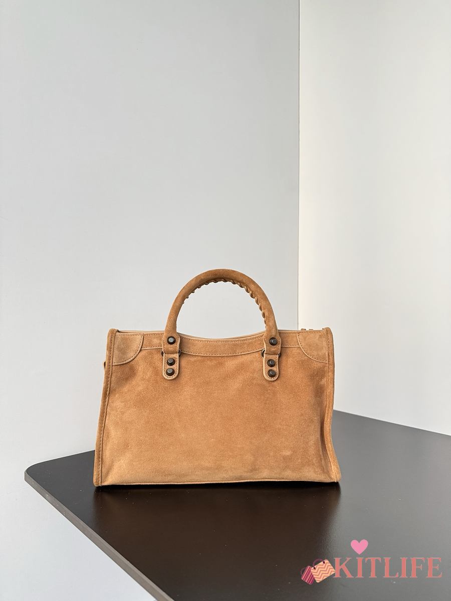 Kitlife Balenciaga Le City Bag in Camel Suede Leather 30x20x10cm