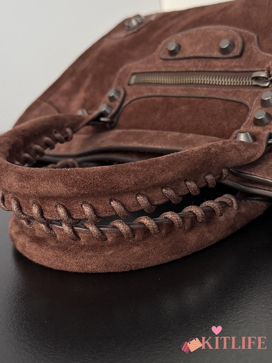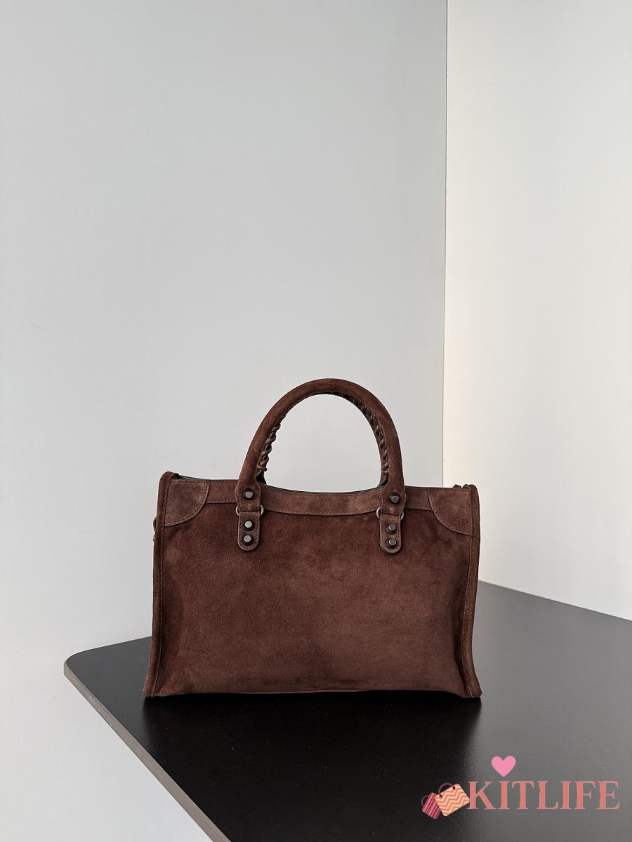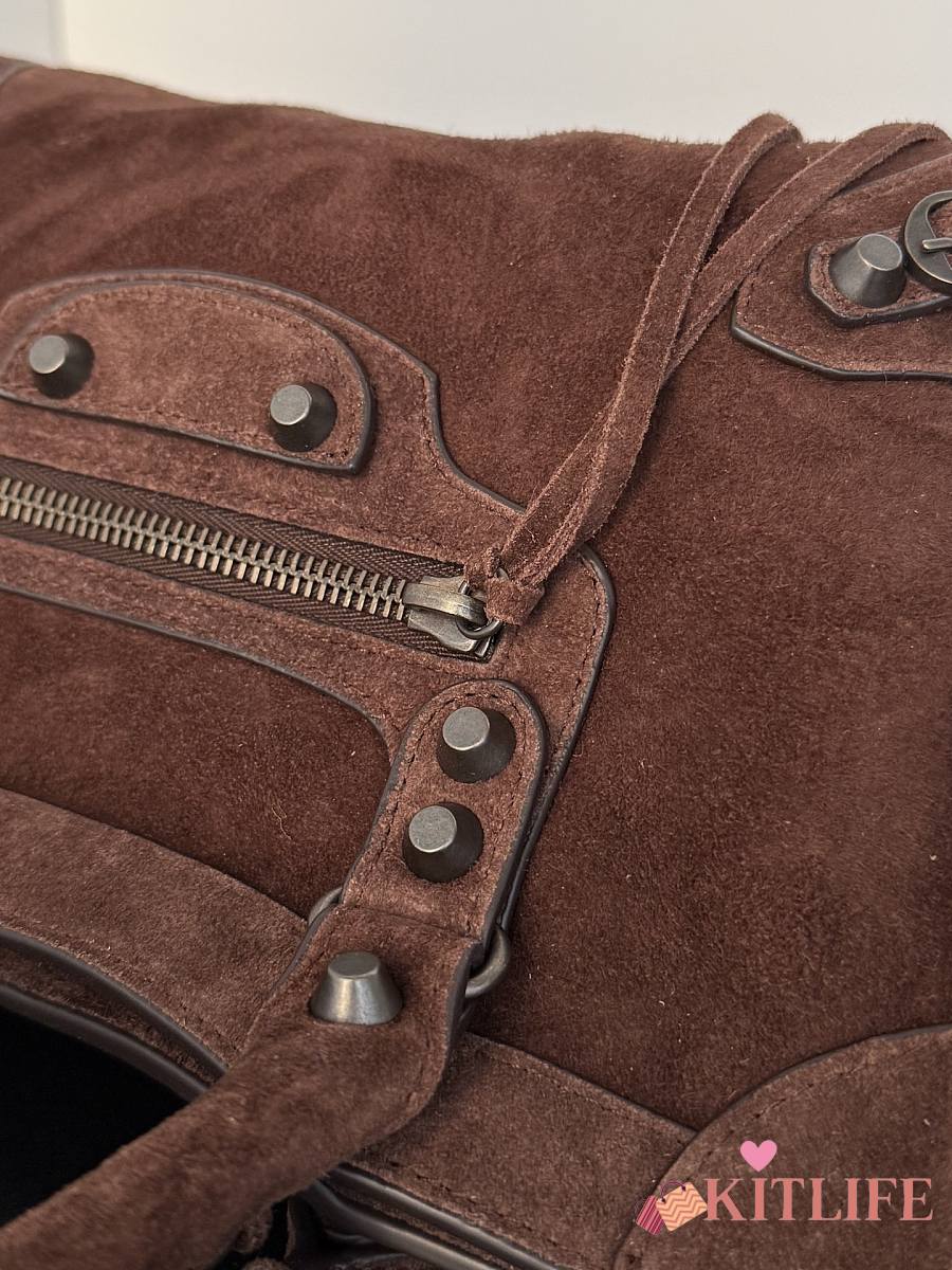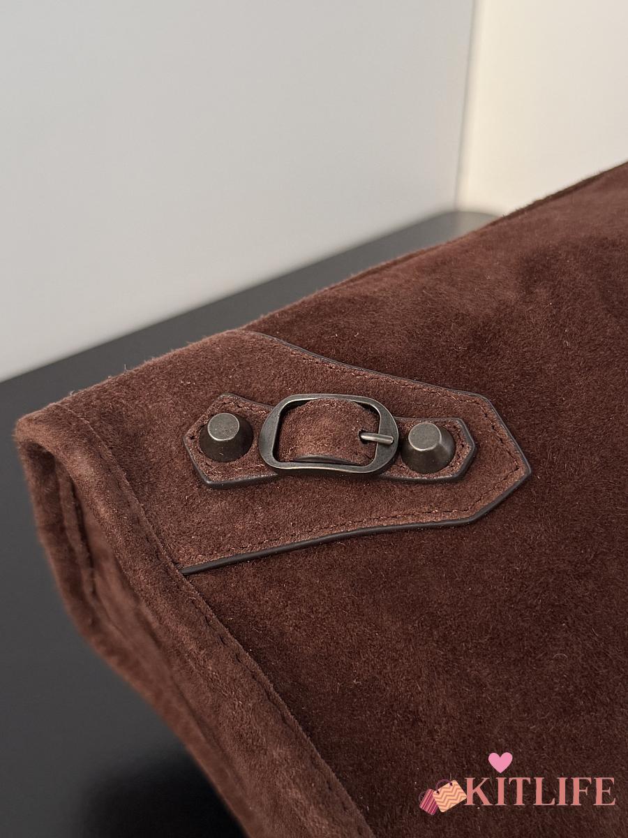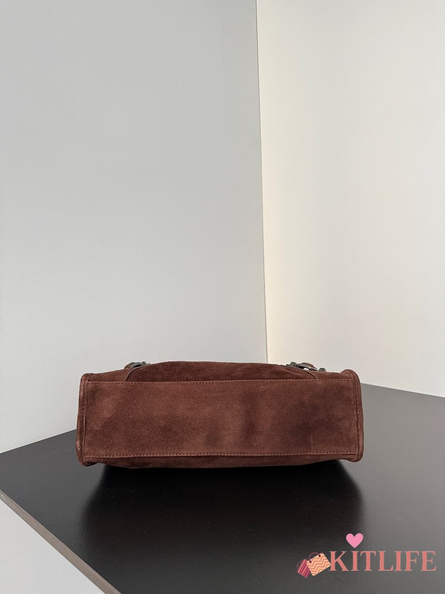 Kitlife Balenciaga Le City Bag in Dark Brown Suede Leather 30x20x10cm