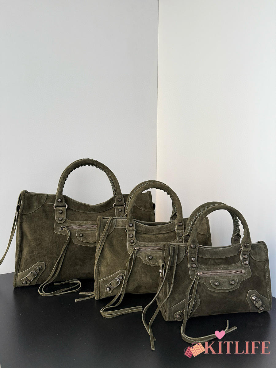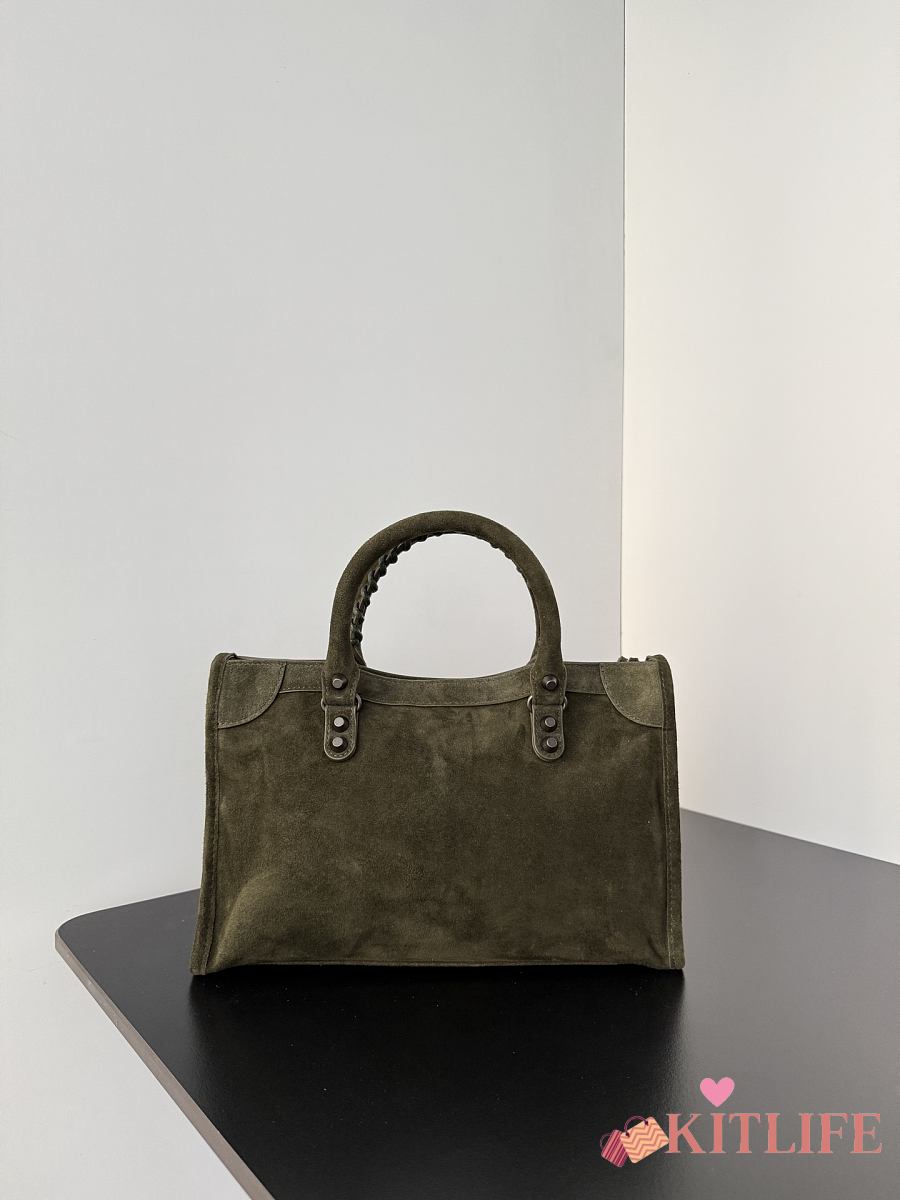 Kitlife Balenciaga Le City Bag in Khaki Suede Leather 30x20x10cm