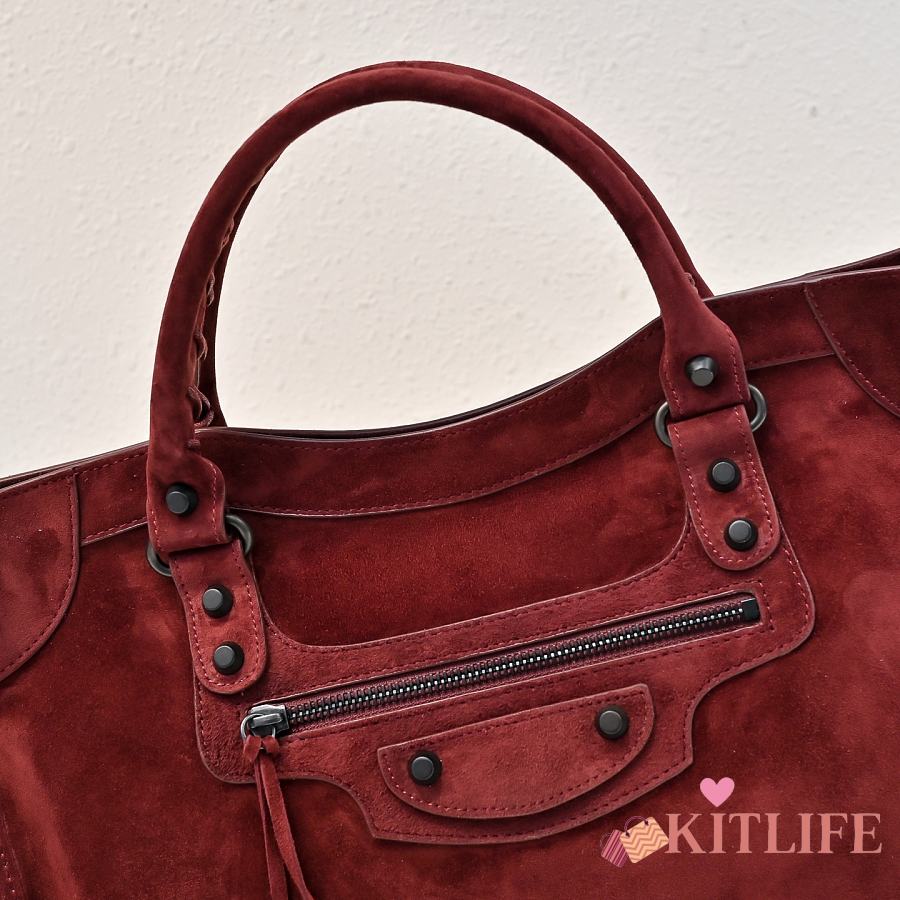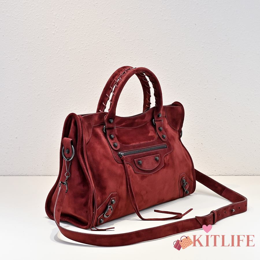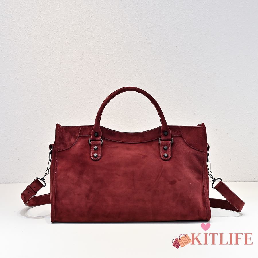 Kitlife Balenciaga Le City Bag in Red Suede Leather 37x27x10cm