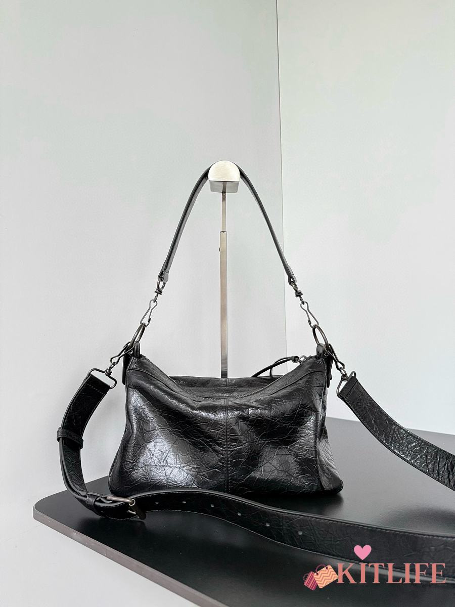 Kitlife Chloe Charms Hobo Bag In Black Leather 34x25x17cm