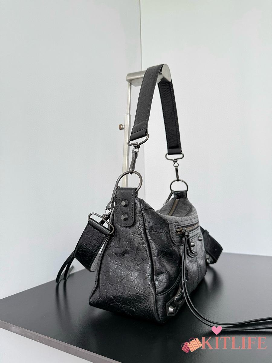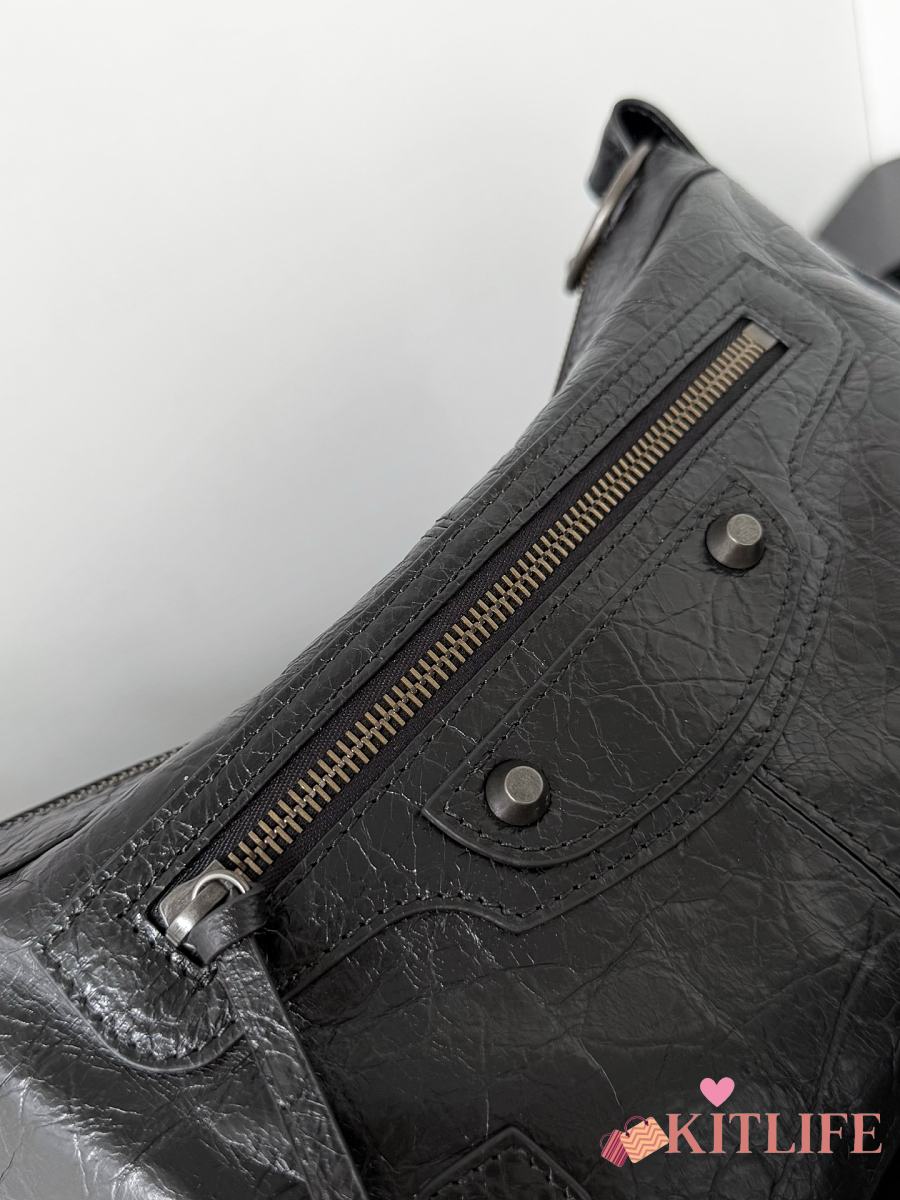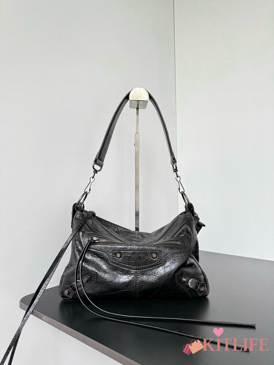 Kitlife Balenciaga Le City Moto Medium Bag in Black Lambskin 27.9x19x13.9cm