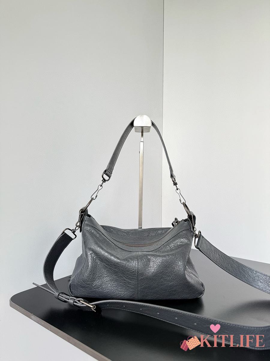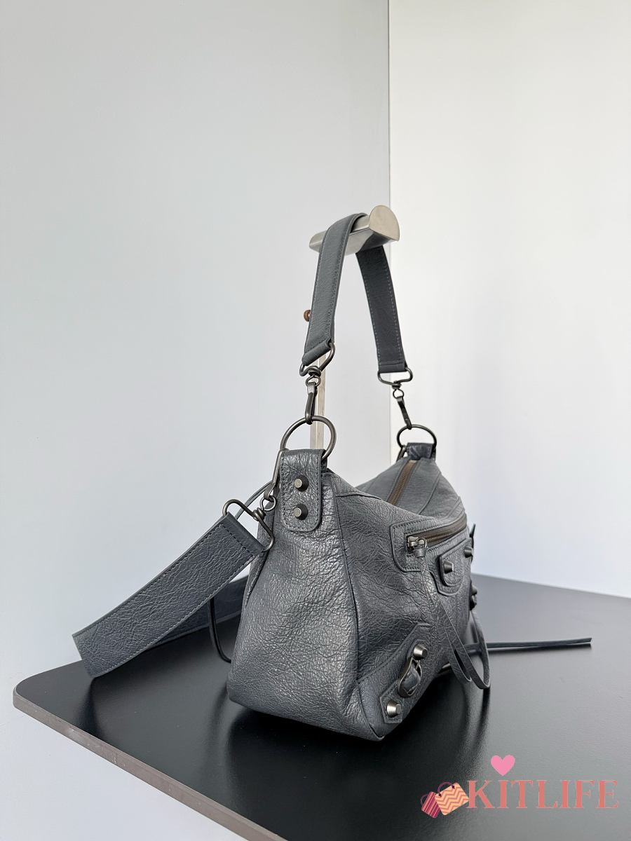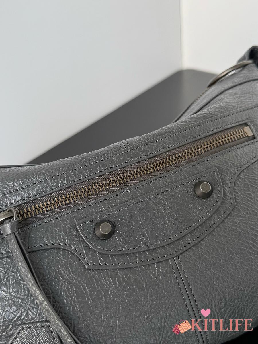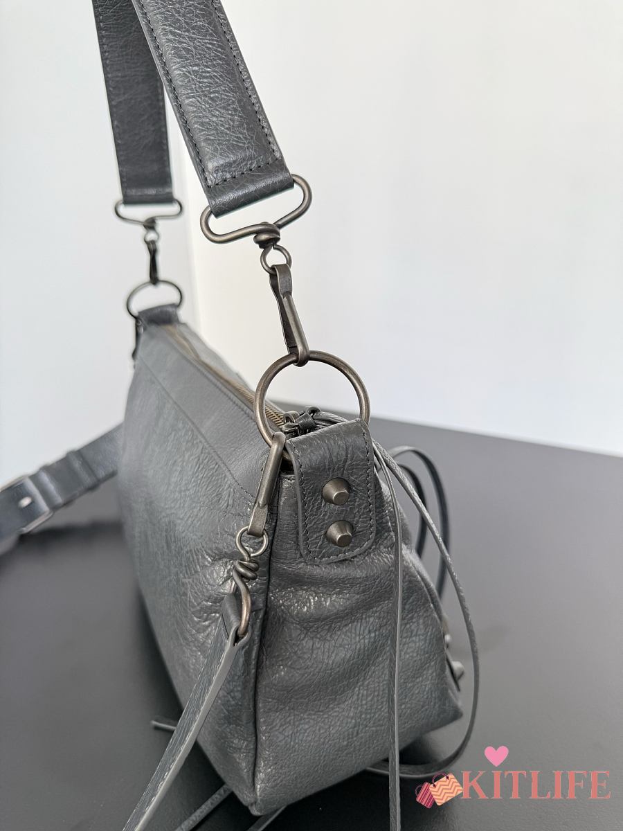 Kitlife Balenciaga Le City Moto Medium Bag in Grey Lambskin 27.9x19x13.9cm