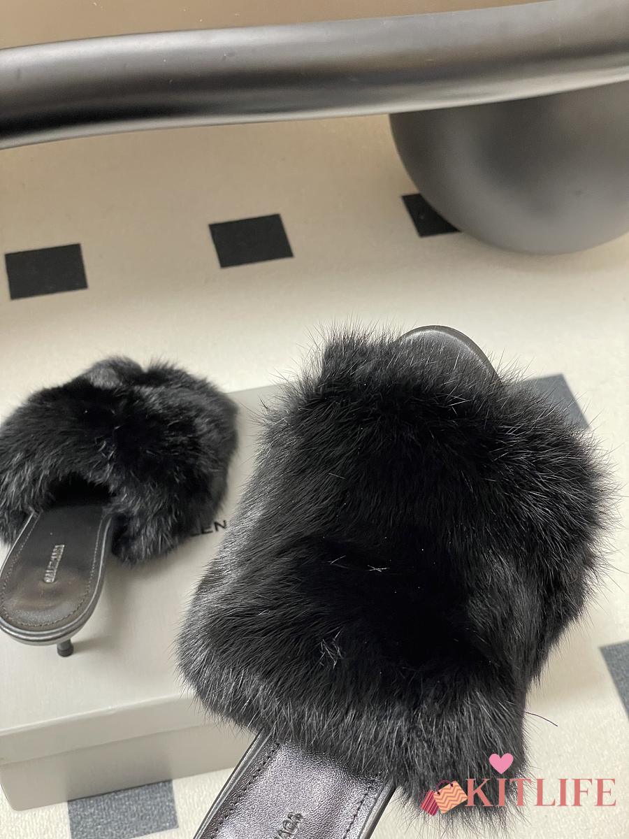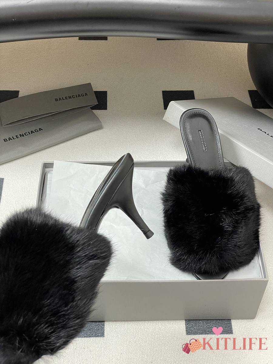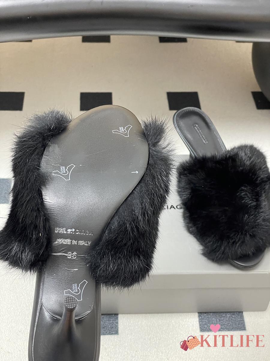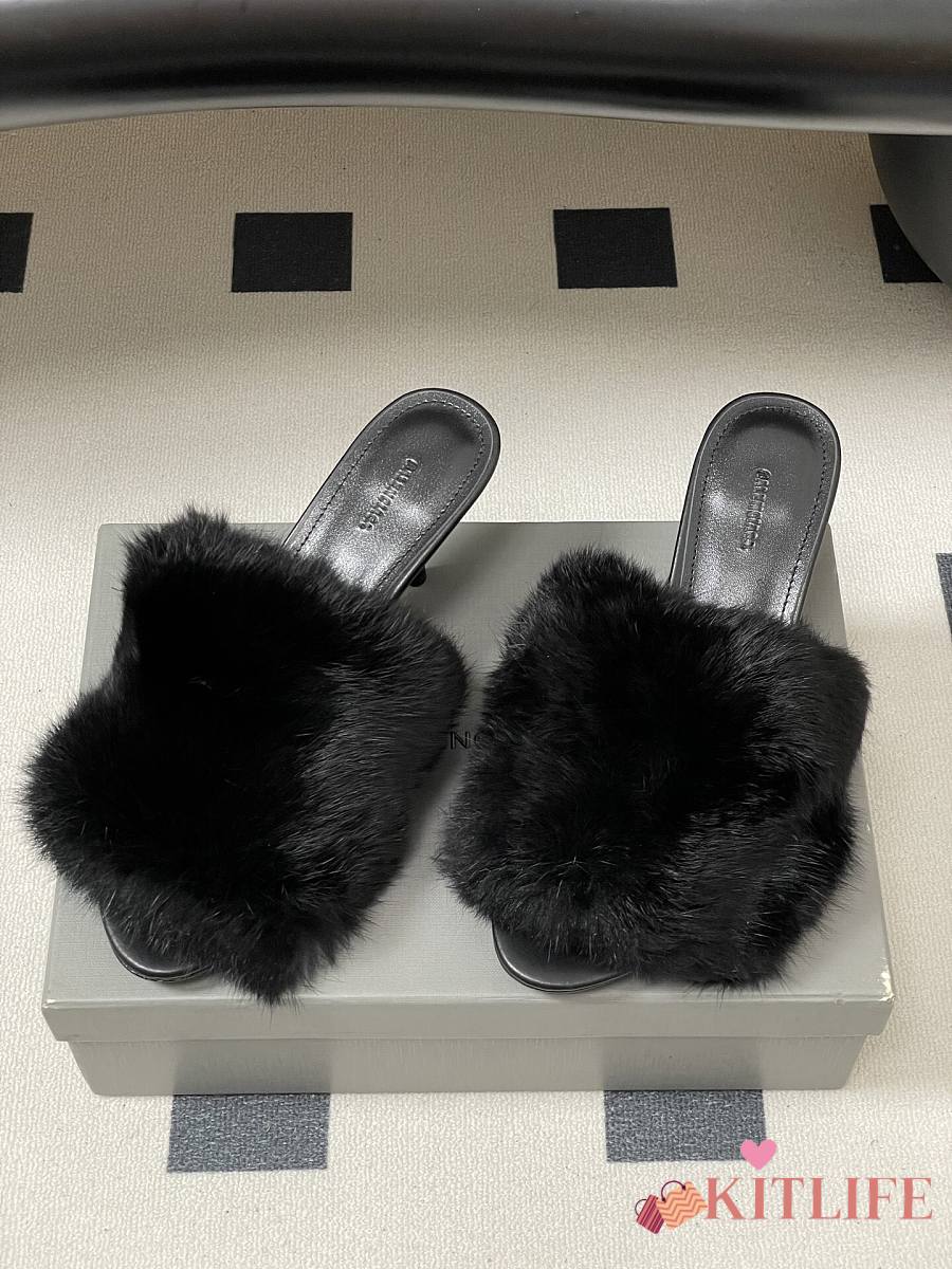 Kitlife Balenciaga Plush Tail Kitten Heel Slippers Black 65mm