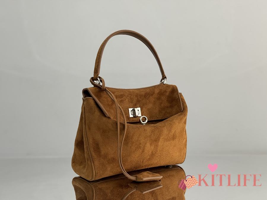 Kitlife Balenciaga Rodeo Mini Handbag in Camel Suede And Smooth Calfskin 22x10x8cm