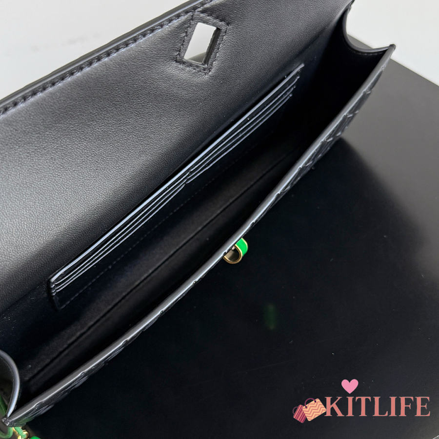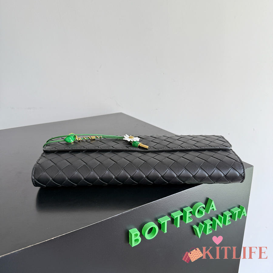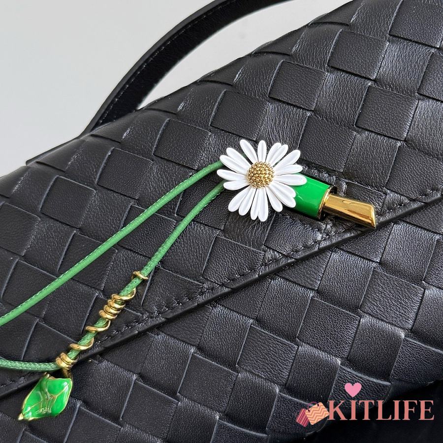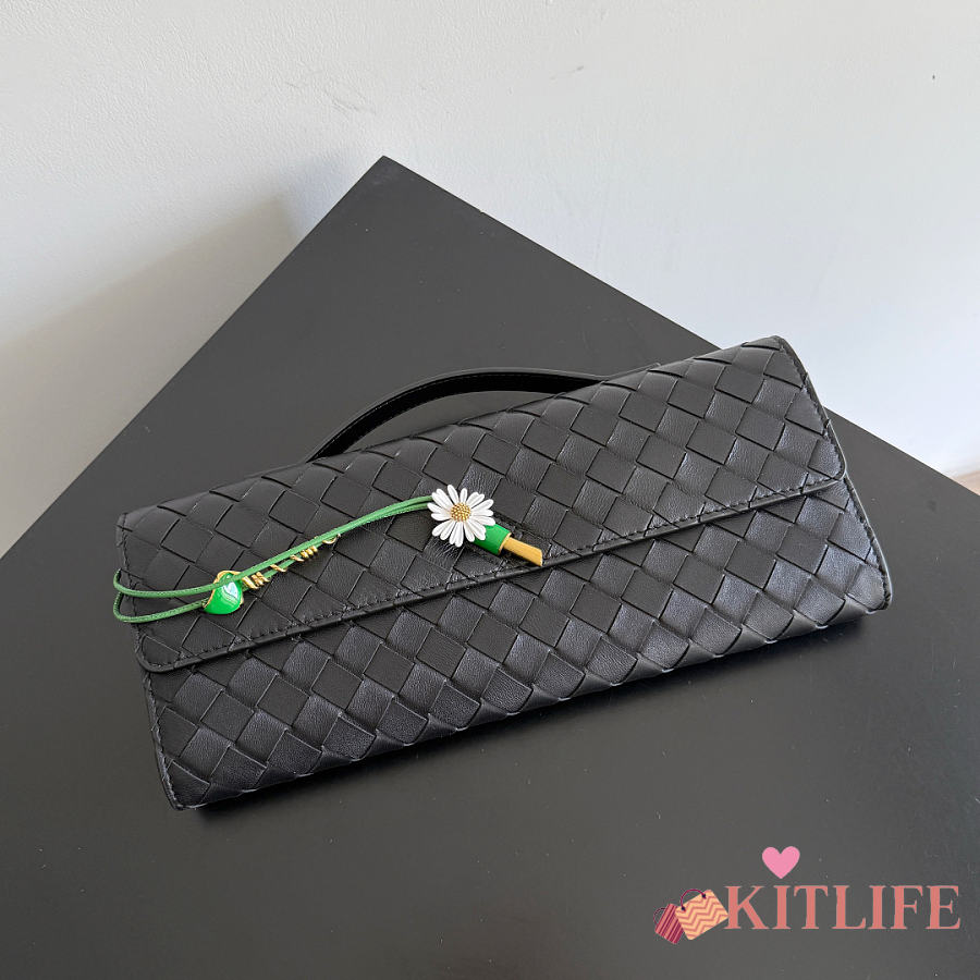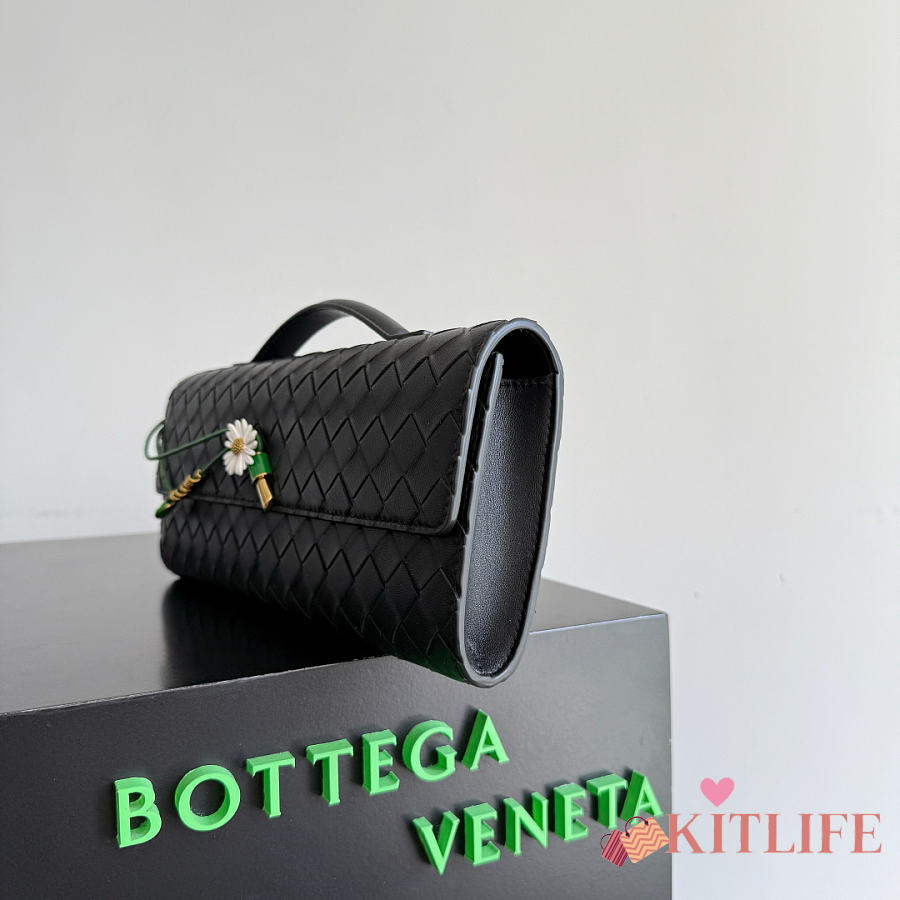Kitlife Bottega Veneta Andiamo Clutch Black With Daisy Flower Closure 836810 31x13x3cm