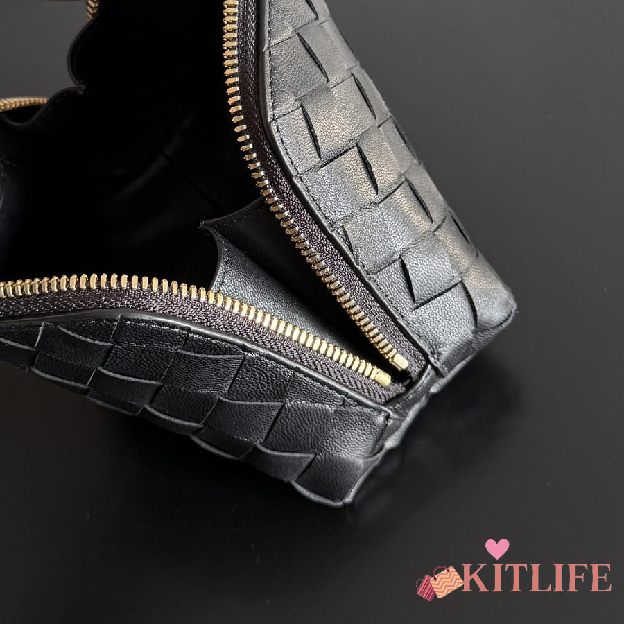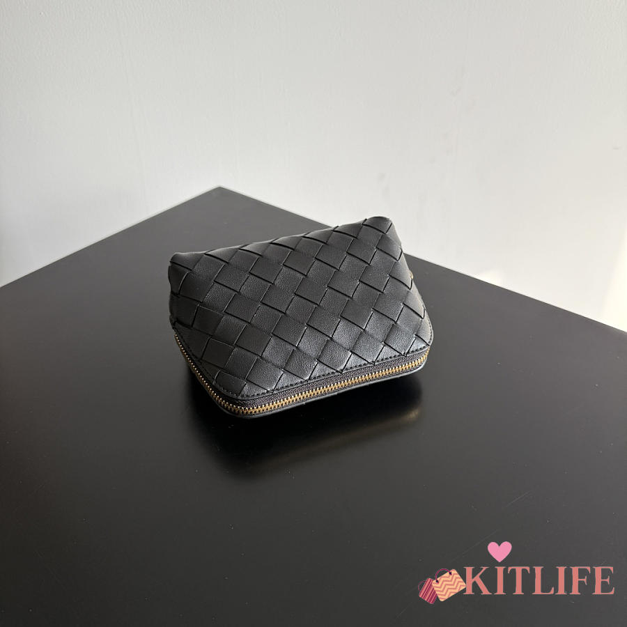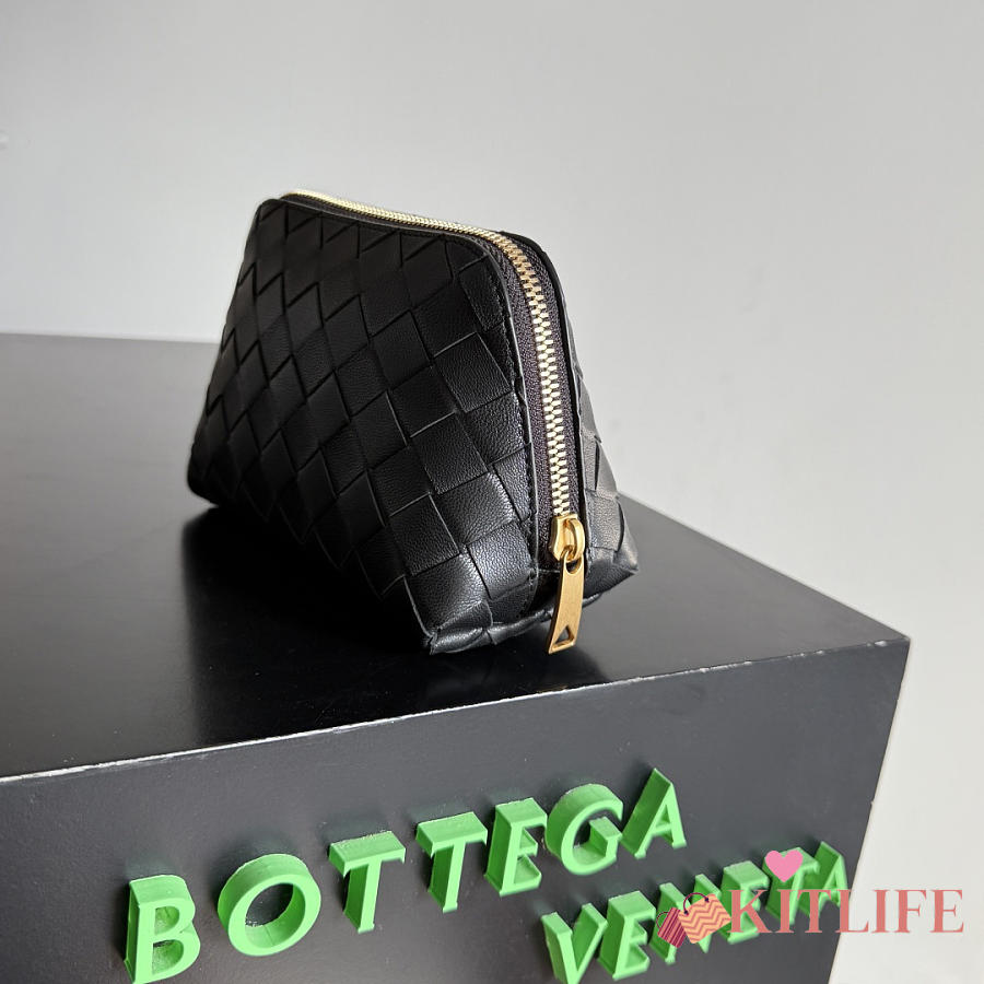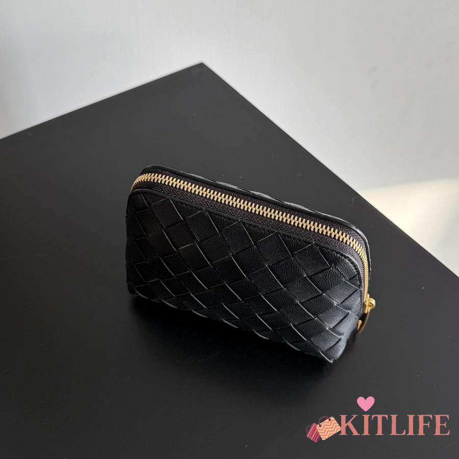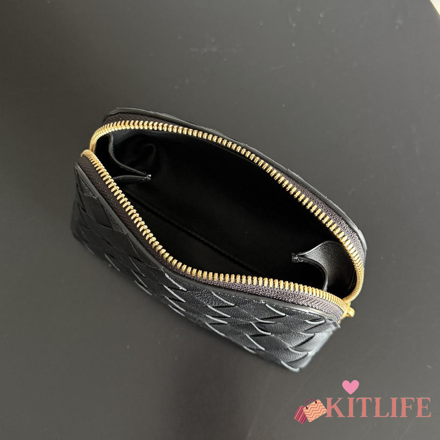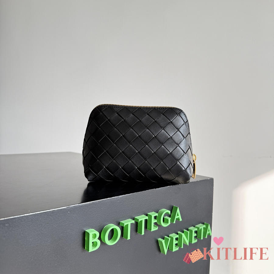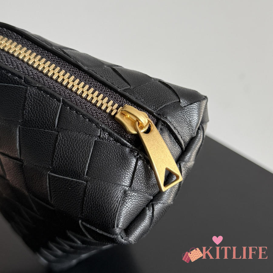 Kitlife Bottega Veneta Intrecciato Small Beauty Pouch Black 764044 16.5x10.5x9cm