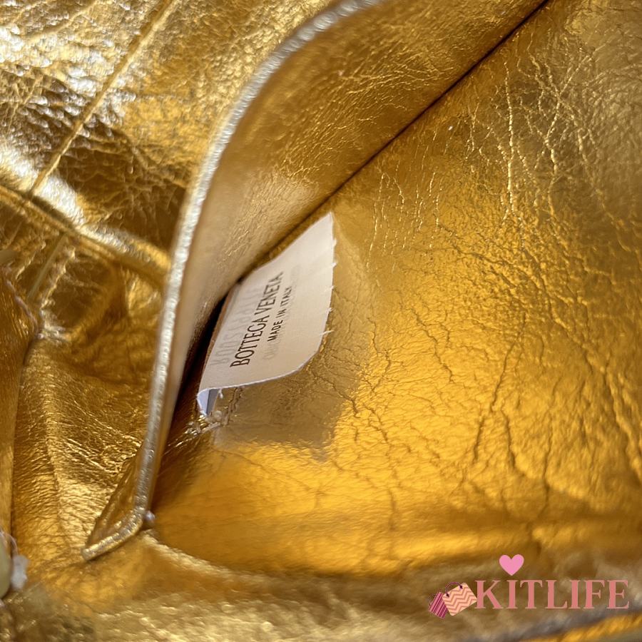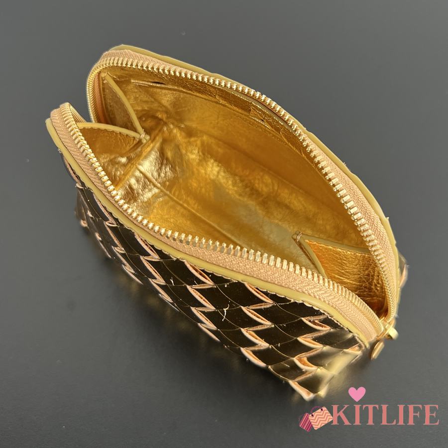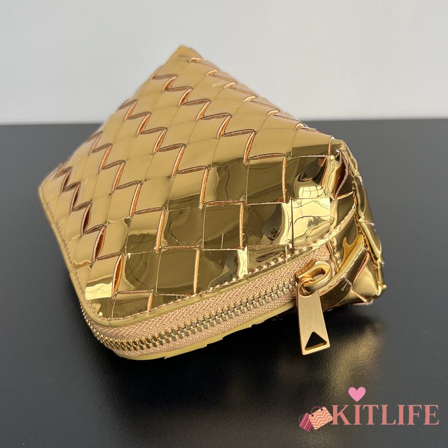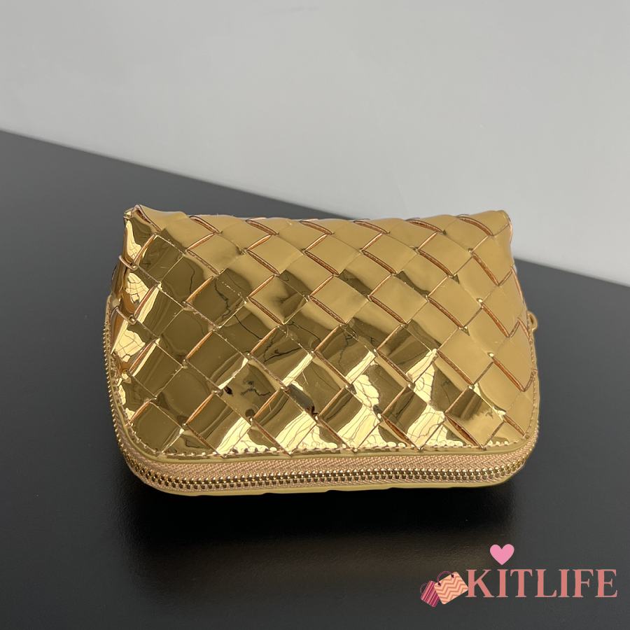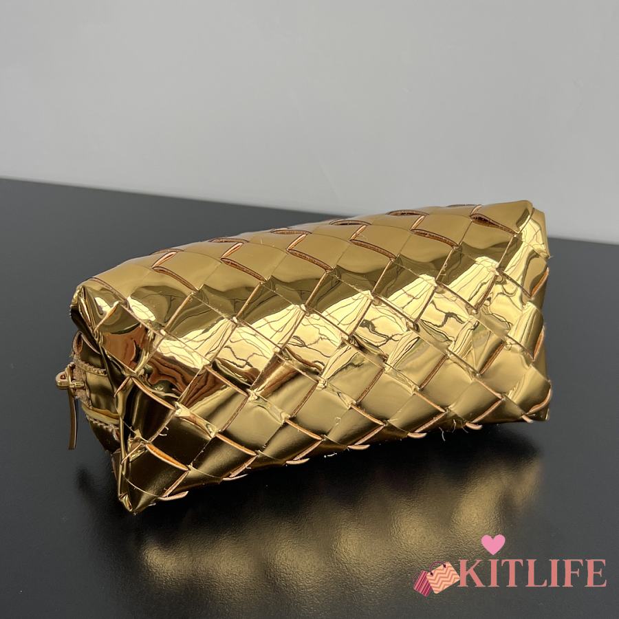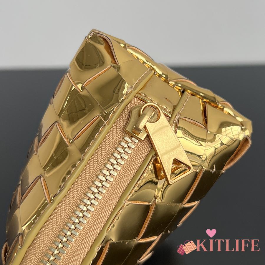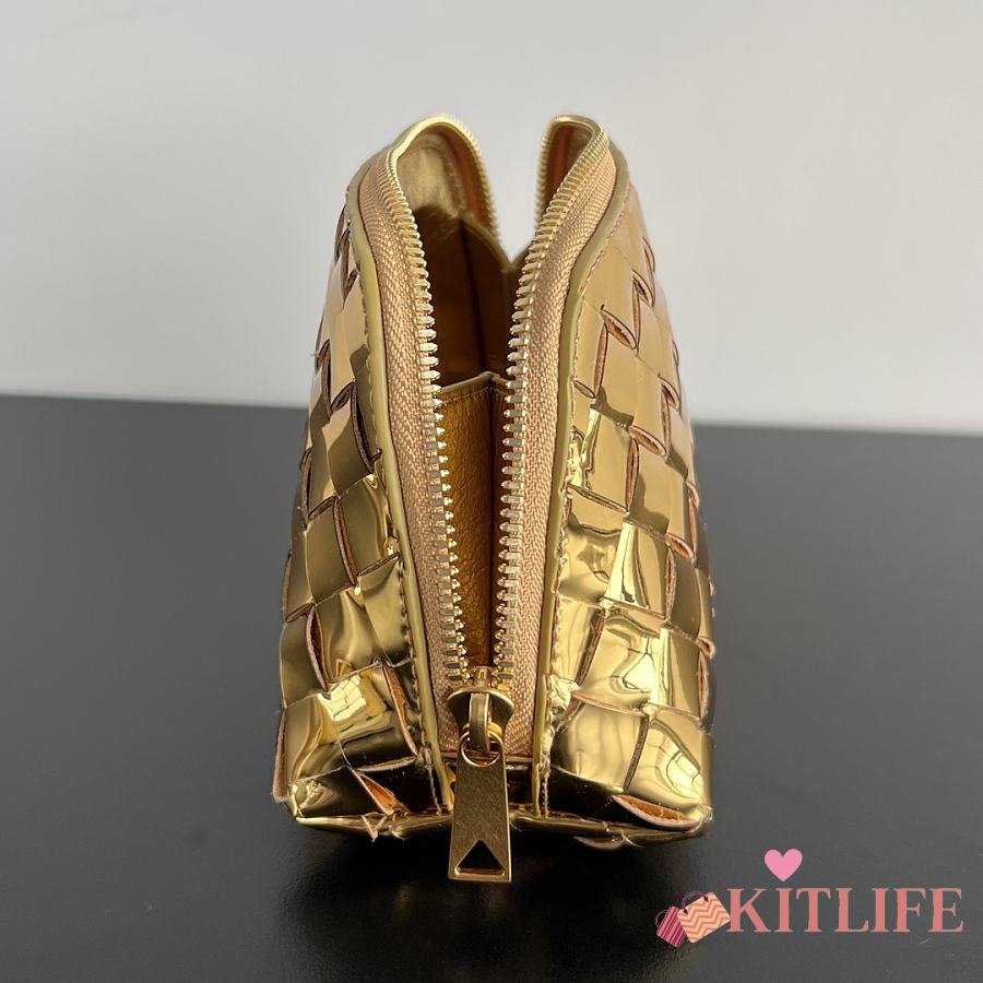 Kitlife Bottega Veneta Intrecciato Small Beauty Pouch Gold 764044 16.5x10.5x9cm