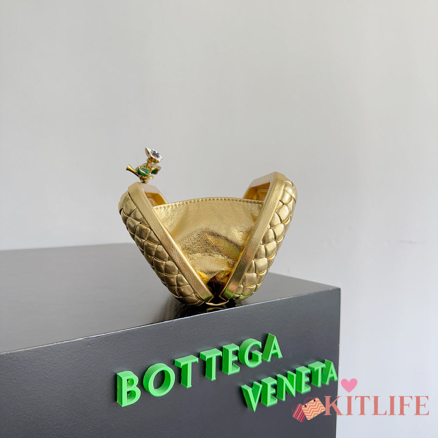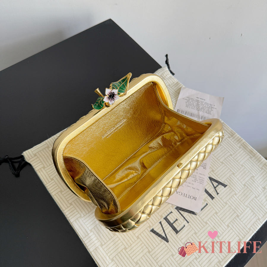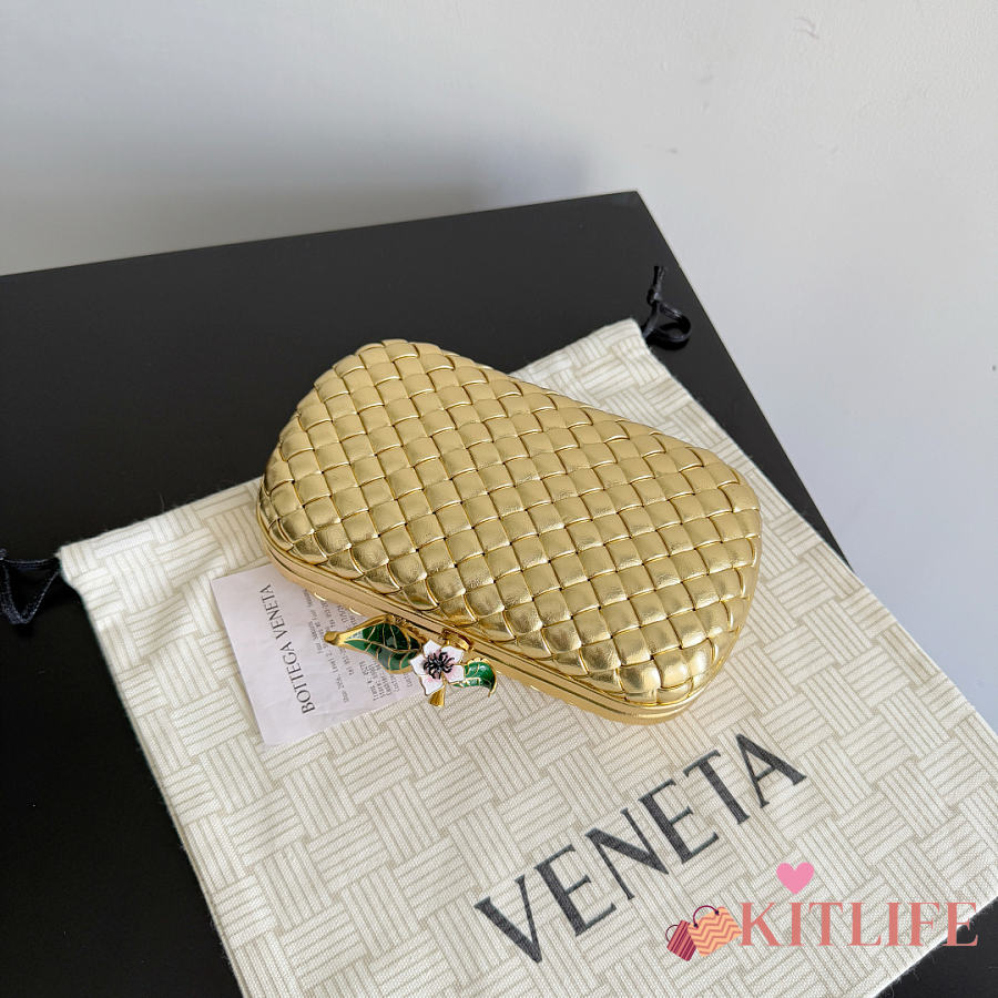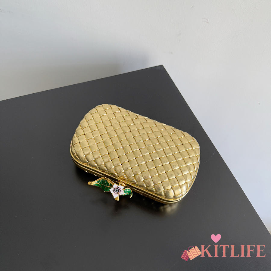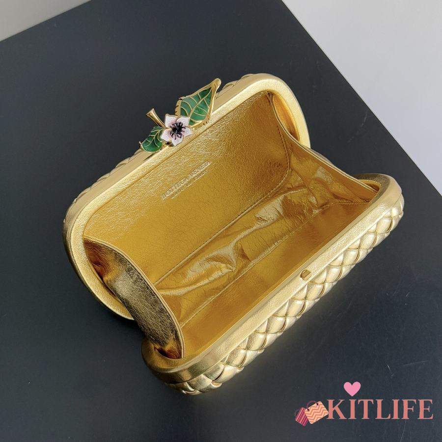 Kitlife Bottega Veneta Knot Flower Metallic Leather Minaudiere Bag 826183 19x11.5x5cm