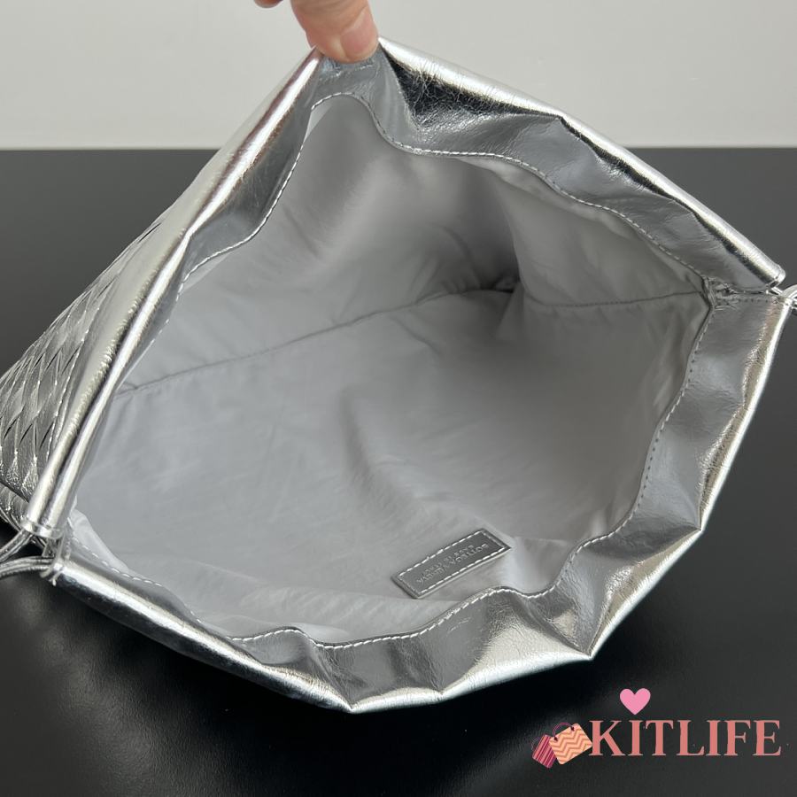 Kitlife Bottega Veneta Medium Dustbag In Intrecciato Silver Calf Leather 796728 32x23x1cm