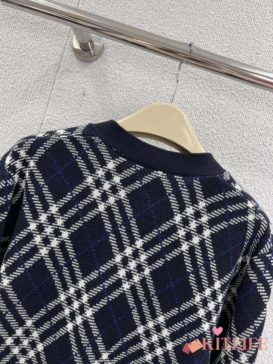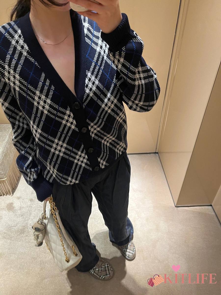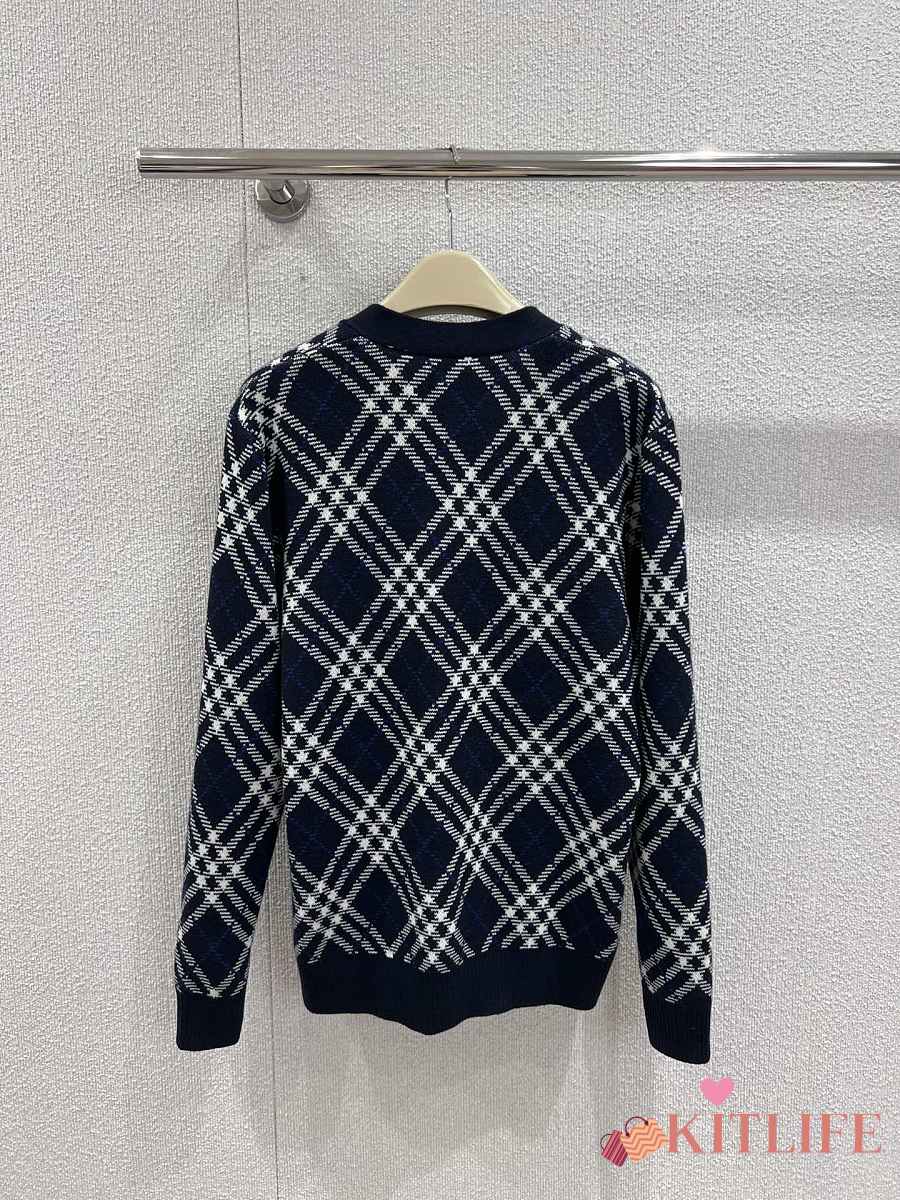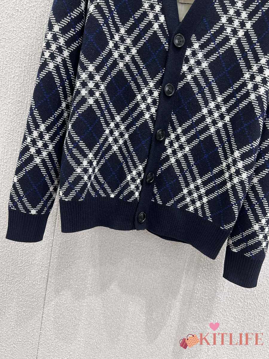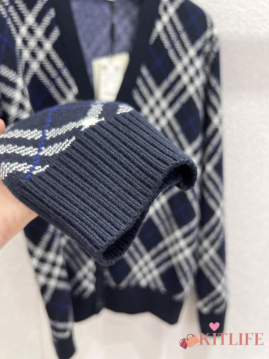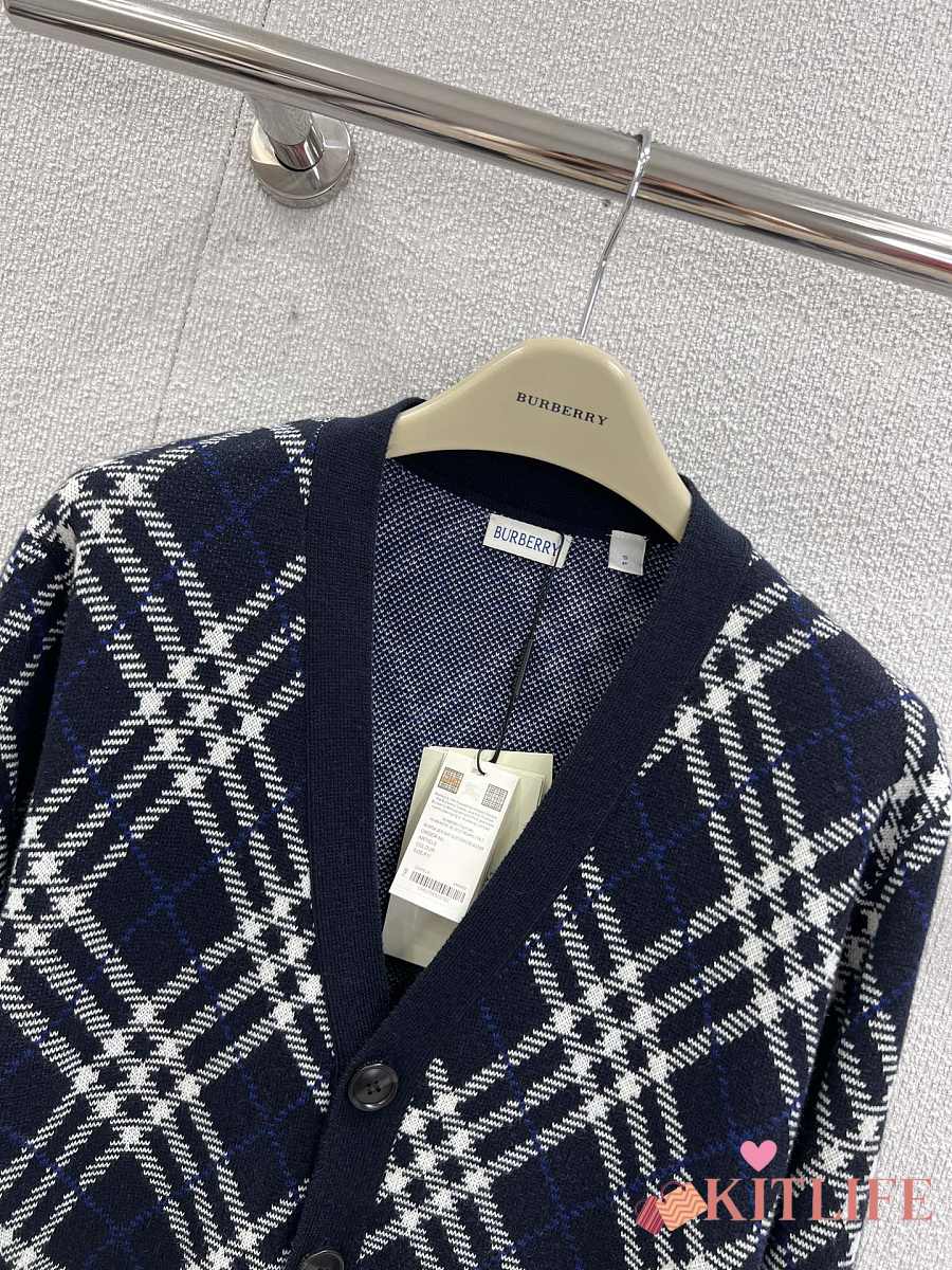 Kitlife Burberry 25FW Twill Check Wool Blend V-Neck Knit Cardigan Dark Blue
