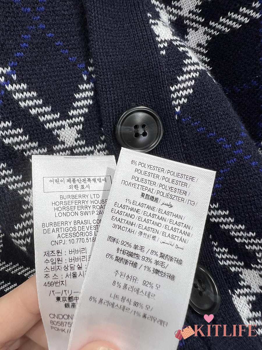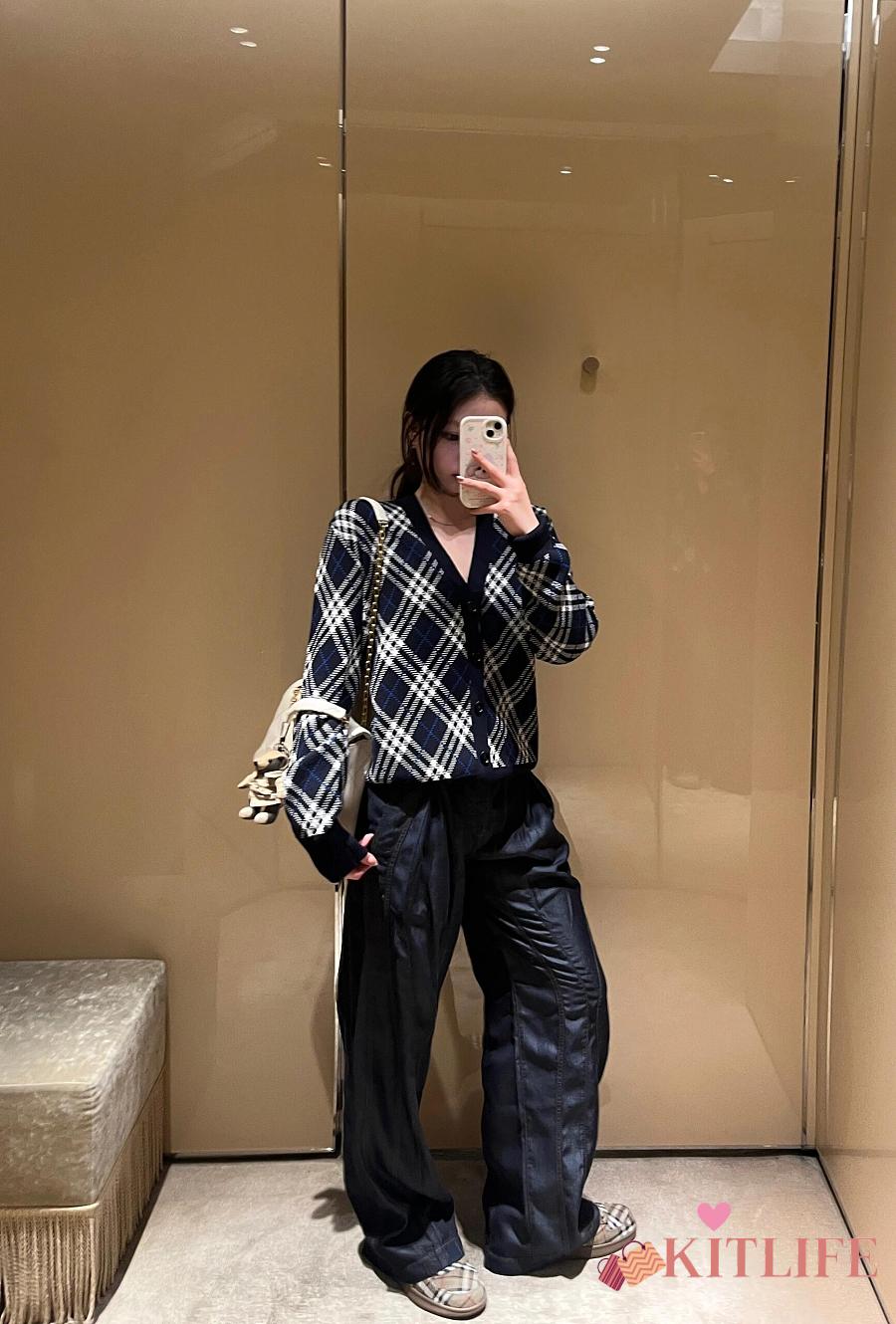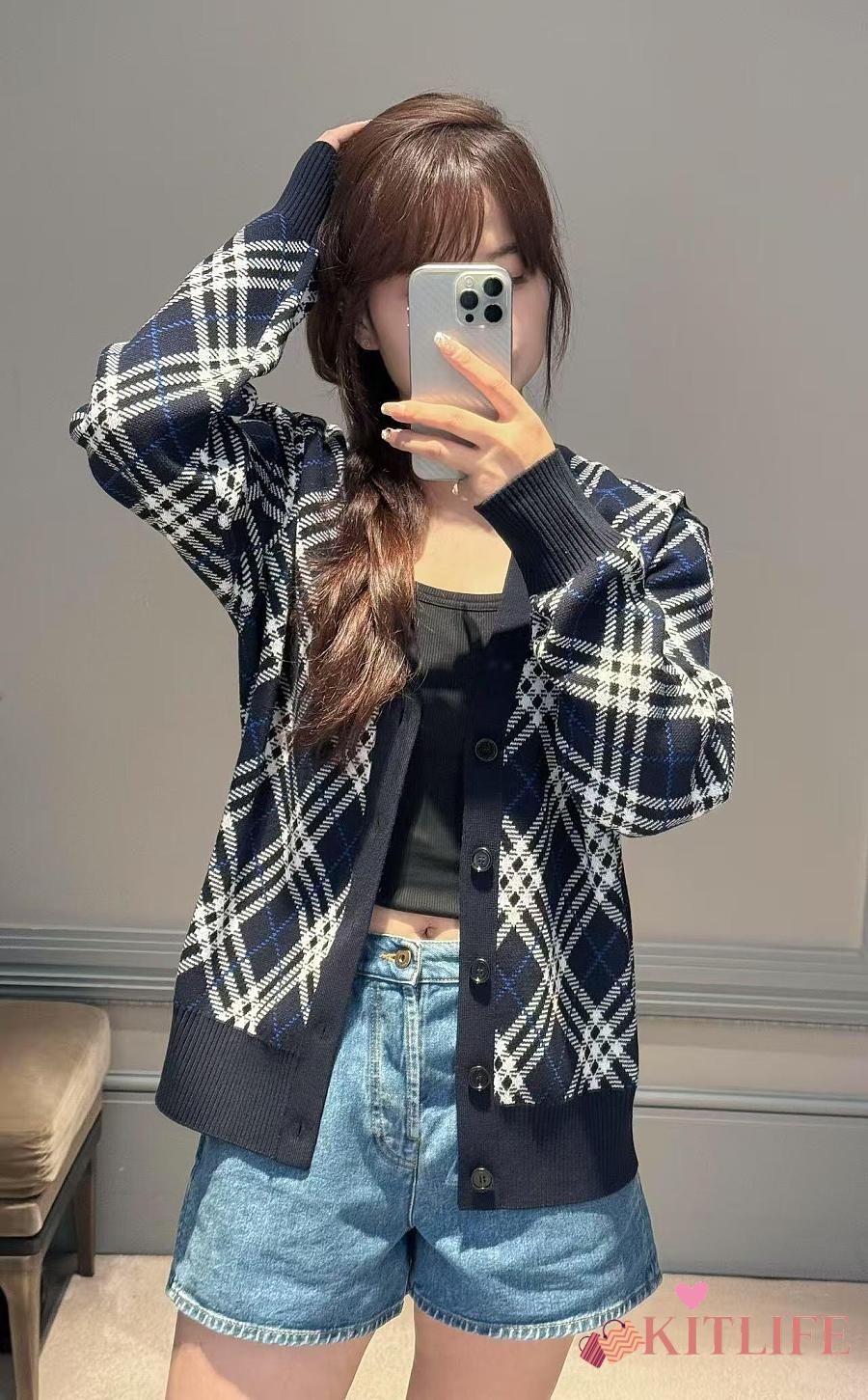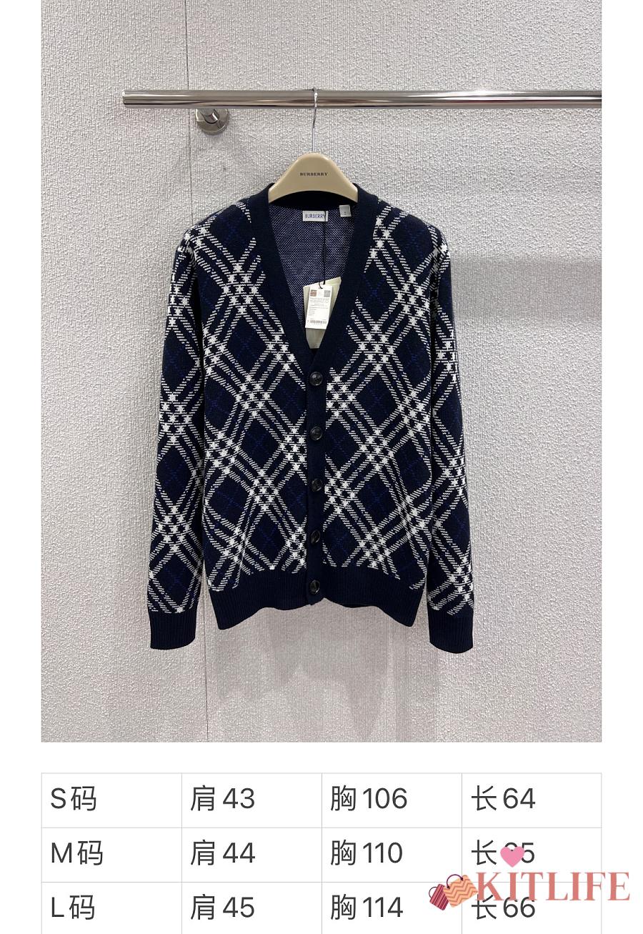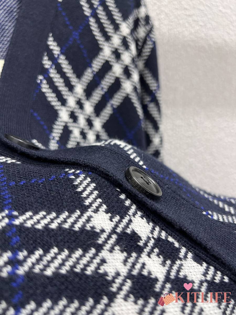 Kitlife Burberry 25FW Twill Check Wool Blend V-Neck Knit Cardigan Dark Blue