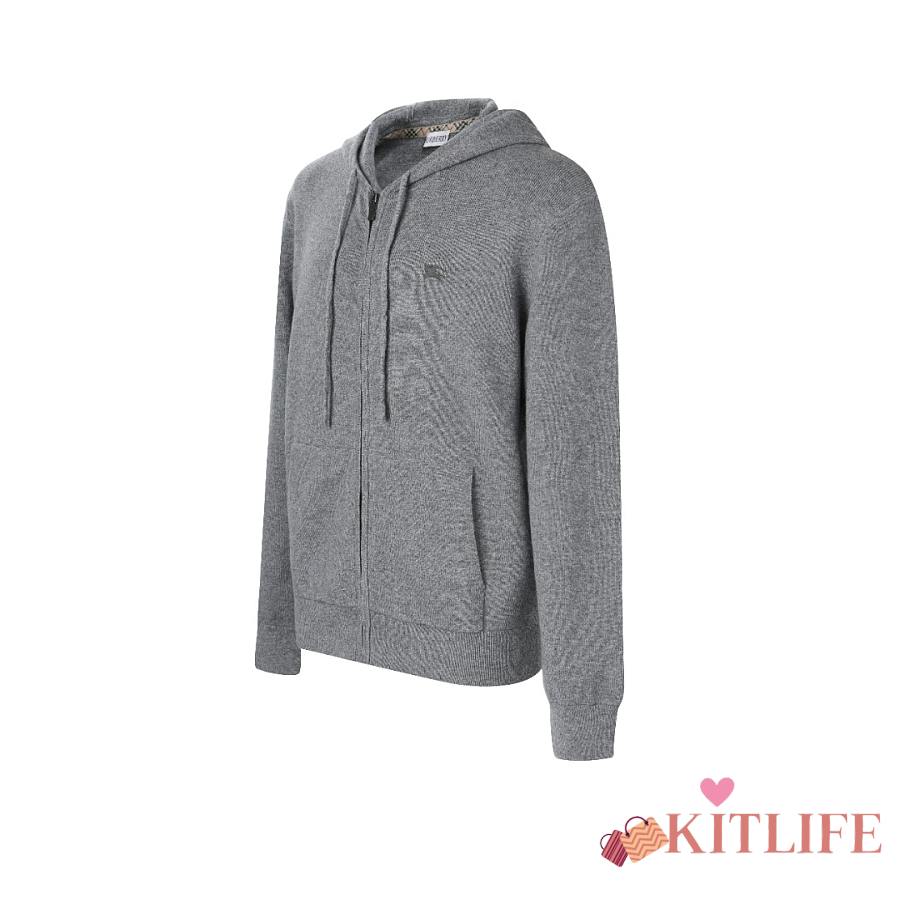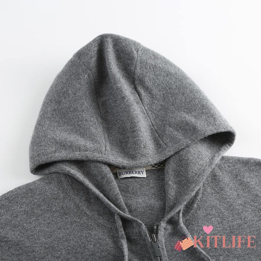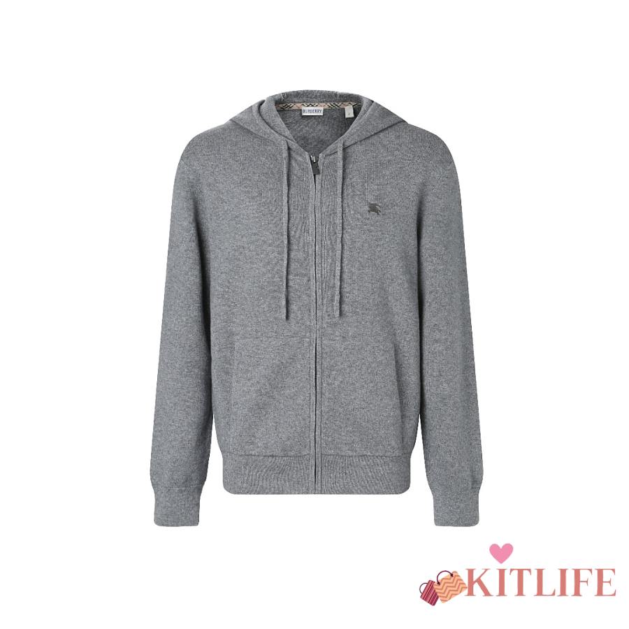Kitlife Burberry Men Cashmere-Blend Zip-Up Slim Hoodie Grey