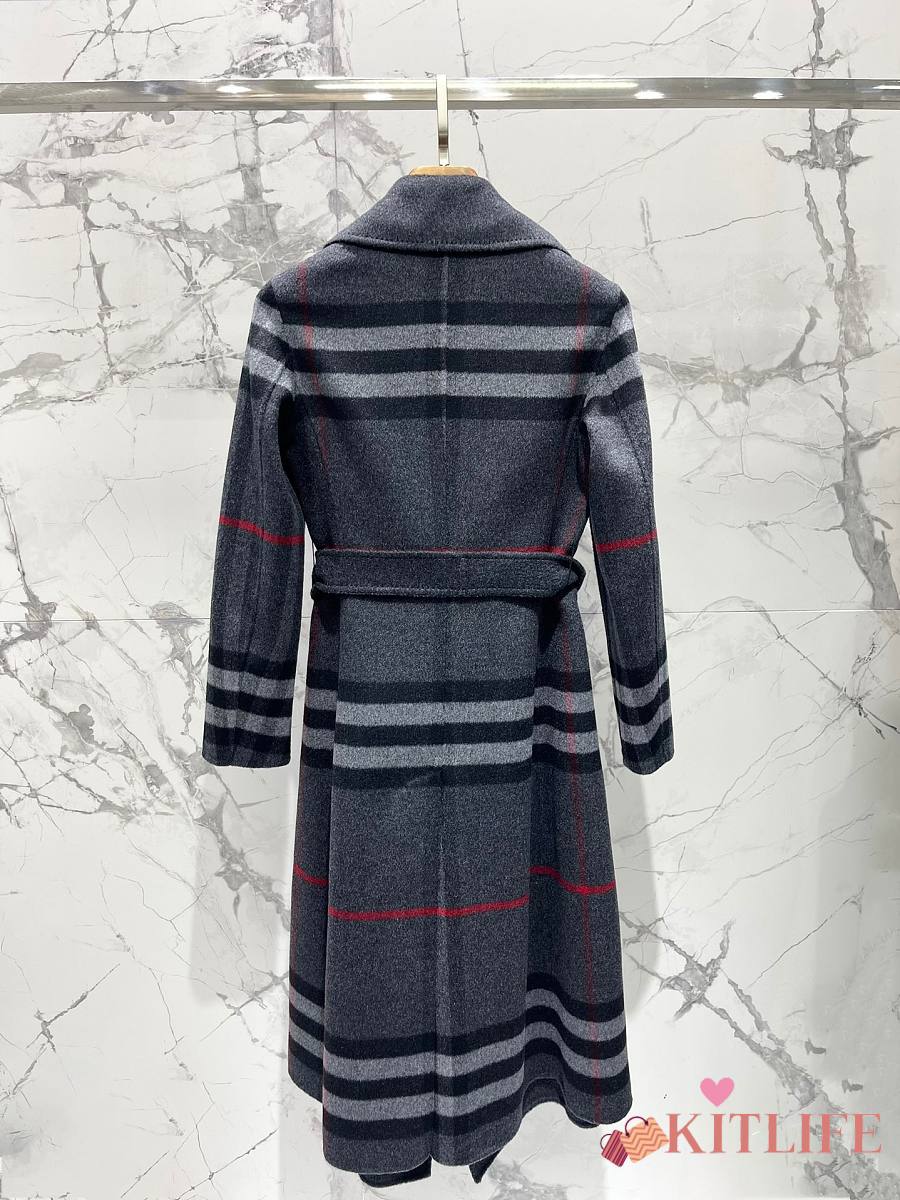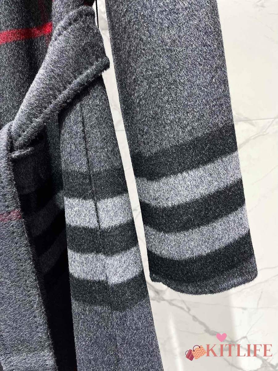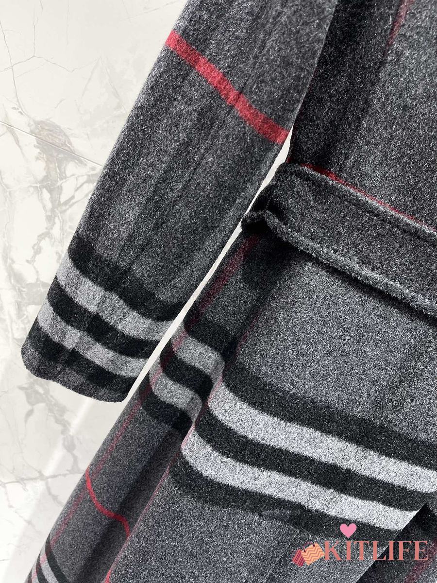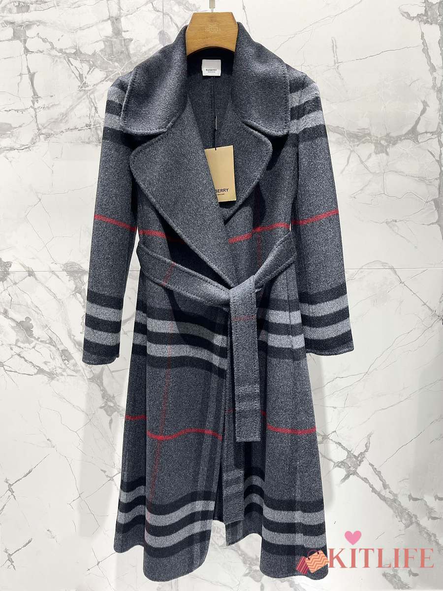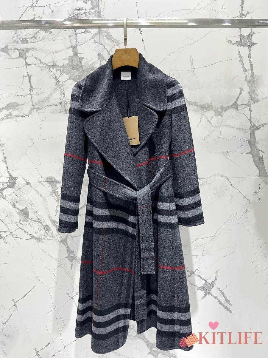 Kitlife Burberry Check Ripple Double-Sided Cashmere Coat Grey