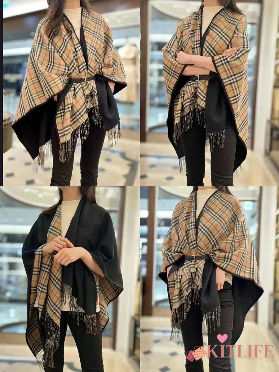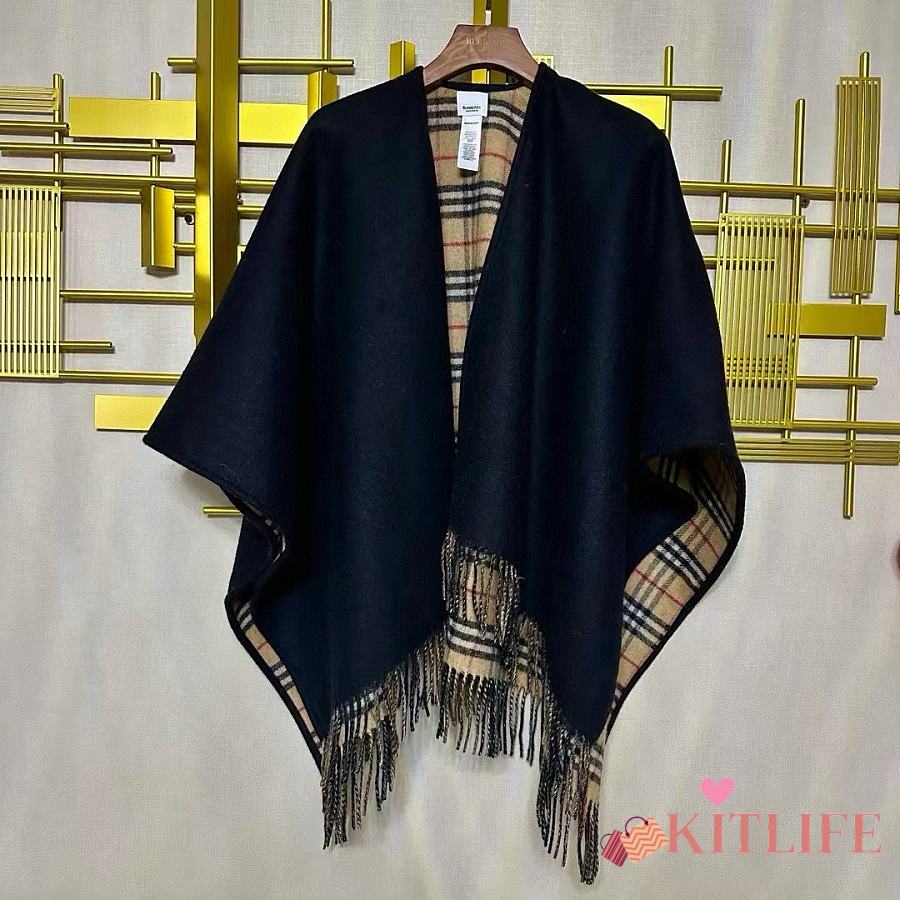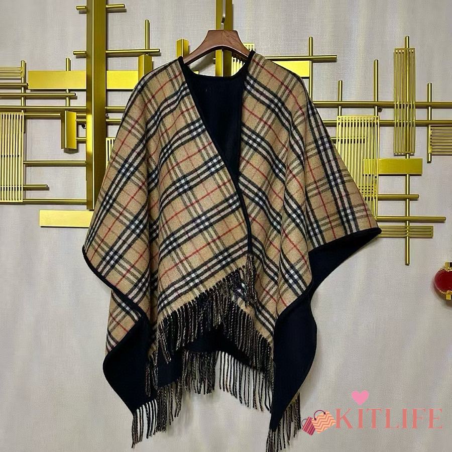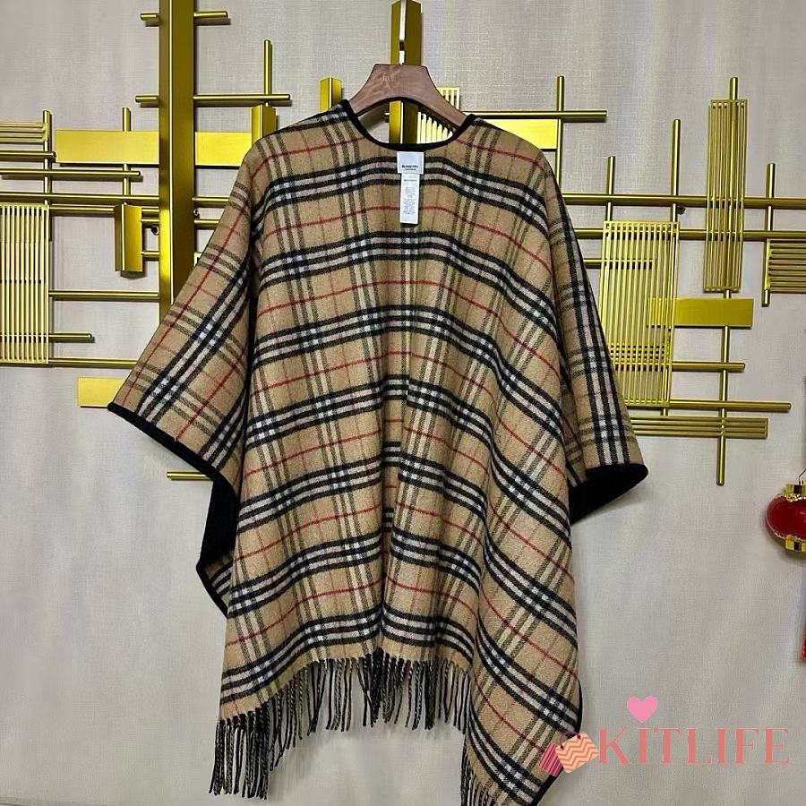 Kitlife Burberry Check Wool Reversible Cape Beige & Black 130x150cm