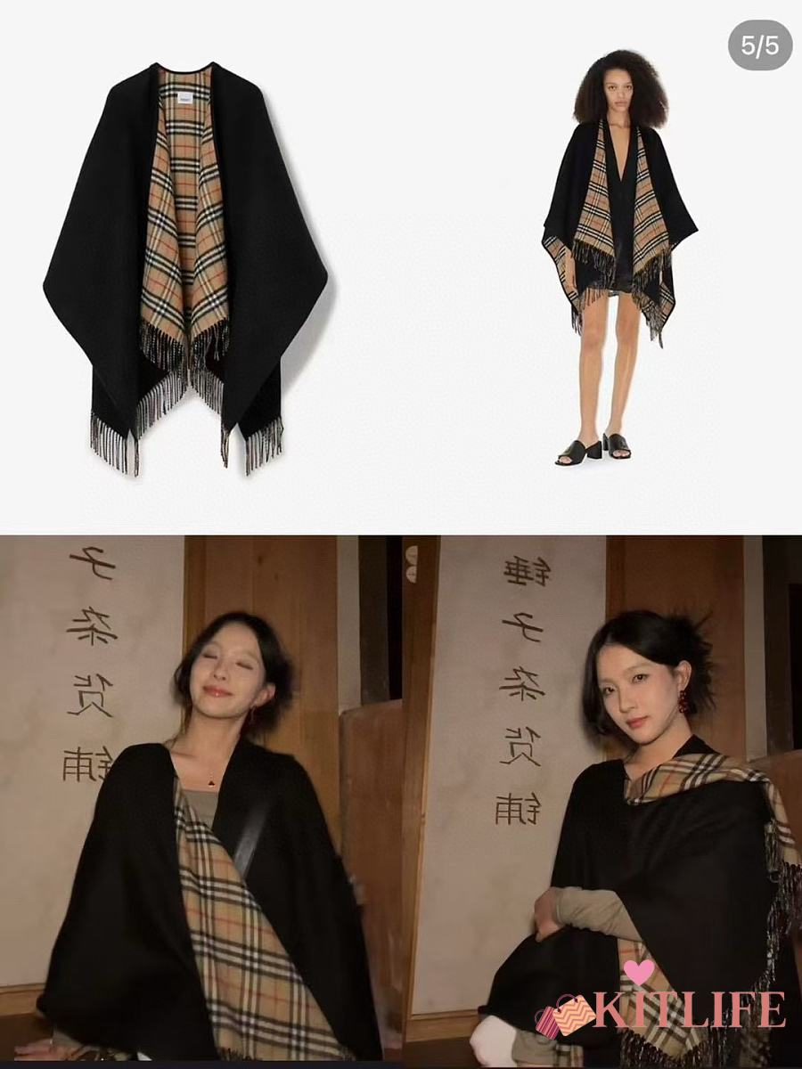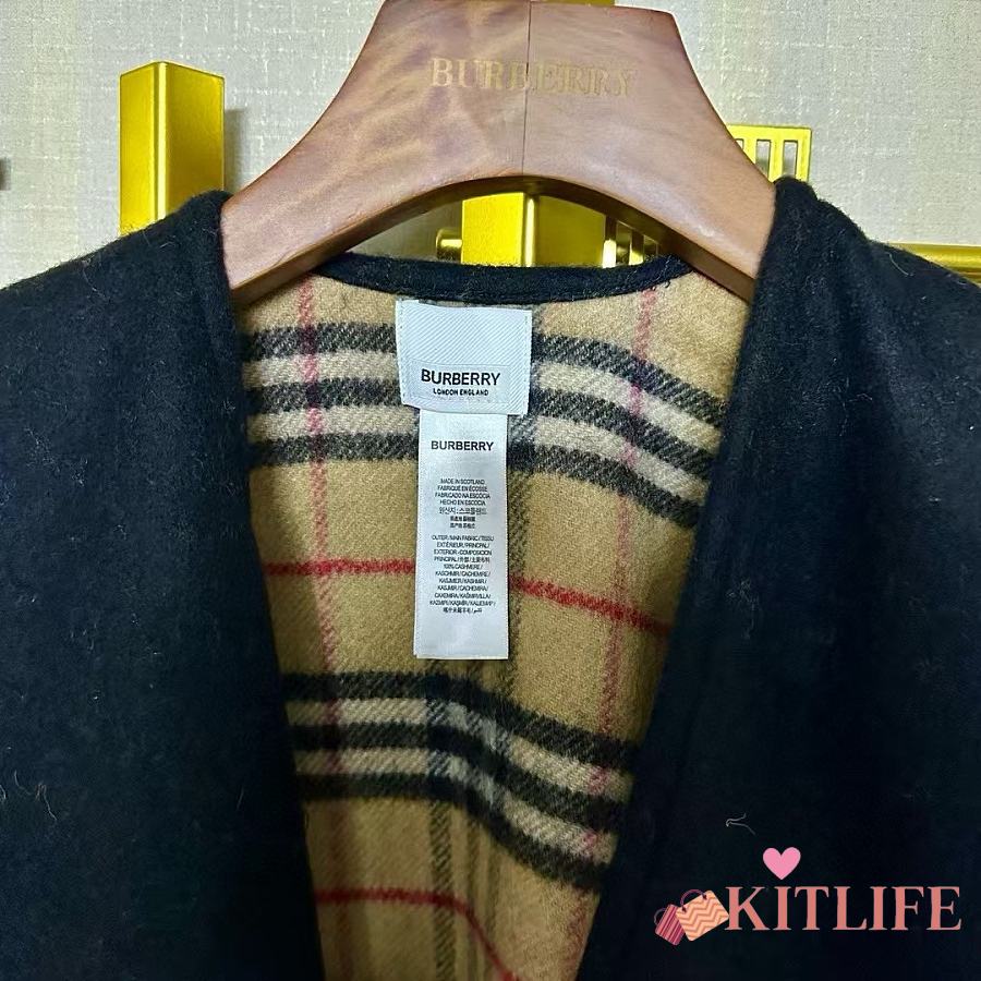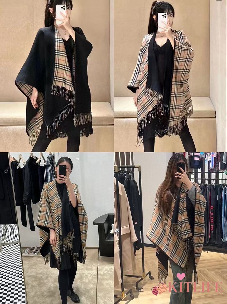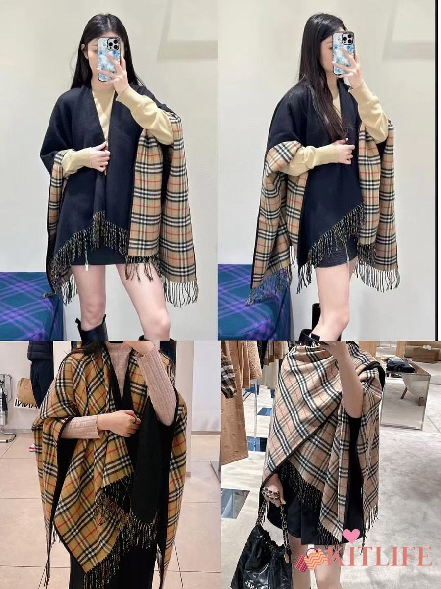 Kitlife Burberry Check Wool Reversible Cape Beige & Black 130x150cm
