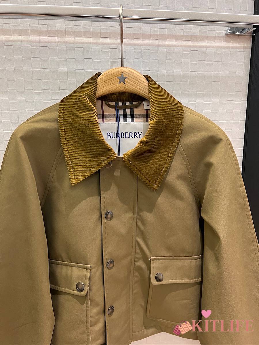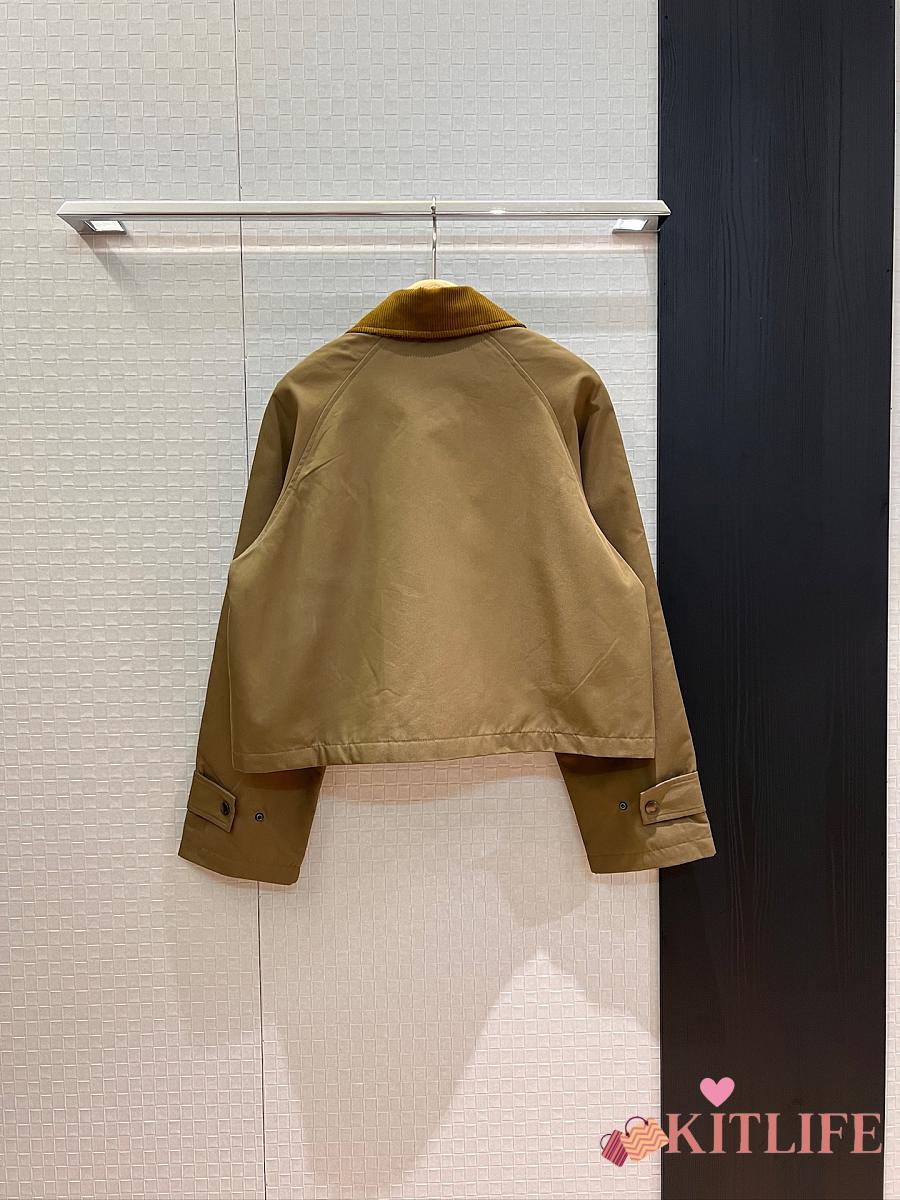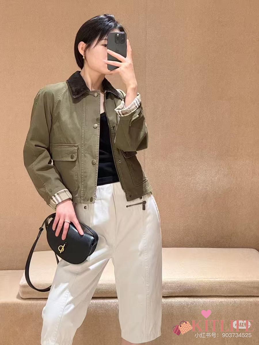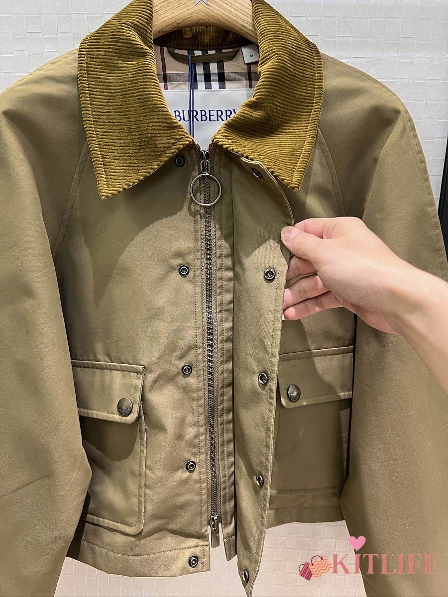 Kitlife Burberry Cropped Olive Brown Coat With Corduroy Collar Neutrals