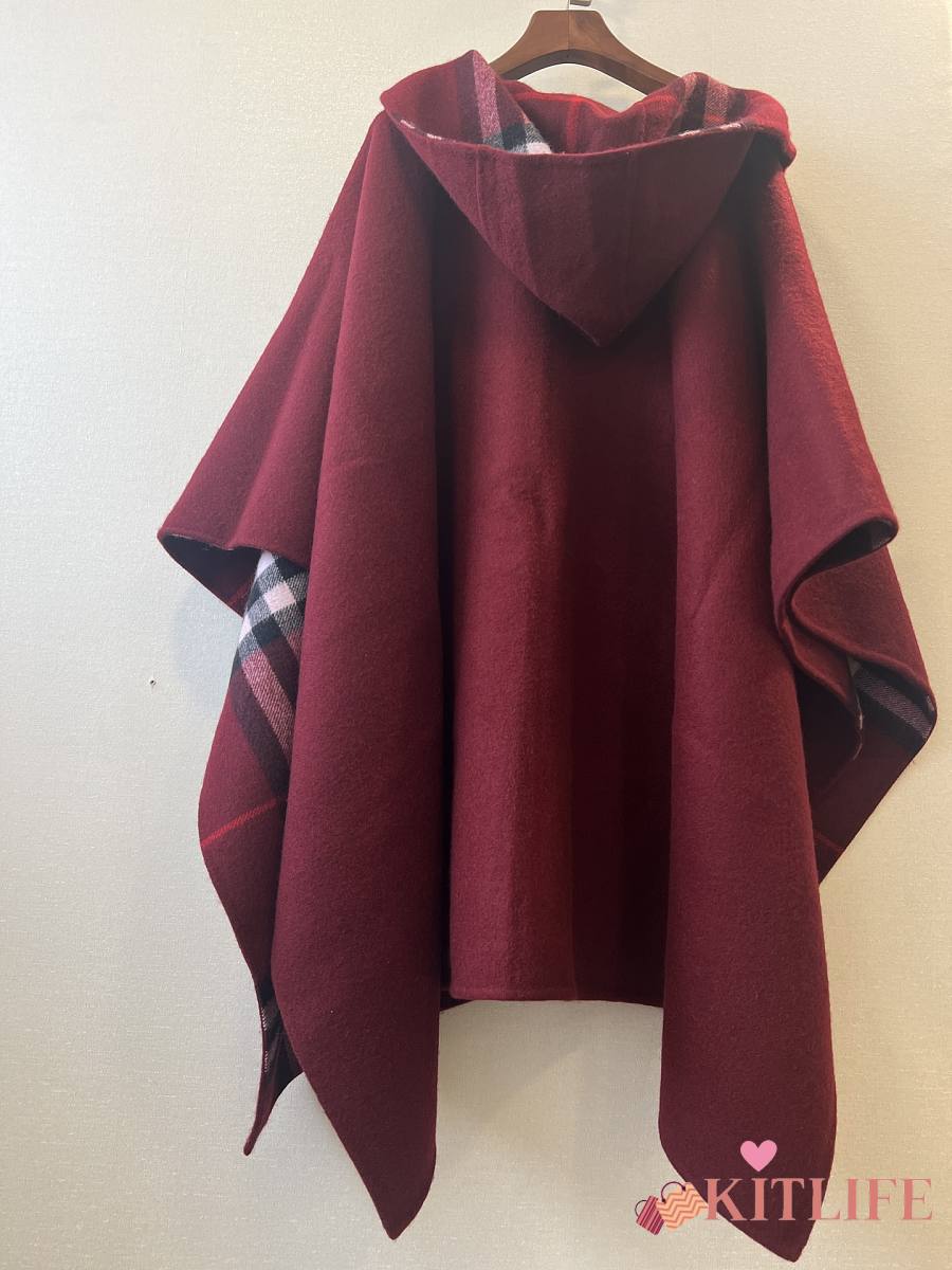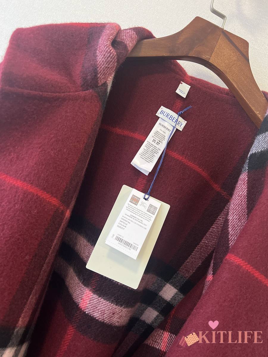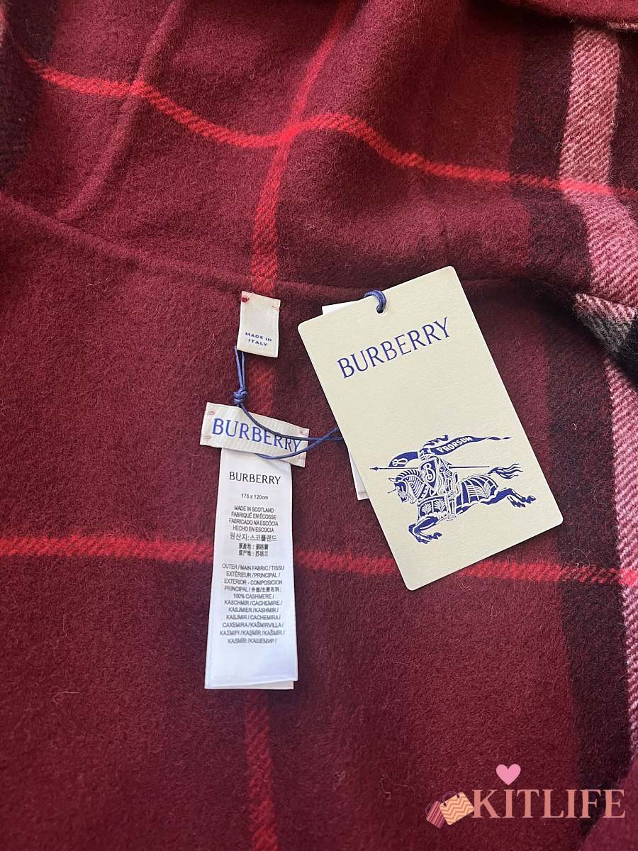 Kitlife Burberry Knight Logo Cashmere Hooded Cape Red 176x120cm