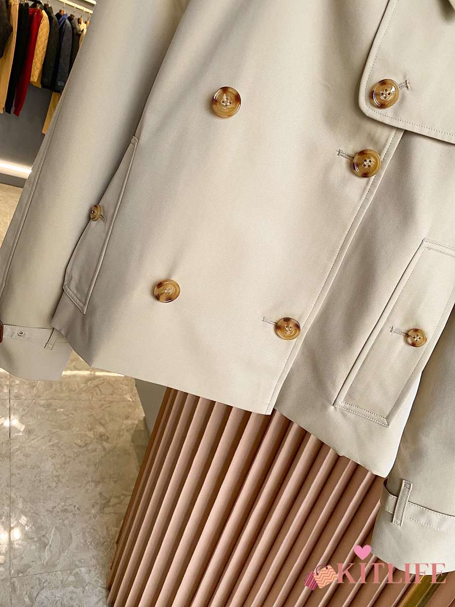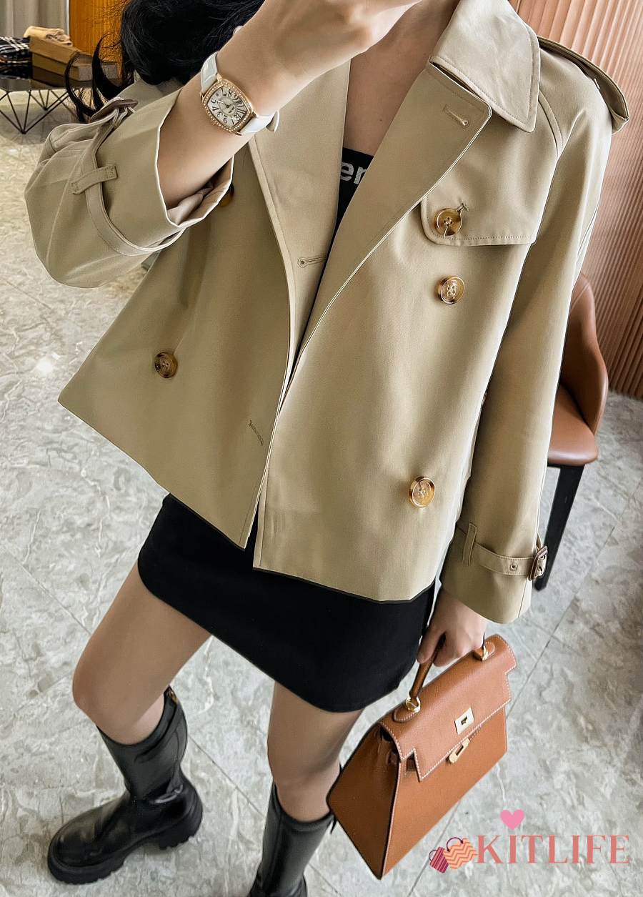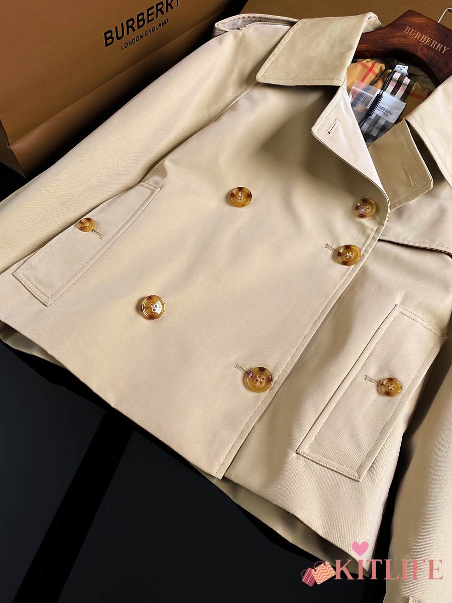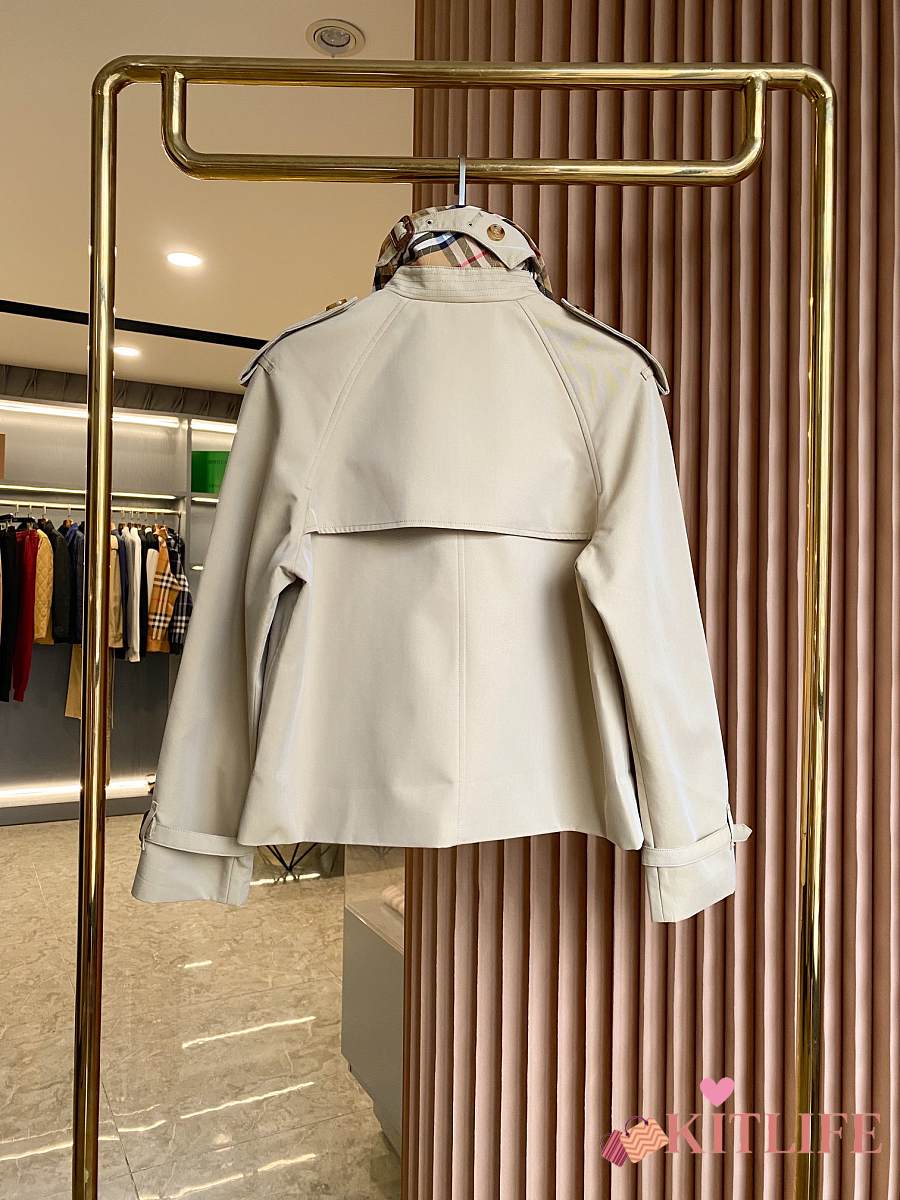 Kitlife Burberry Stand Collar Cotton Gabardine Short Trench Coat Beige