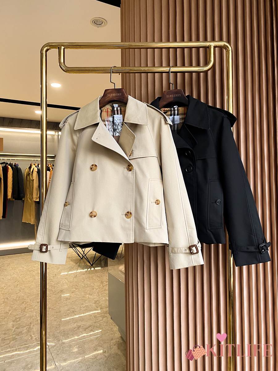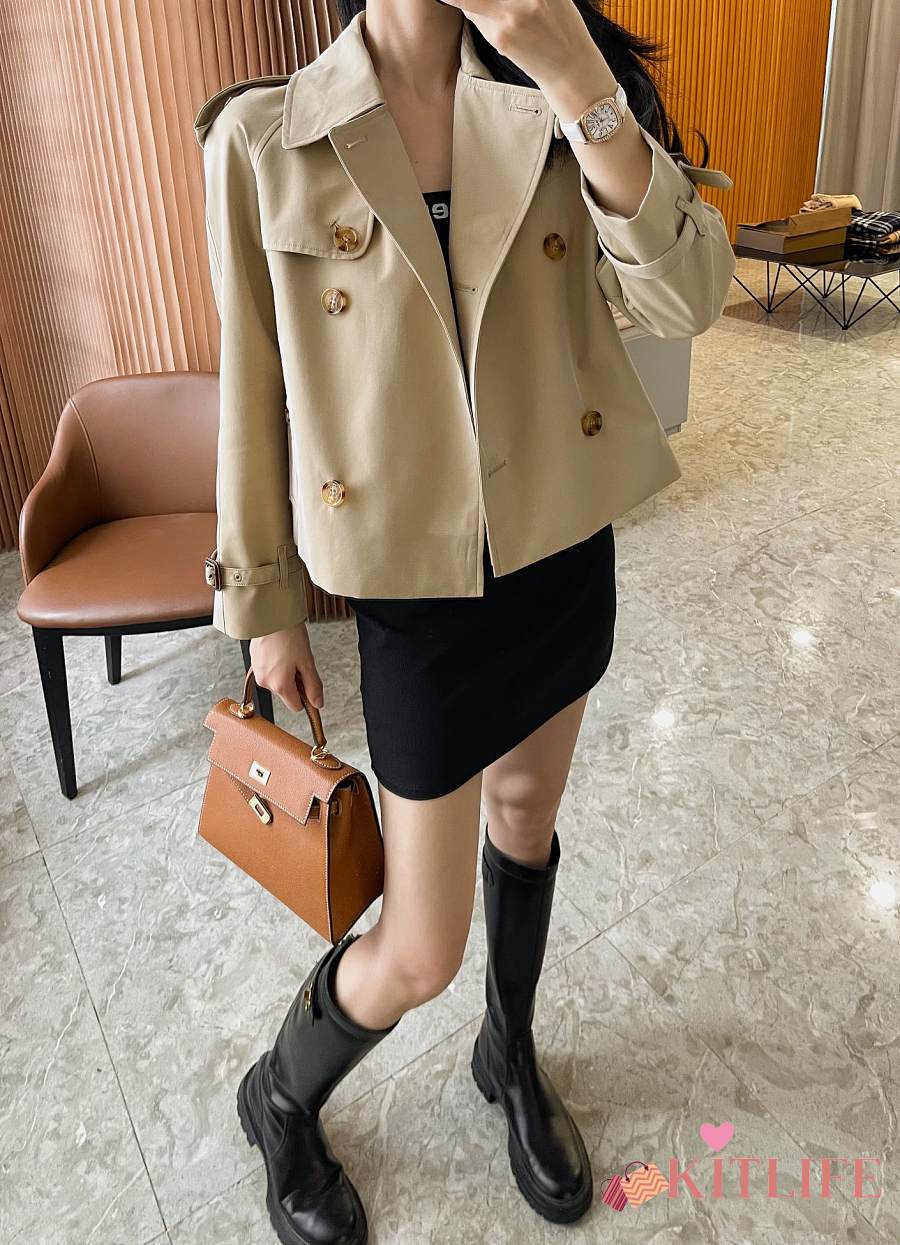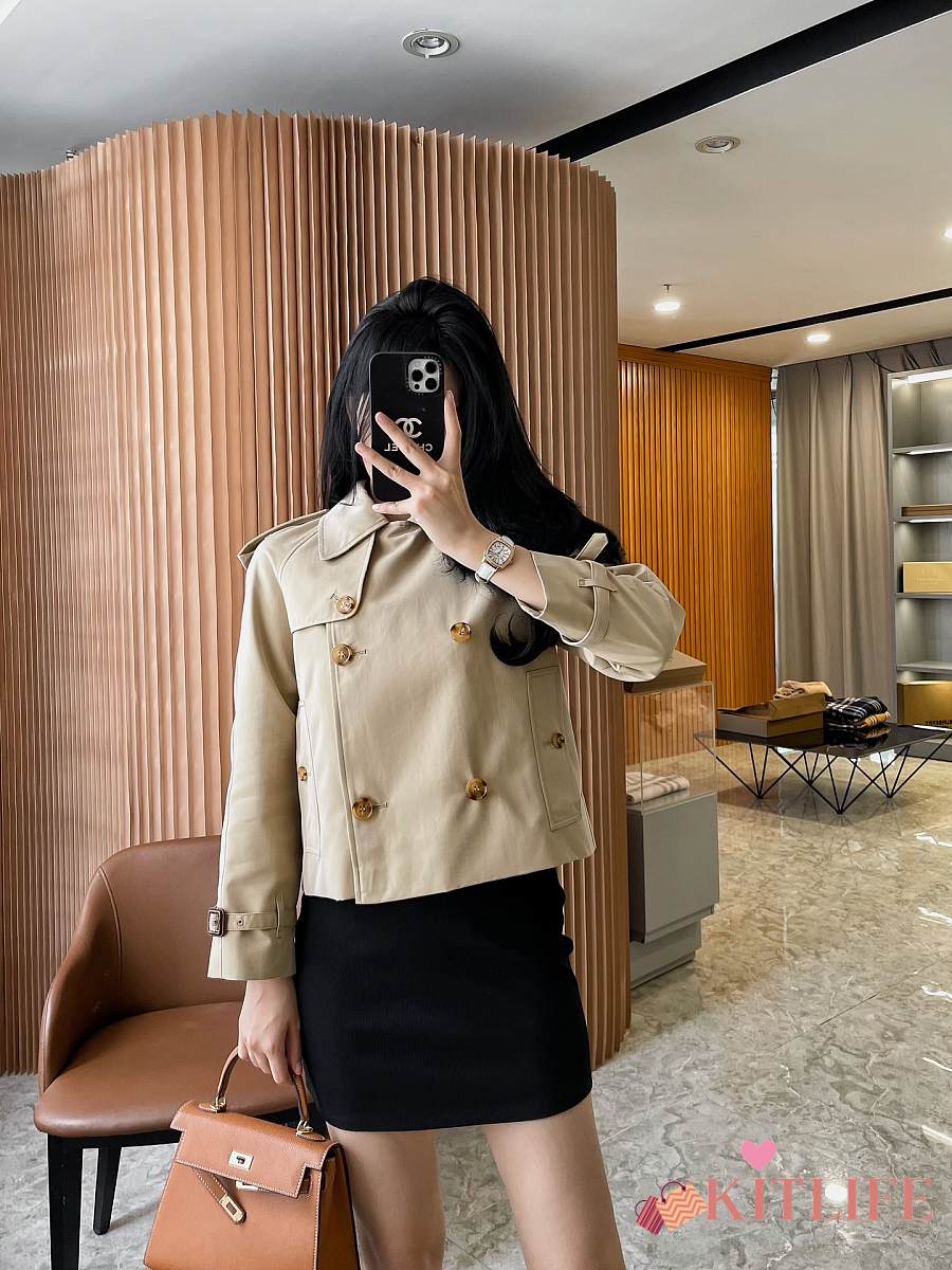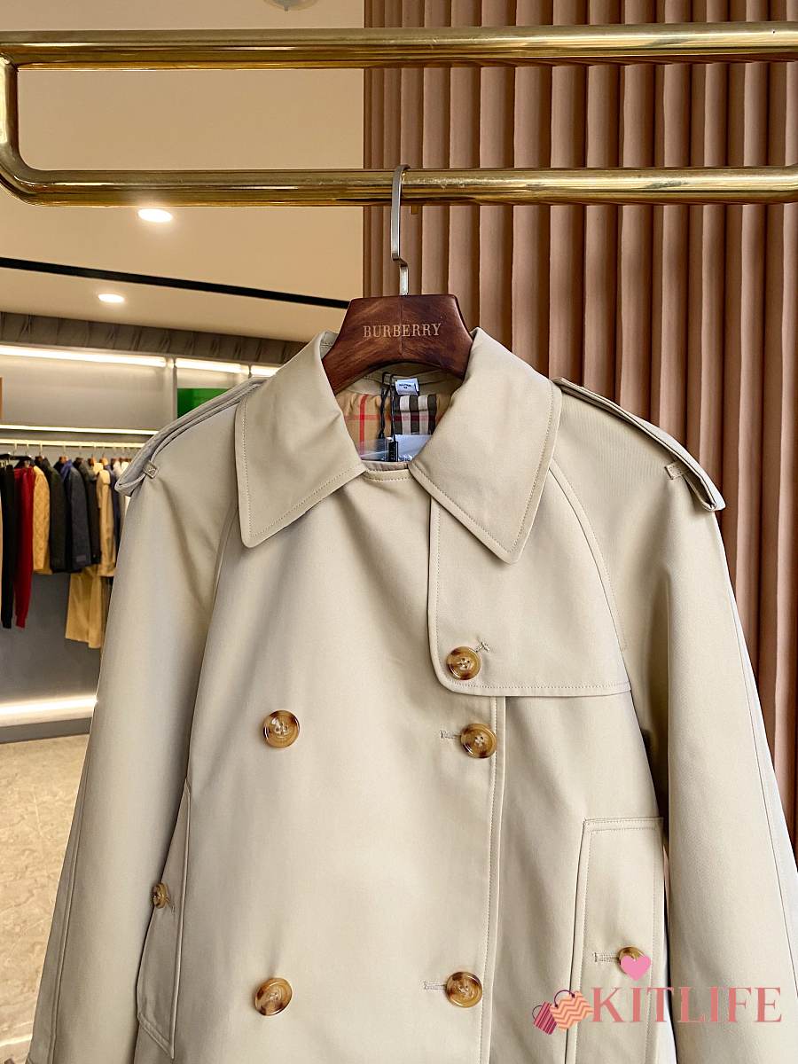Kitlife Burberry Stand Collar Cotton Gabardine Short Trench Coat Beige