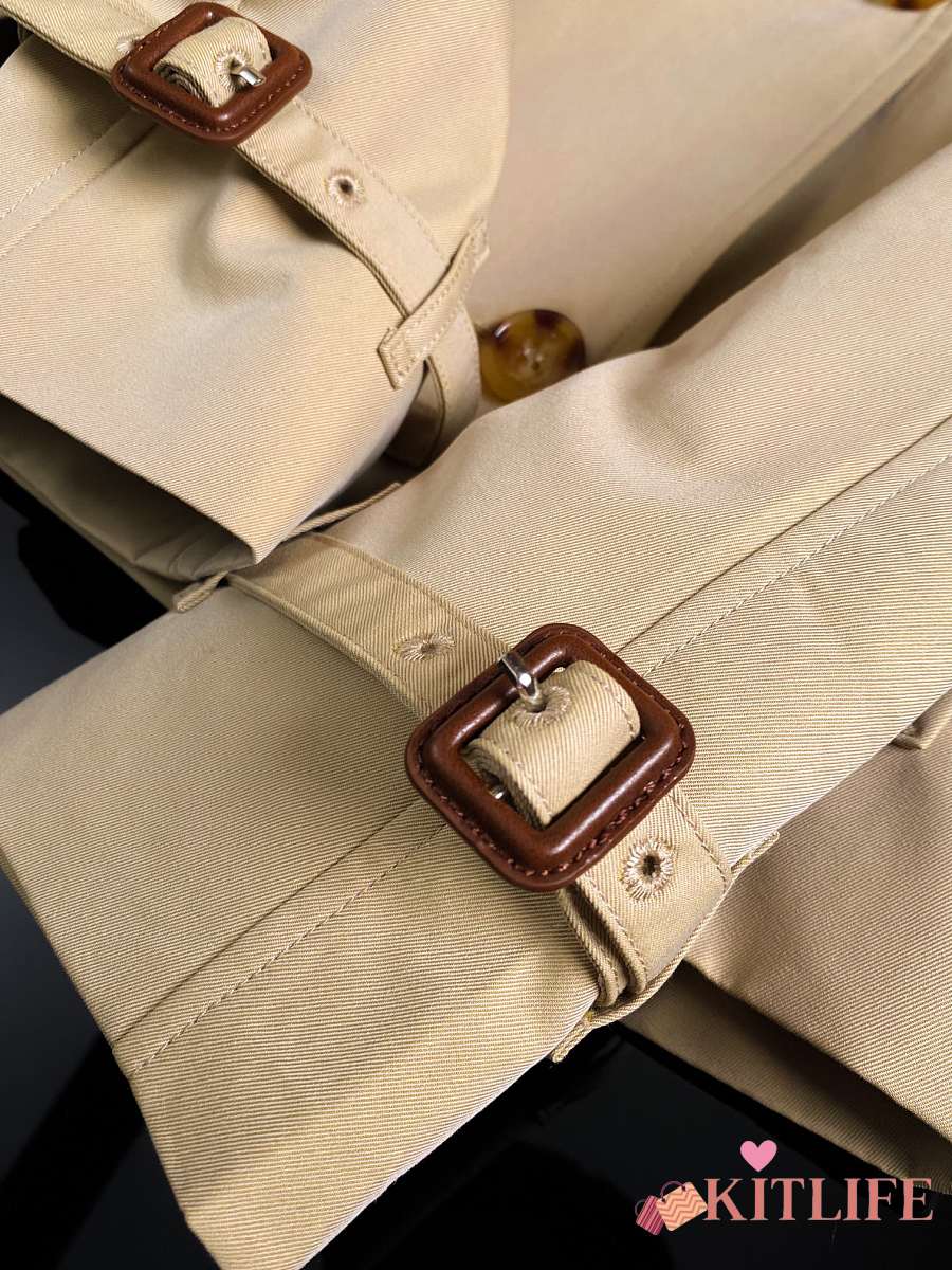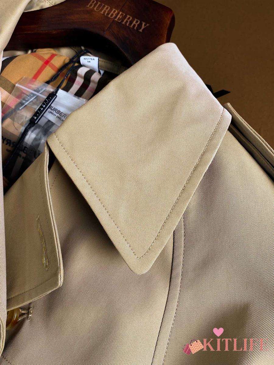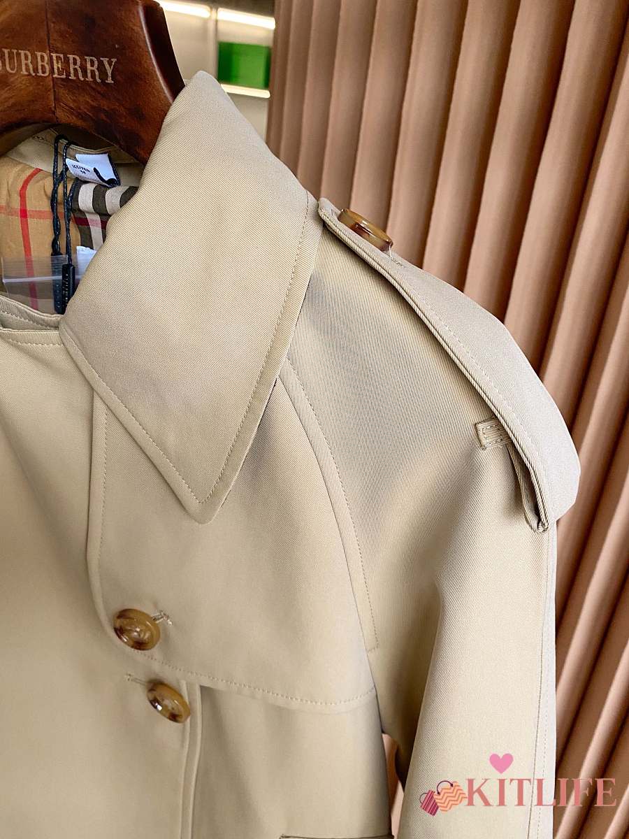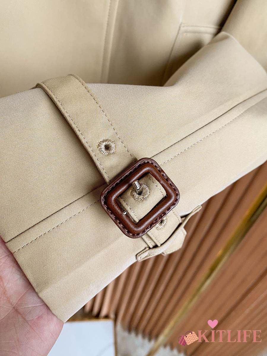 Kitlife Burberry Stand Collar Cotton Gabardine Short Trench Coat Beige