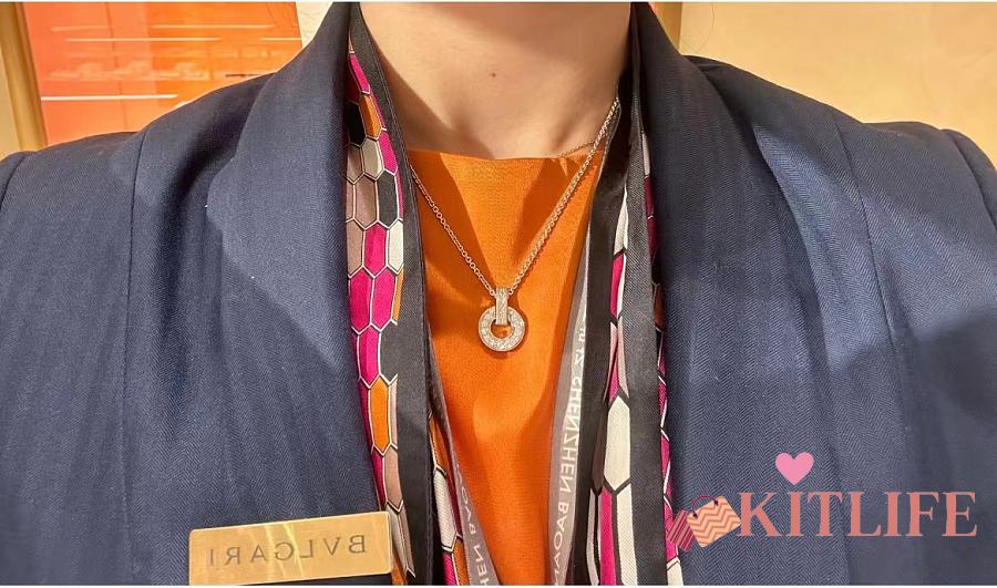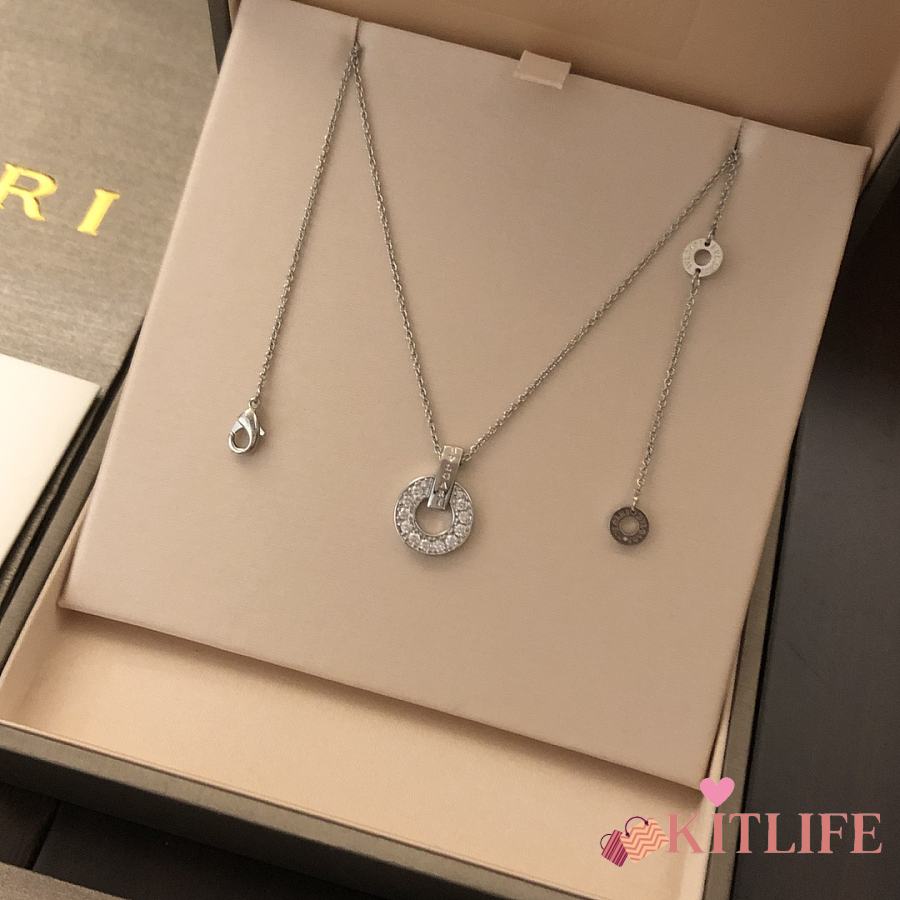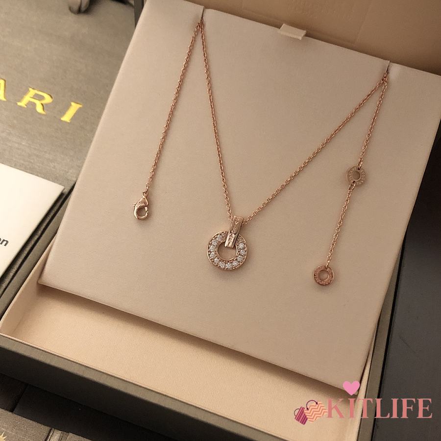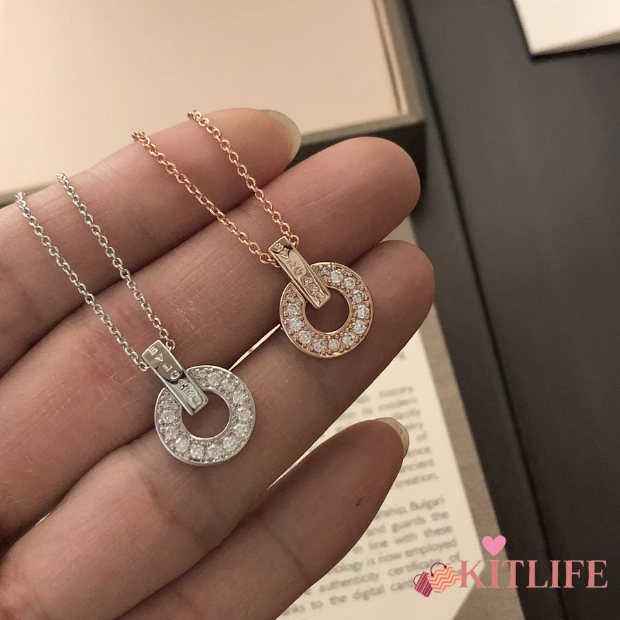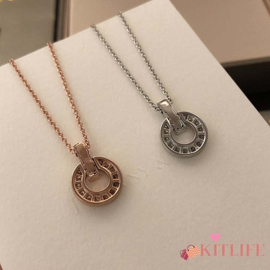 Kitlife Bvlgari Necklack With Diamond Pendant in Silver / Rose Gold