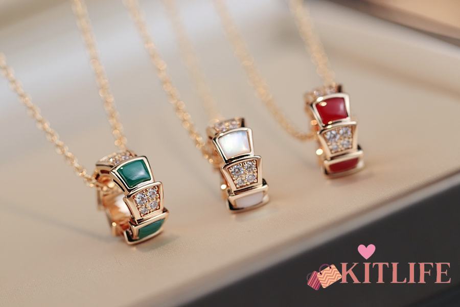 Kitlife Bvlgari Serpenti Necklace With Green / White / Red Pendant