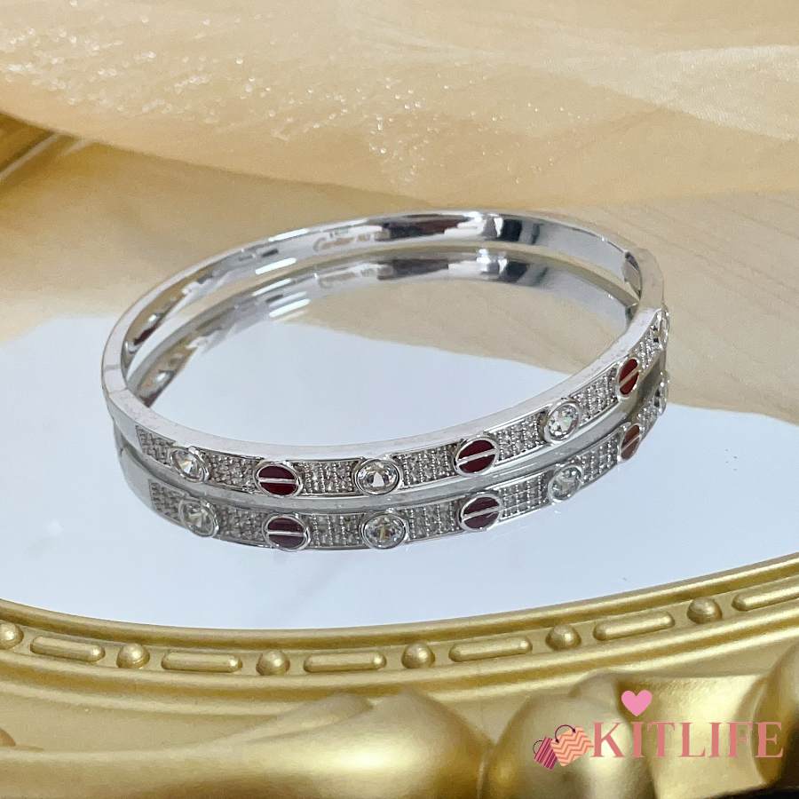Kitlife Cartier Red & Crystal Diamond Bracelet in Silver