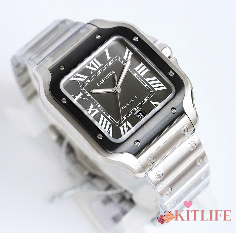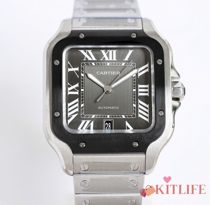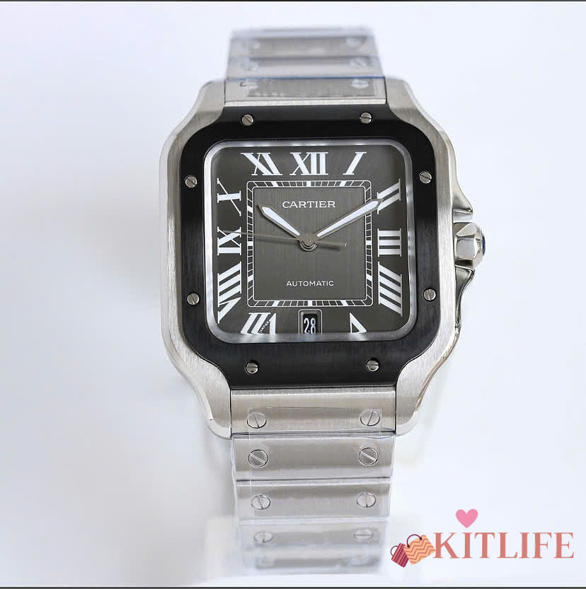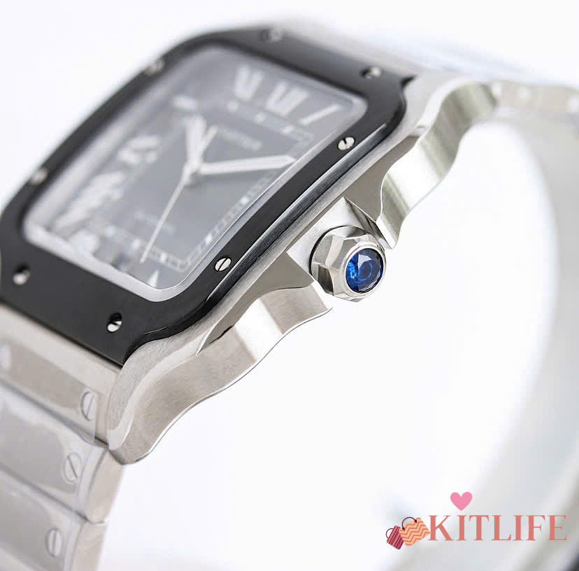 Kitlife Cartier Santos de Watch Silver in Black