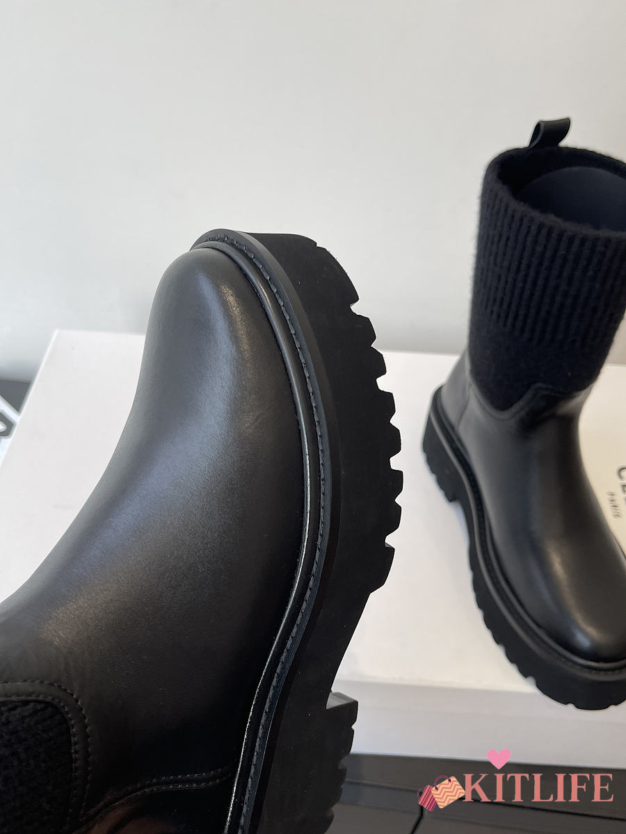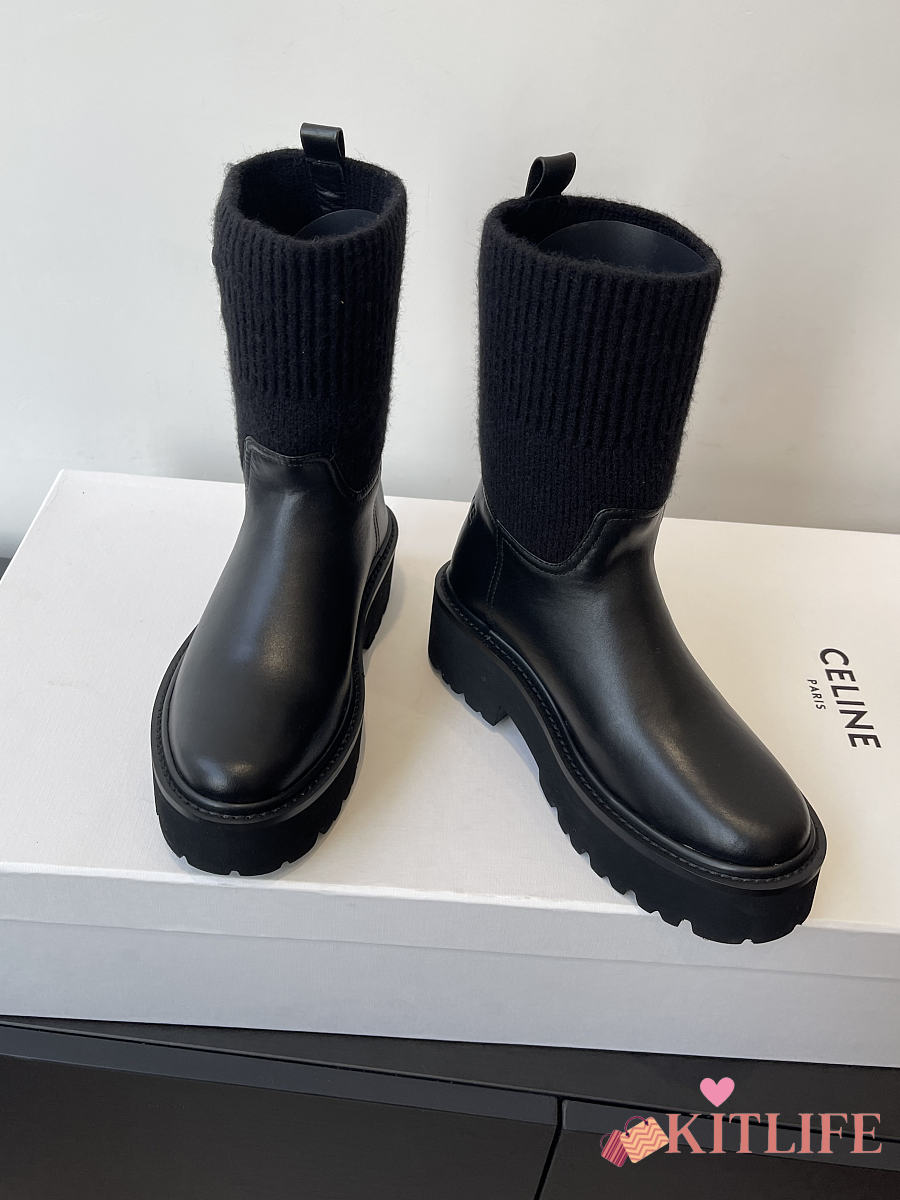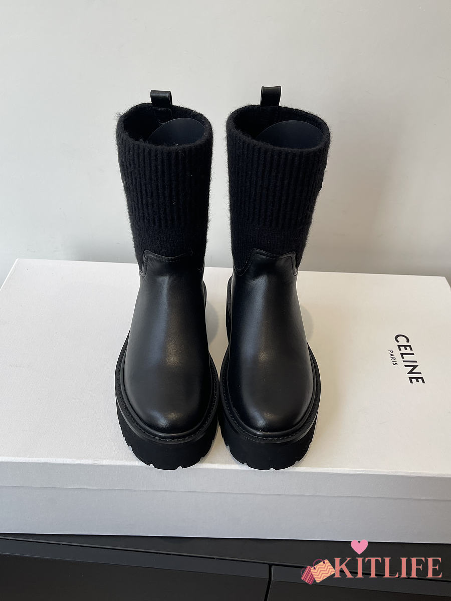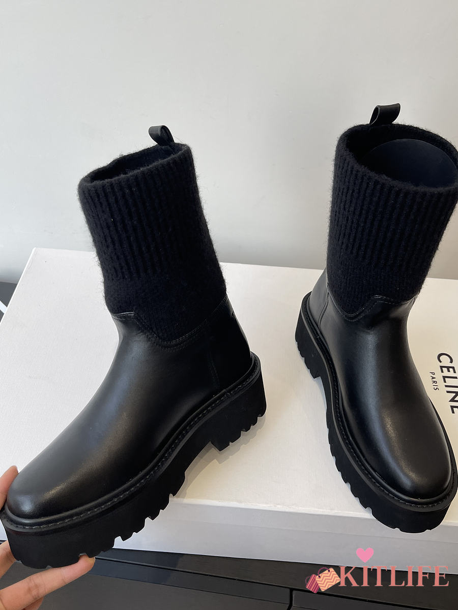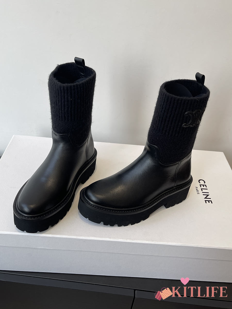 Kitlife Celine Ankle Boots With Low Wool And Black Leather Trim