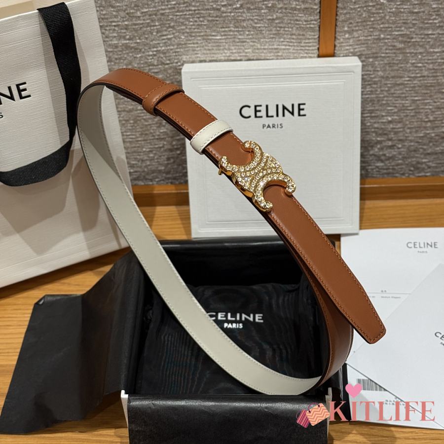 Kitlife Celine Arc de Triomphe Classic Reversible Belt Brown & White 25mm