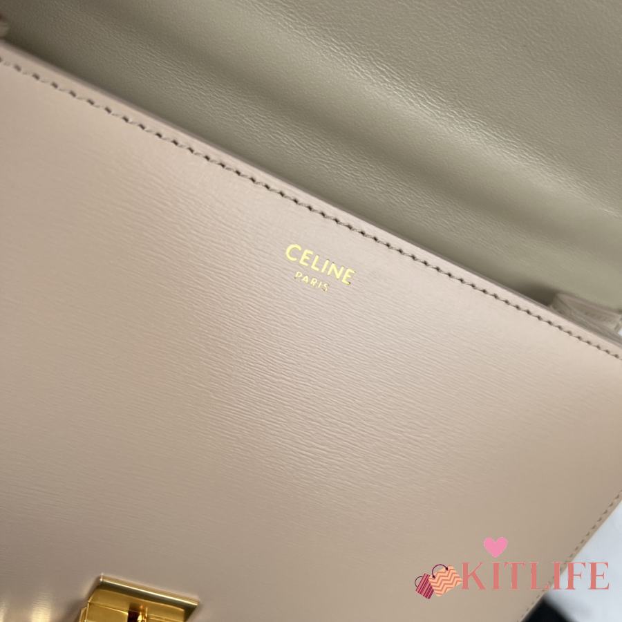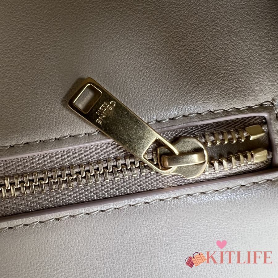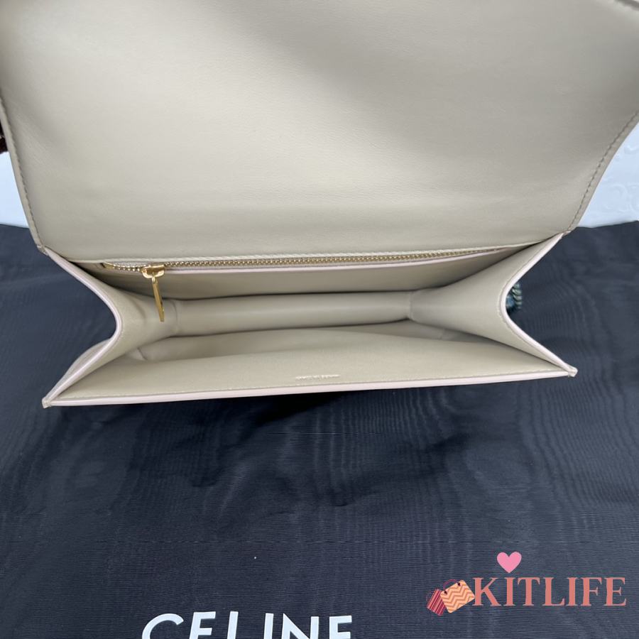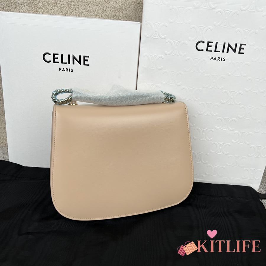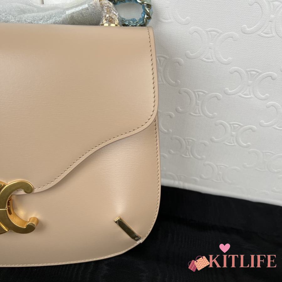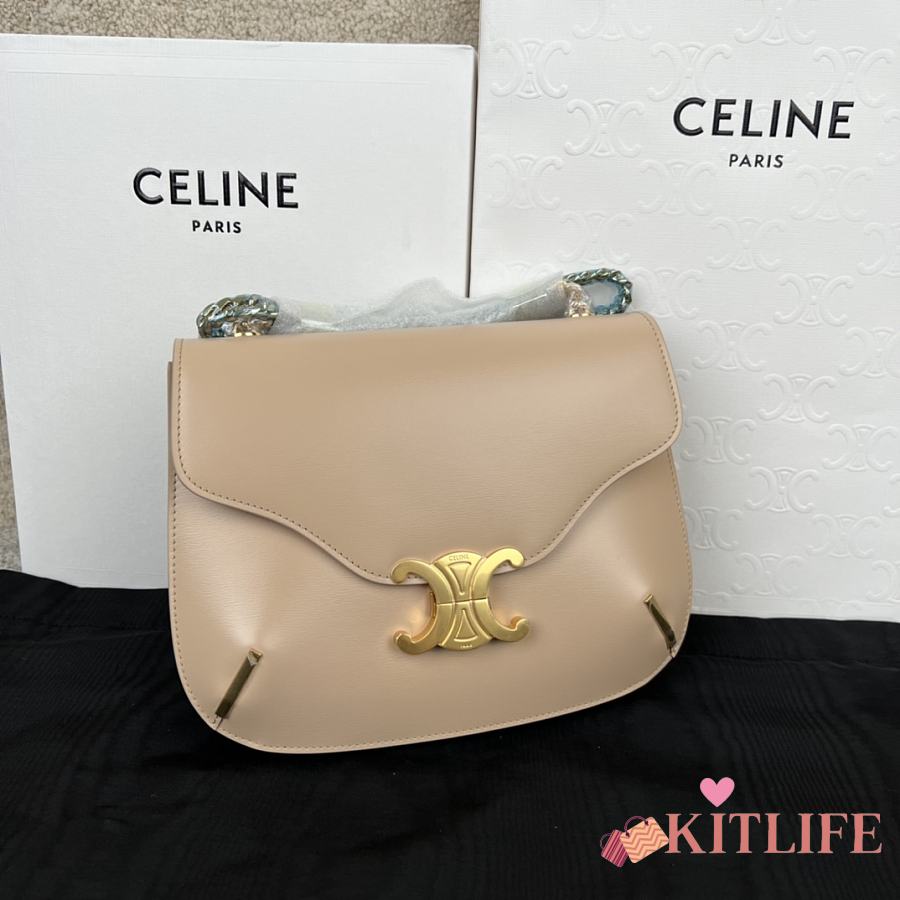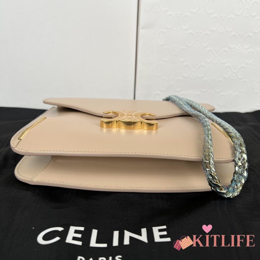 Kitlife Celine Besace Triomphe Beige Calfskin Leather Chain Bag 199273 24.5x17x4cm