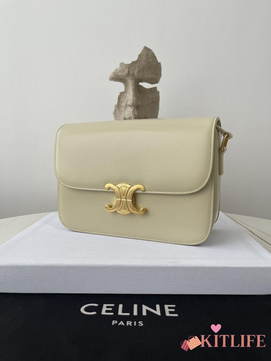 Kitlife Celine Classic Triomphe Bag in Cream Calfskin 187363 22x16.5x7cm
