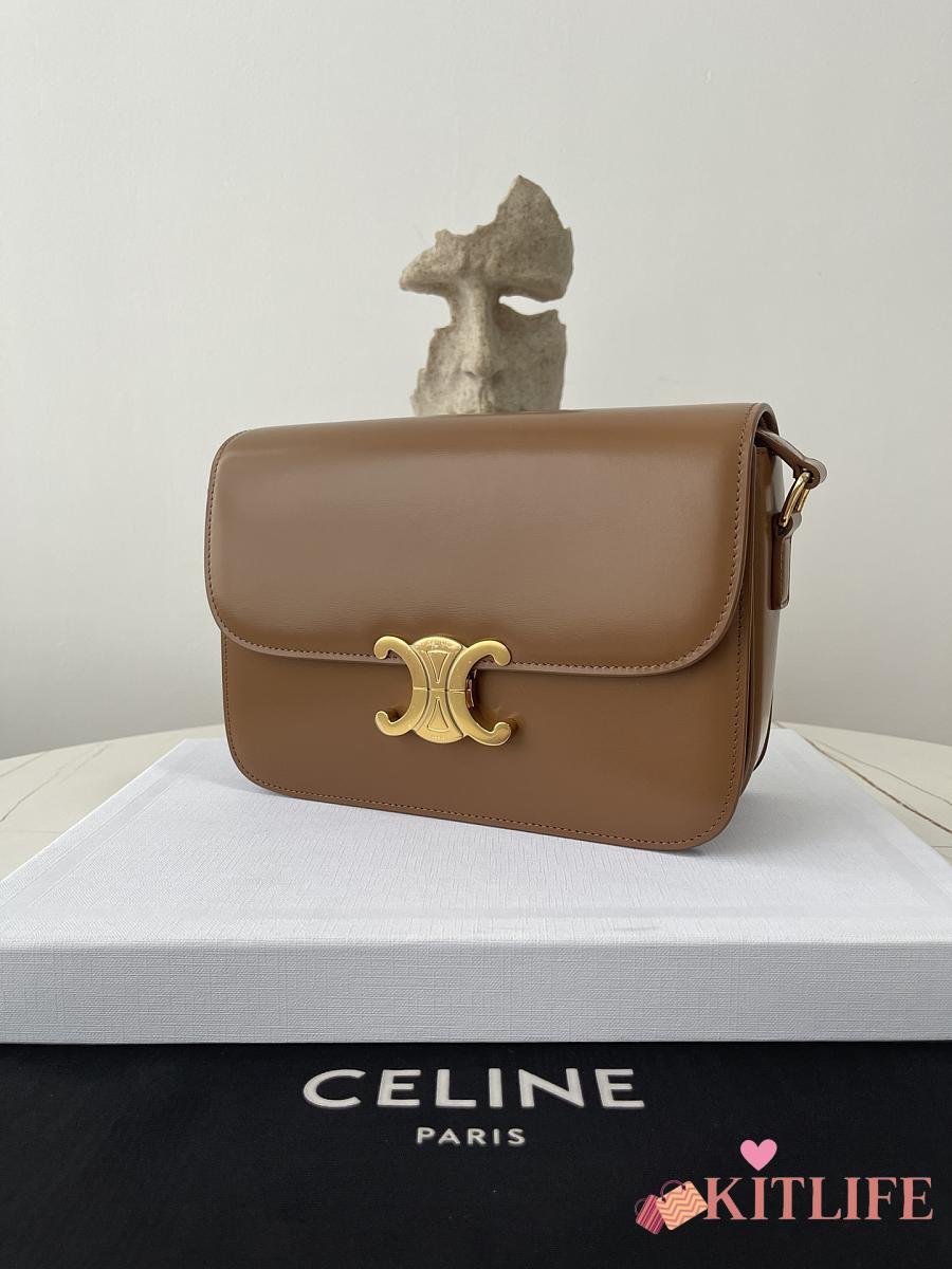 Kitlife Celine Classic Triomphe Bag in Tan Calfskin 187363 22x16.5x7cm