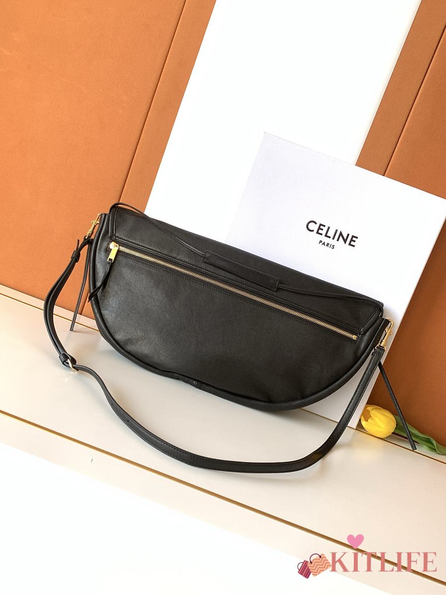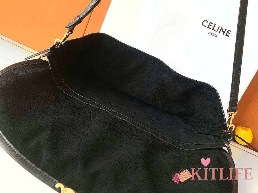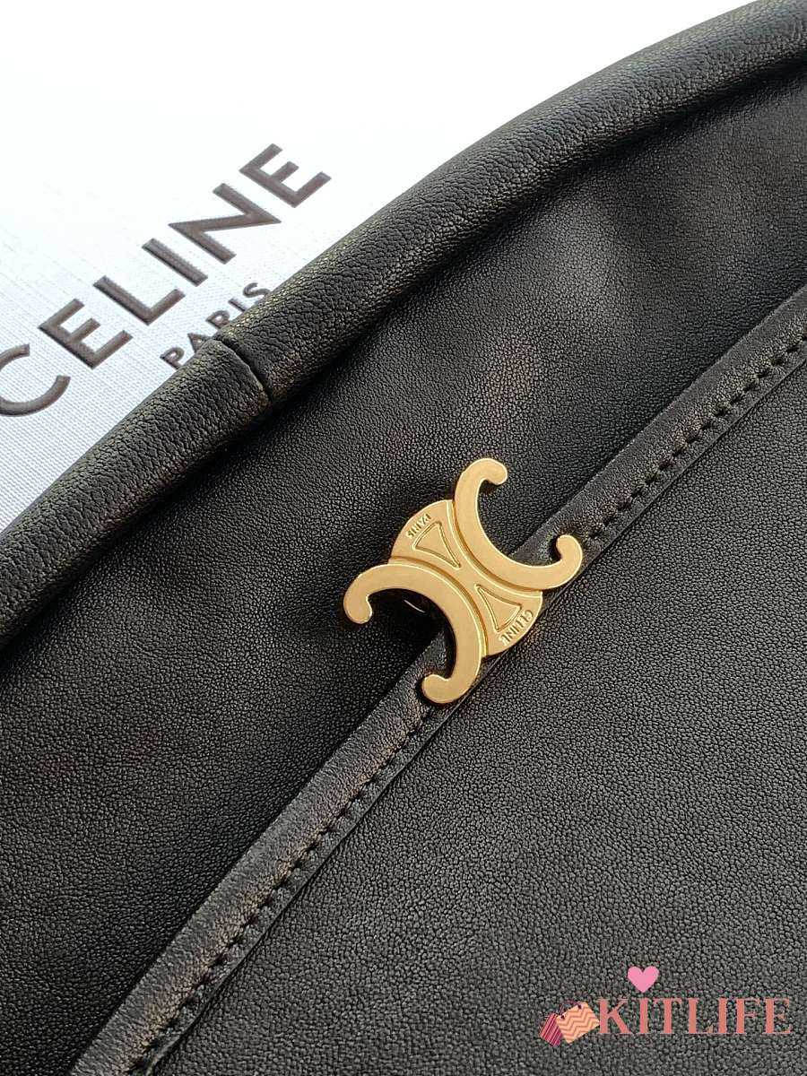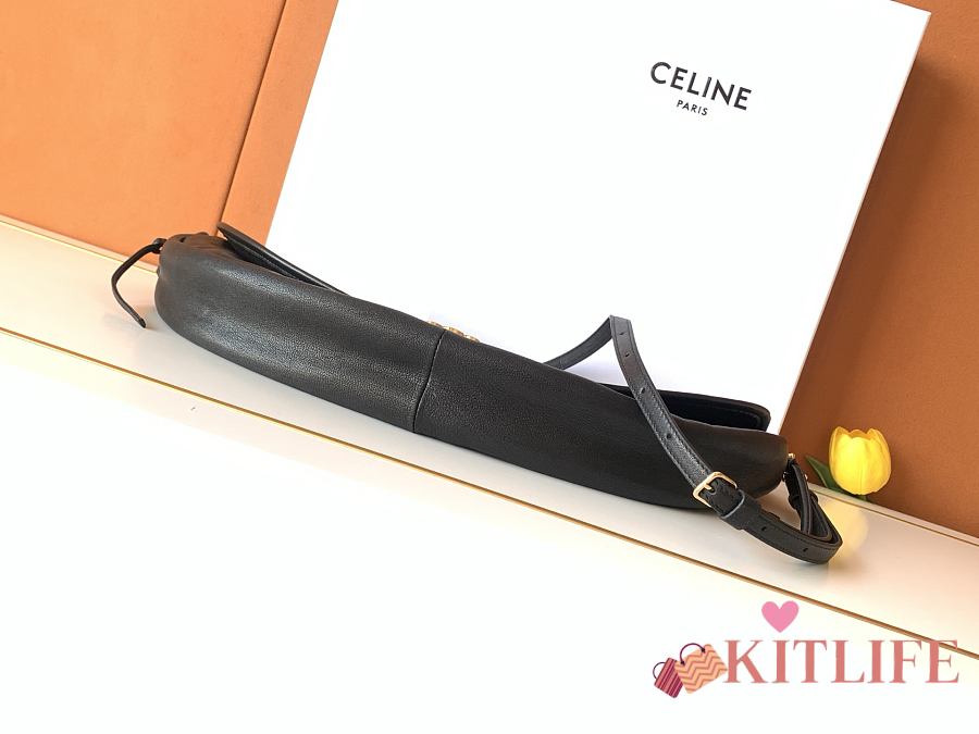 Kitlife Celine Halfmoon Soft Triomphe Bag In Supple Black Shiny Lambskin 46x19x10cm