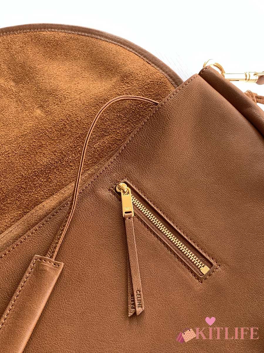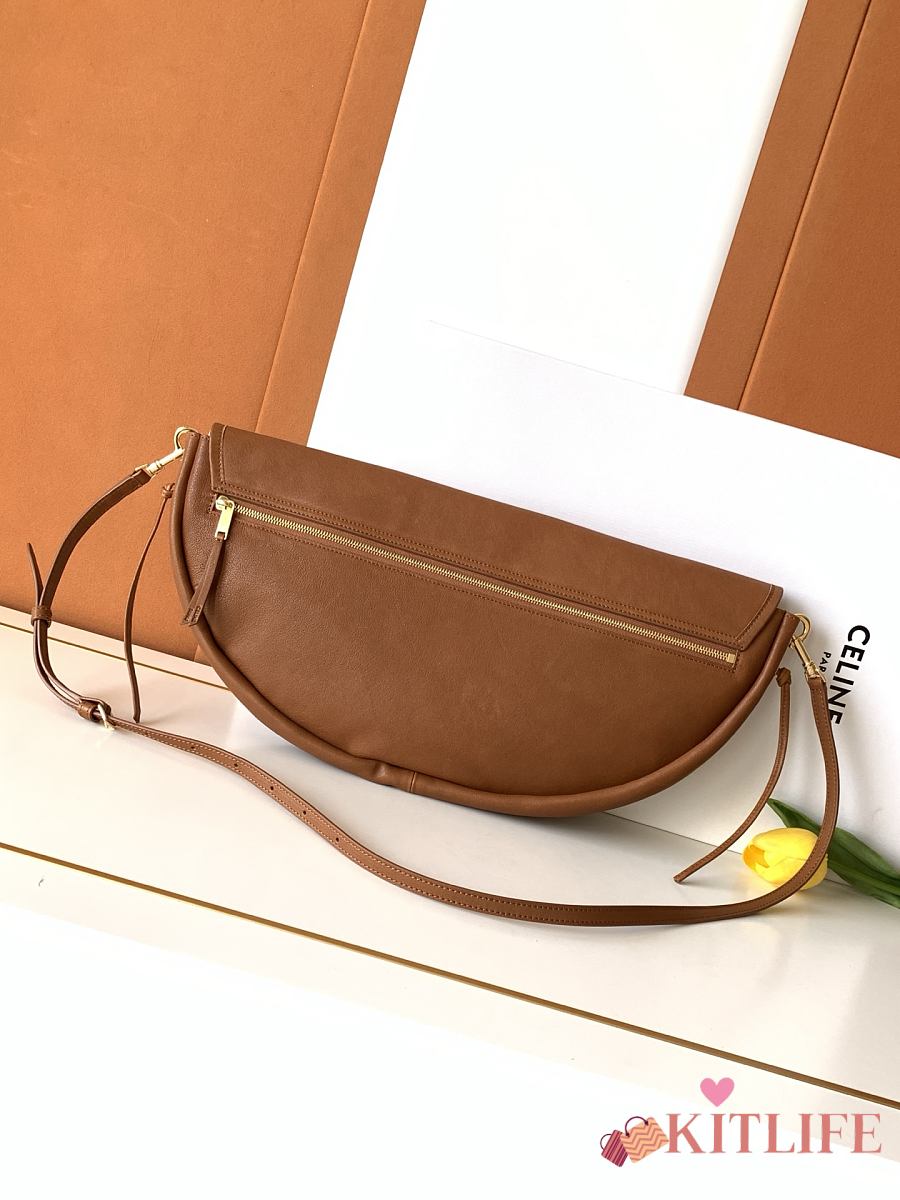 Kitlife Celine Halfmoon Soft Triomphe Bag In Supple Brown Shiny Lambskin 46x19x10cm