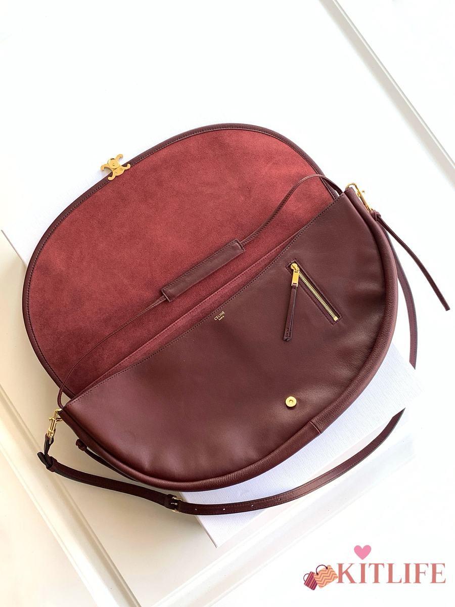 Kitlife Celine Halfmoon Soft Triomphe Bag In Supple Burgundy Shiny Lambskin 46x19x10cm