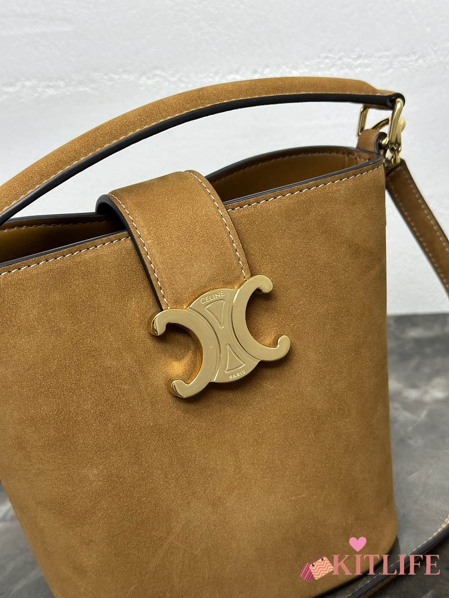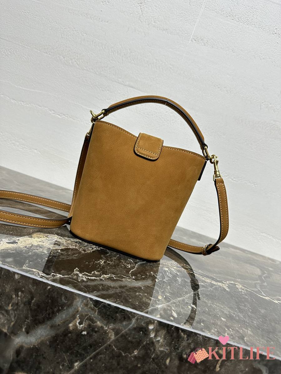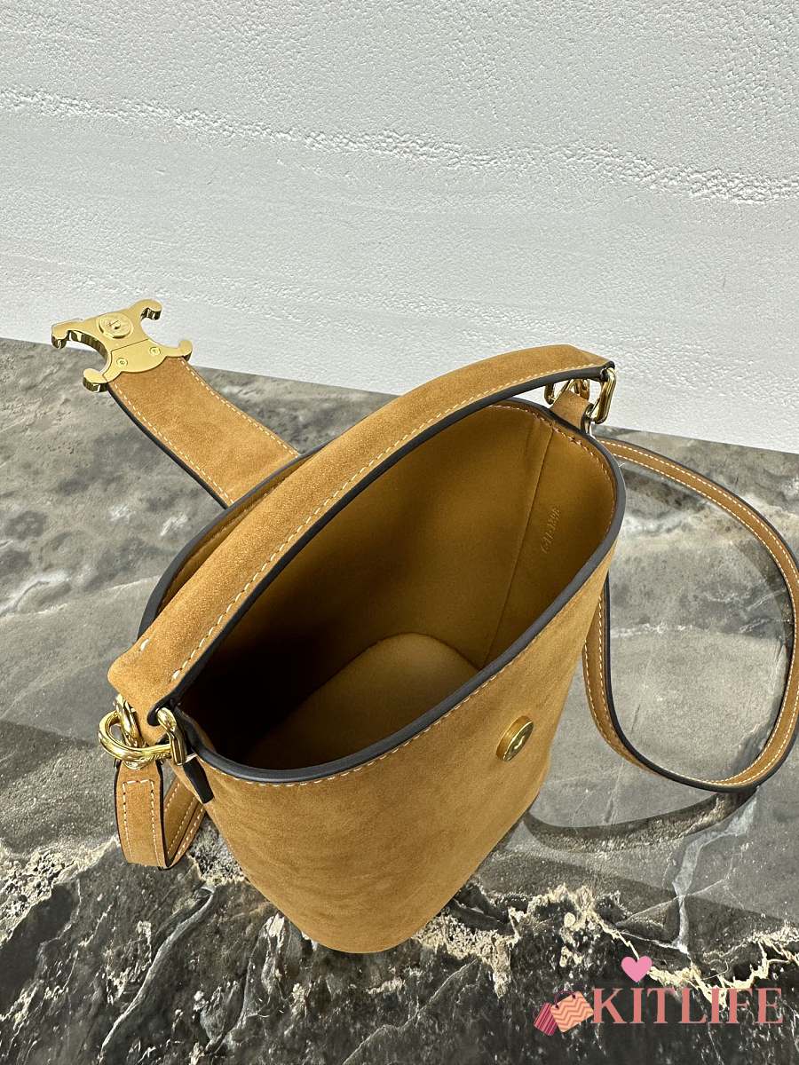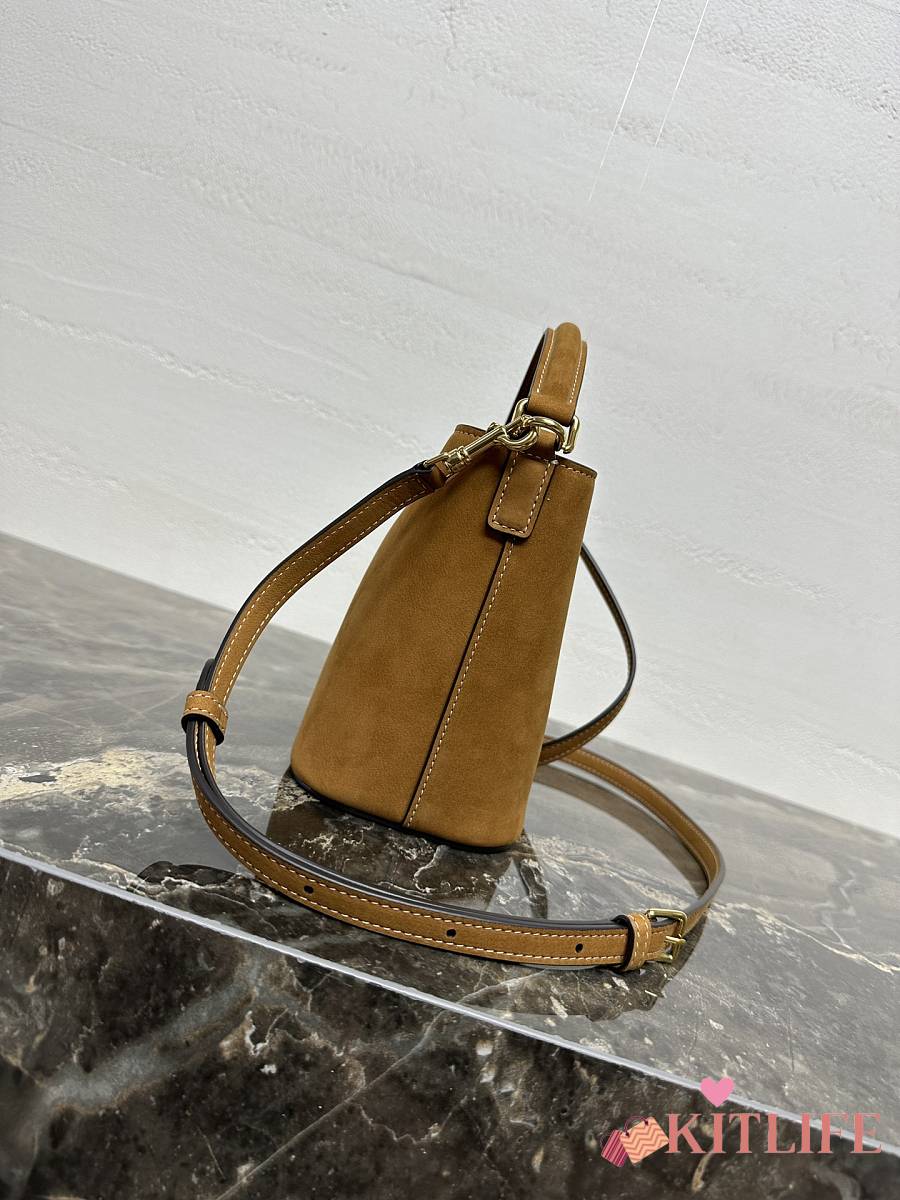 Kitlife Celine Mini Bucket Louise Bag In Camel Suede 10N473 13.5x16x10cm