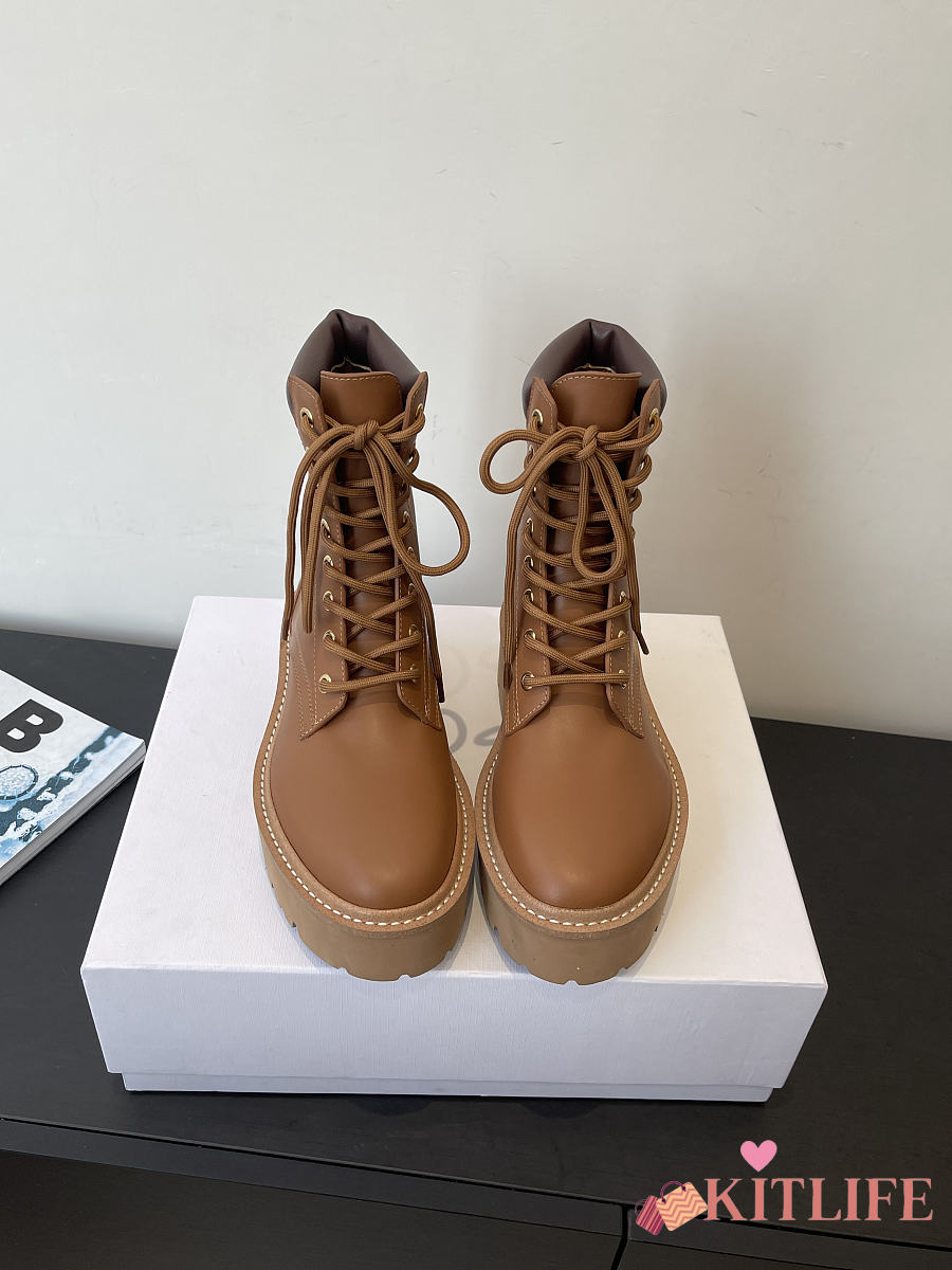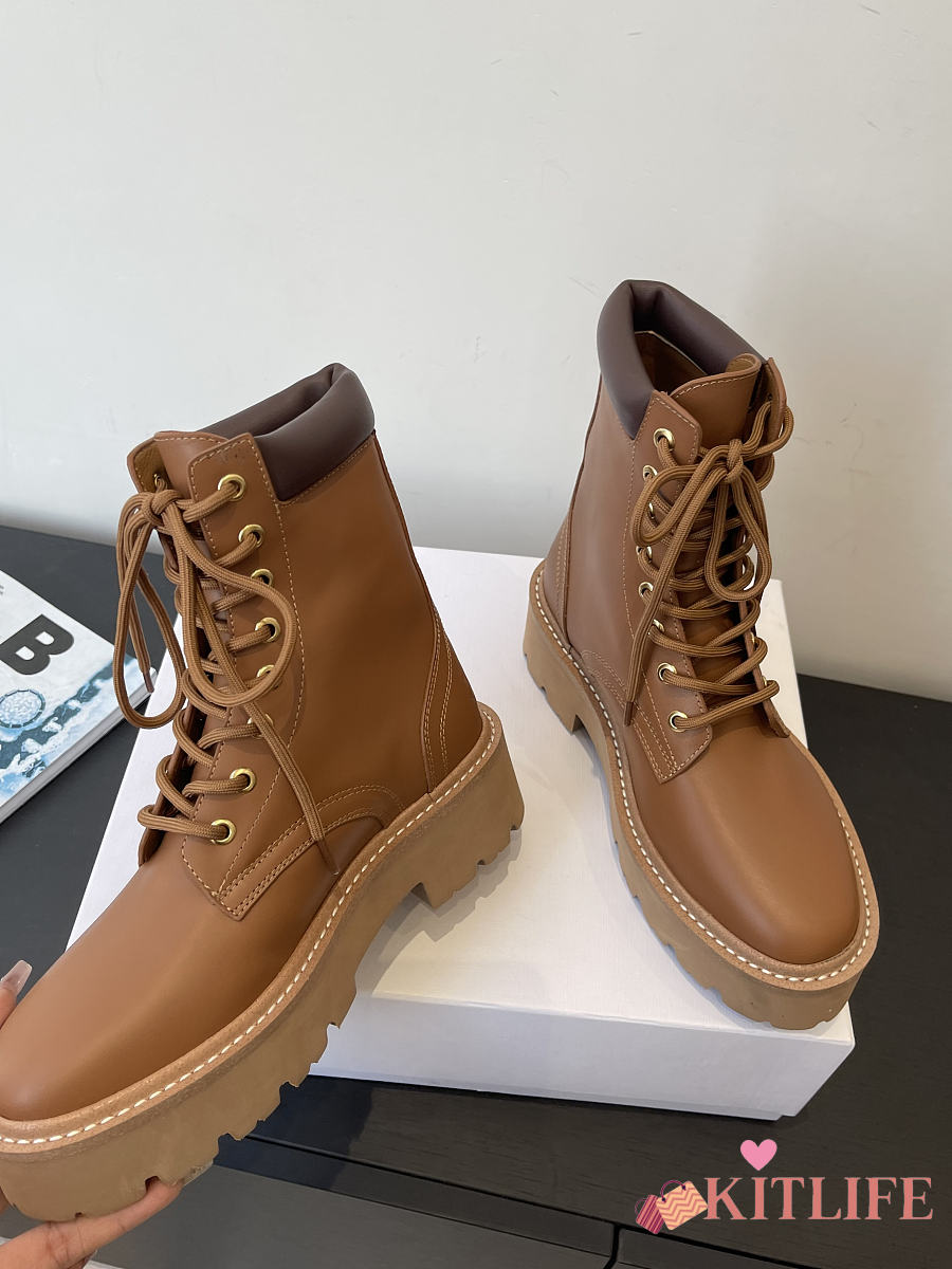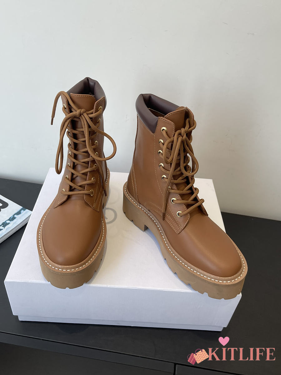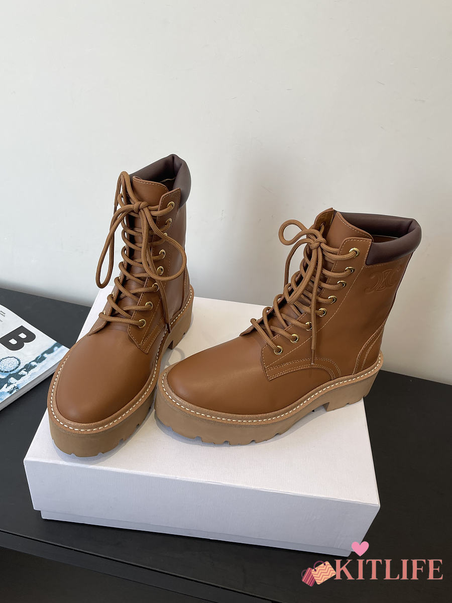 Kitlife Celine Retro Platform Ankle Boots Brown