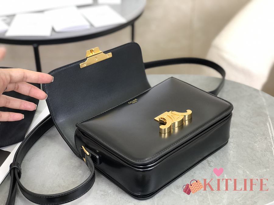 Kitlife Celine Teen Triomphe Black Calfskin Bag 188423 18.5x14x6cm