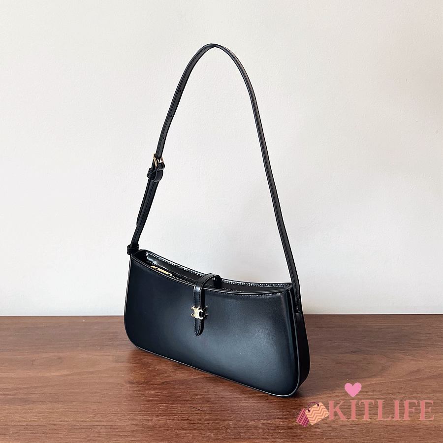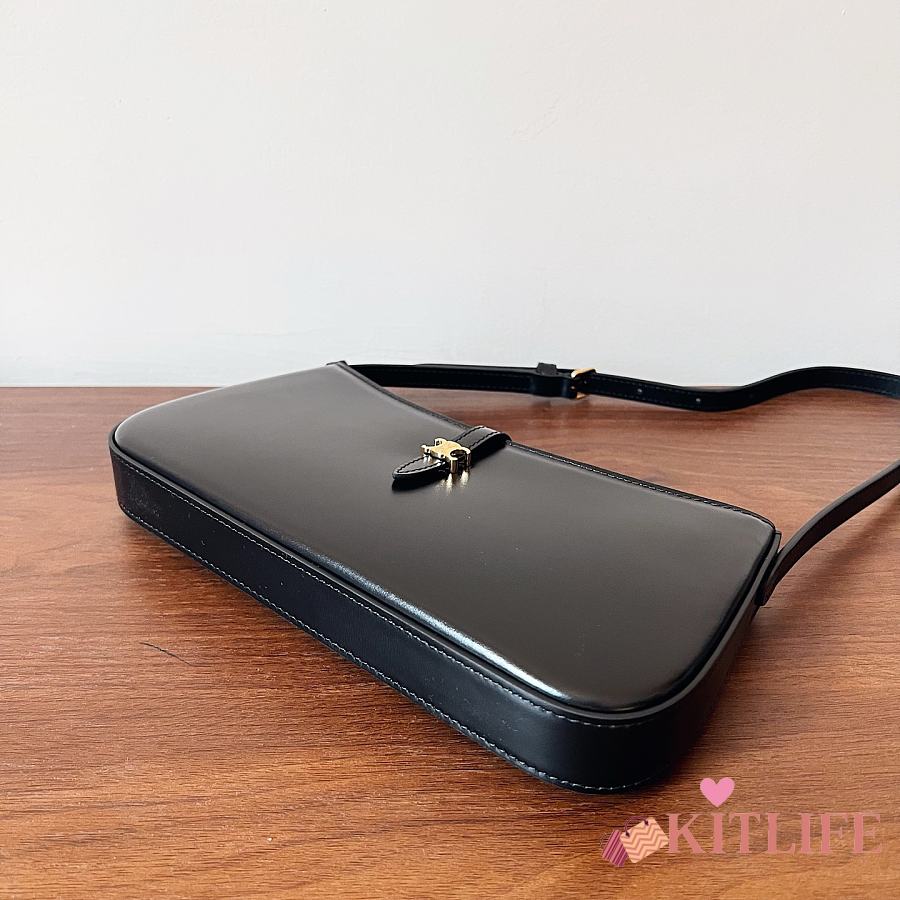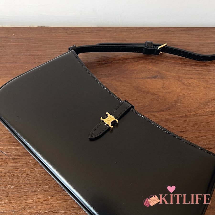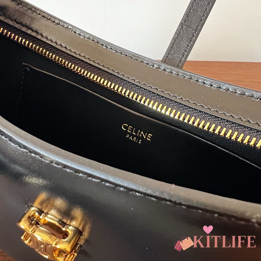 Kitlife Celine Tina Shoulder Bag In Black Shiny Calfskin 123053 25x11.5x2.5cm